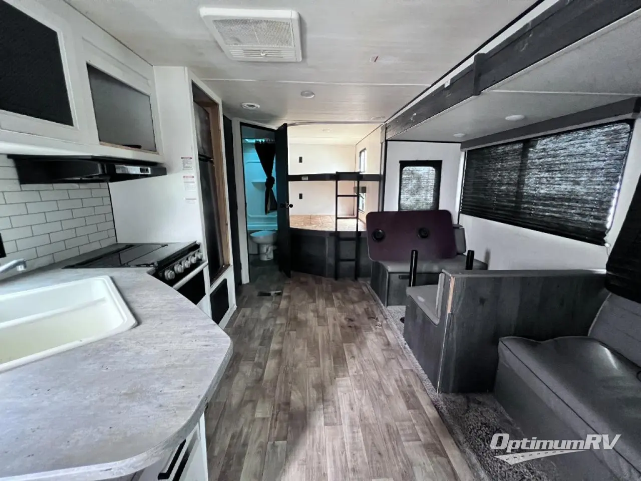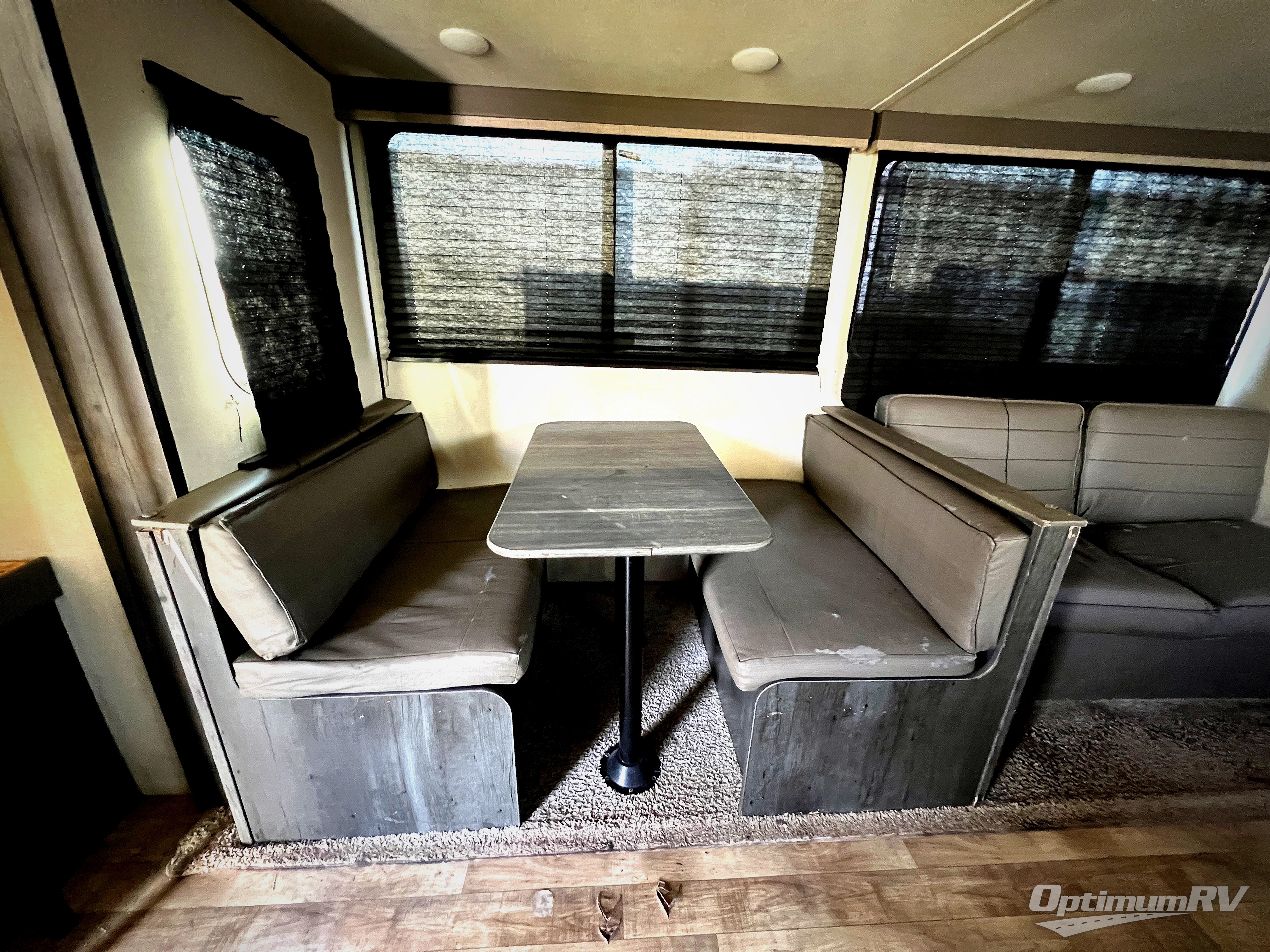 Get away with ease in this Hideout travel trailer! You will have your own private place to sleep in each night with the private bedroom up front. This bedroom has a queen-size bed, closets and nightstands on either side of the bed, overhead cabinets, and a laundry chute. Just outside the bedroom is where the entertainment center is located. The entertainment center has been prepped for a fireplace, and you can add an optional 40" HDTV too. The large slide holds the booth dinette and jackknife sofa, and the central vacuum will help you clean up any messes that are made throughout the trip.