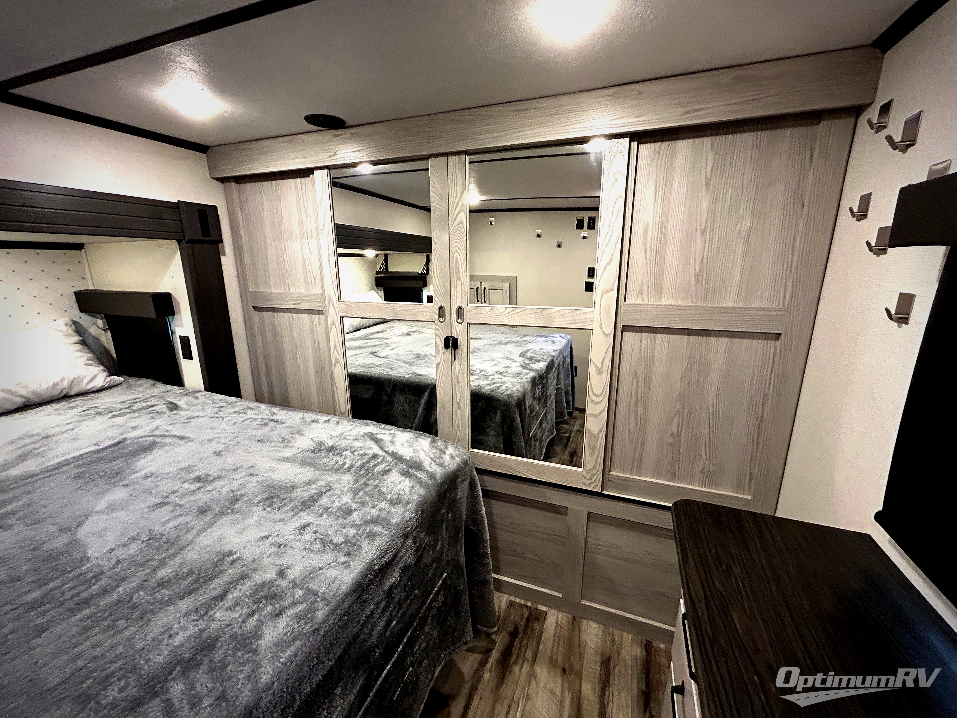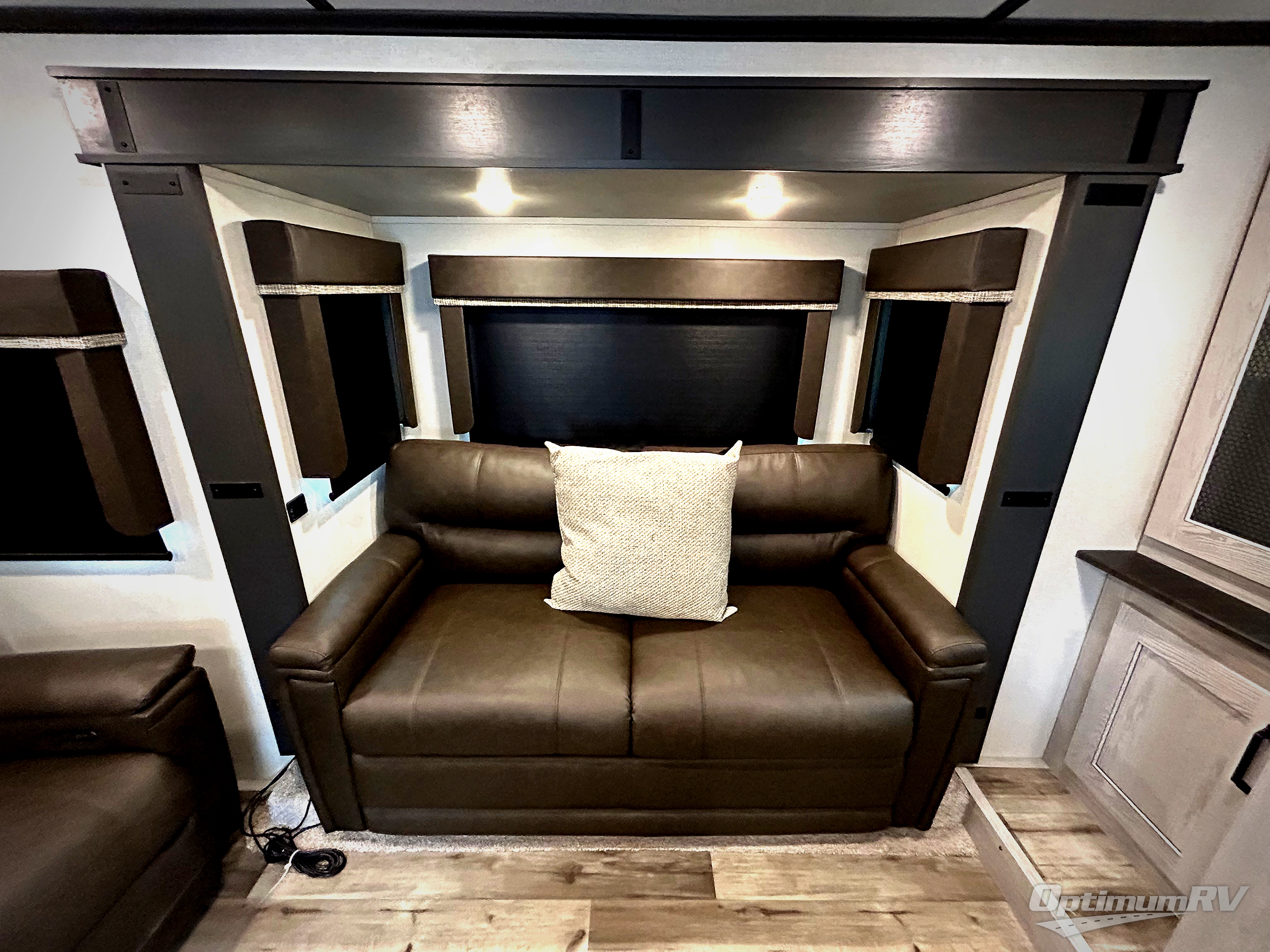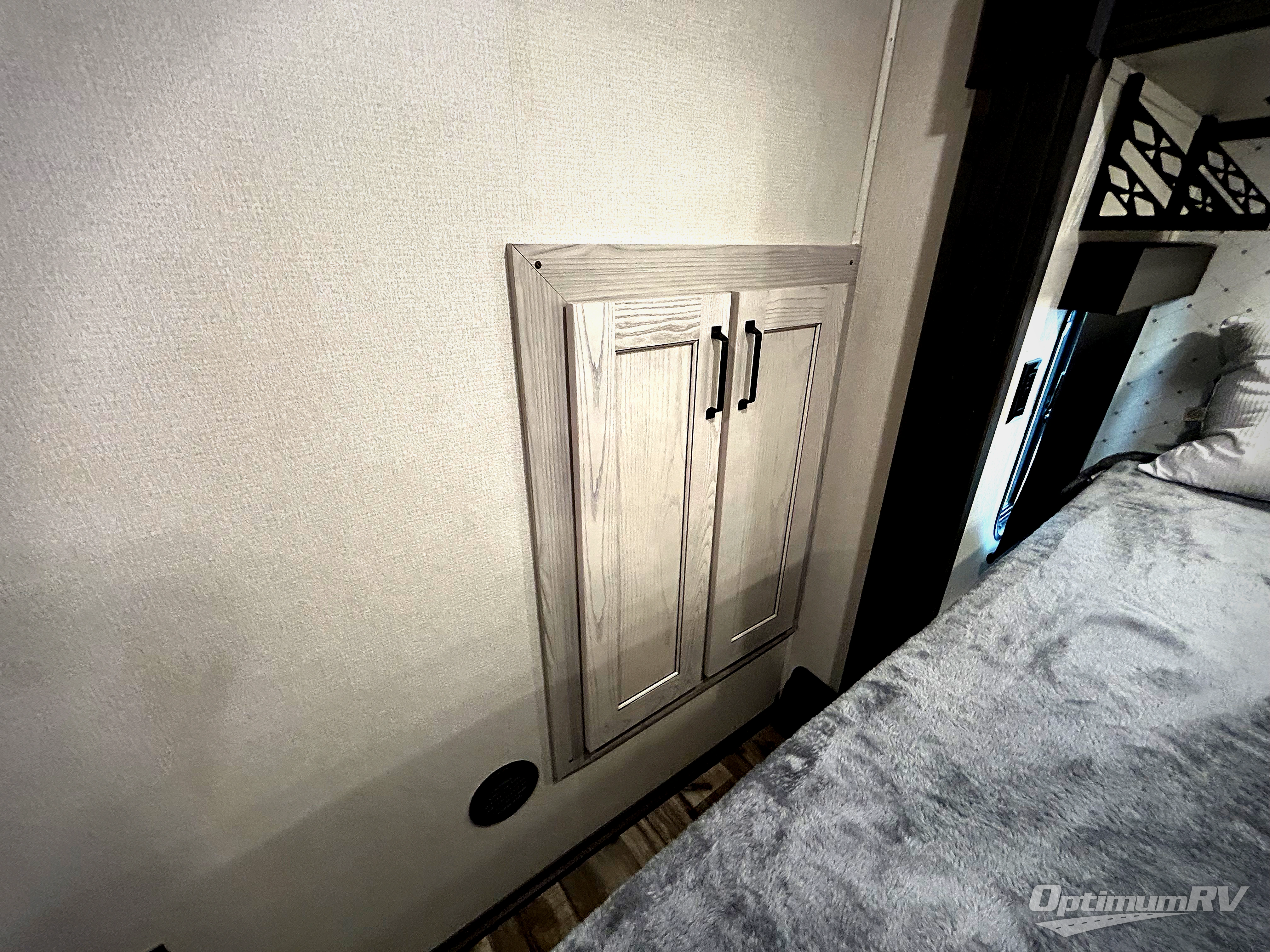 Include all of your favorite people on your next adventure in this Montana High Country fifth wheel! Not only is there a rear private bedroom with a king-size bed for you, but there is also a loft above with stairs that take you to the bunk mats. Now your kids will have their own space too. You can even host a few other travelers up front in the separate living room on the two hide-a-bed sofas. This area will be perfect for cozy sleeping because of the fireplace, and you can even watch a movie as you drift off to sleep because of the 50" LCD TV too. The full bathroom has a pivot-hinge door and a 48" x 30" shower with seat, and the kitchen has a breakfast bar that you can sit at to eat your cereal each morning