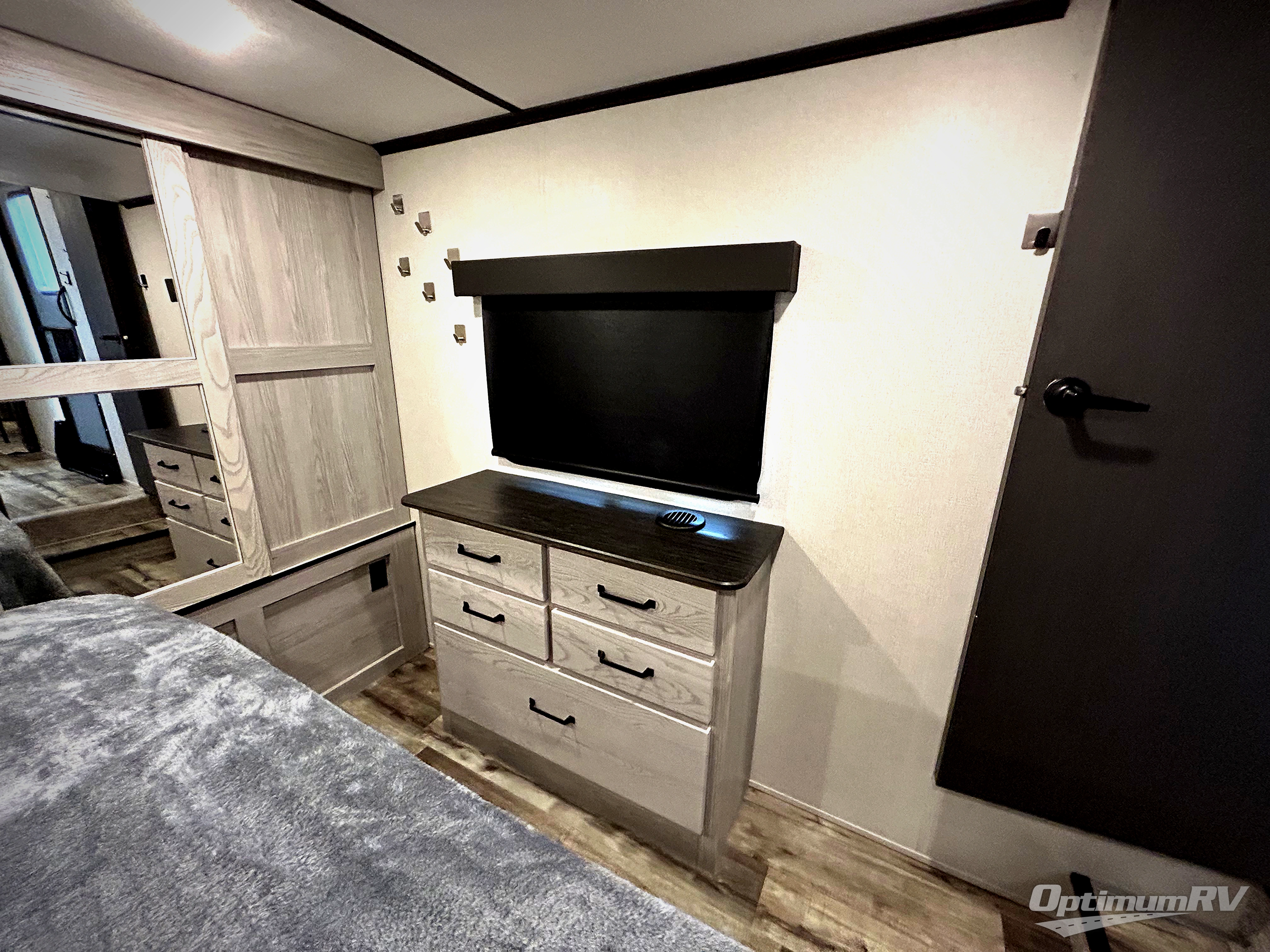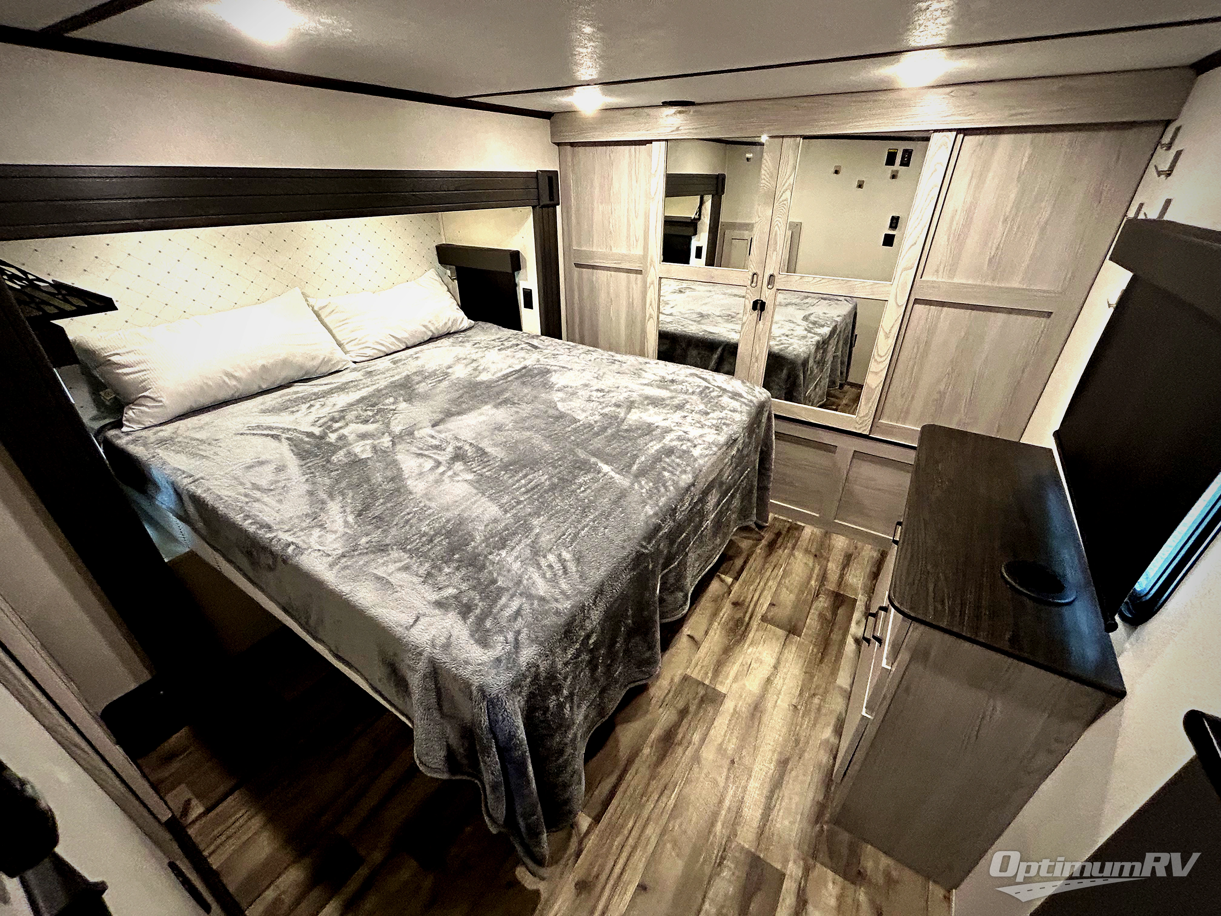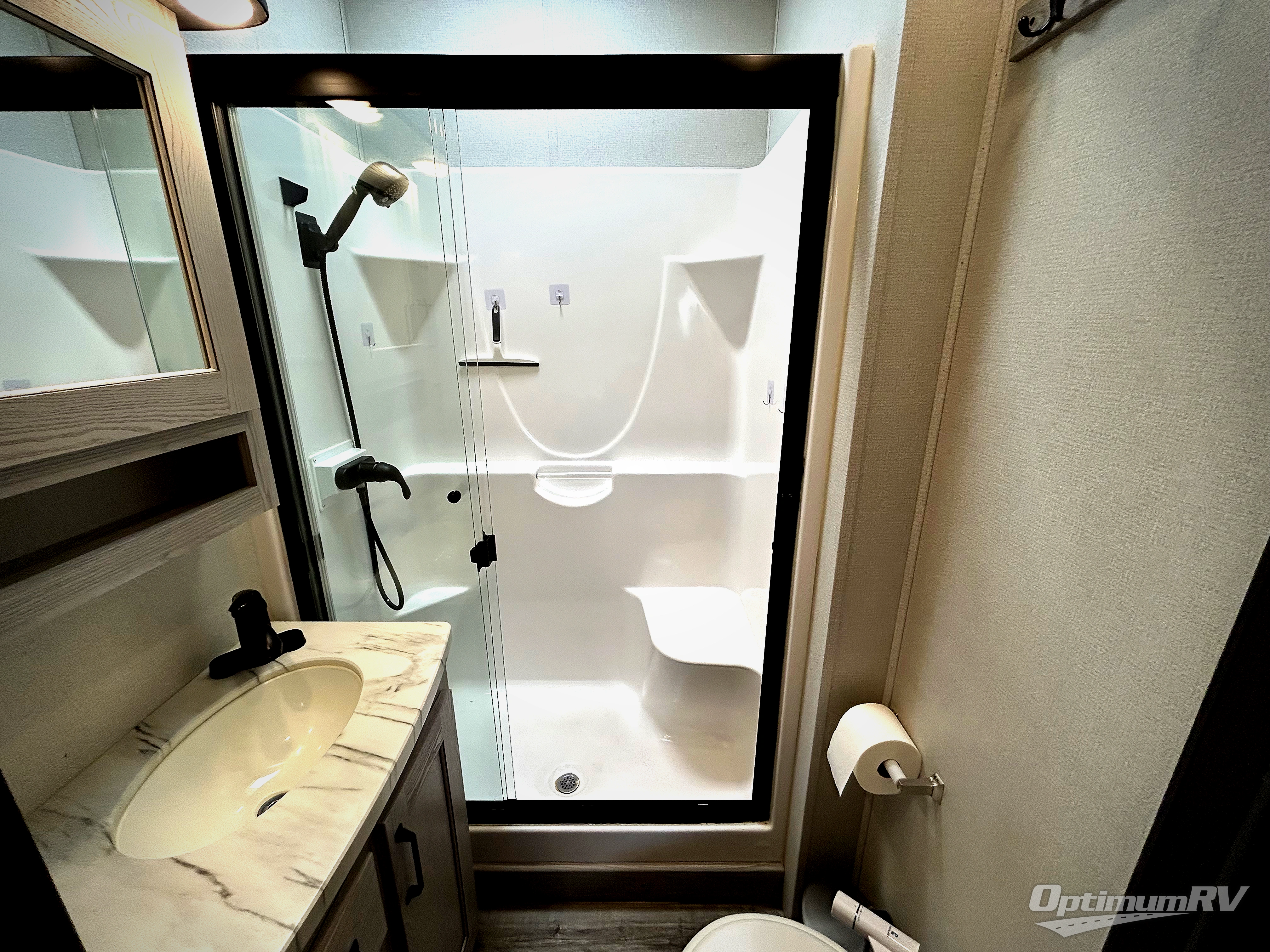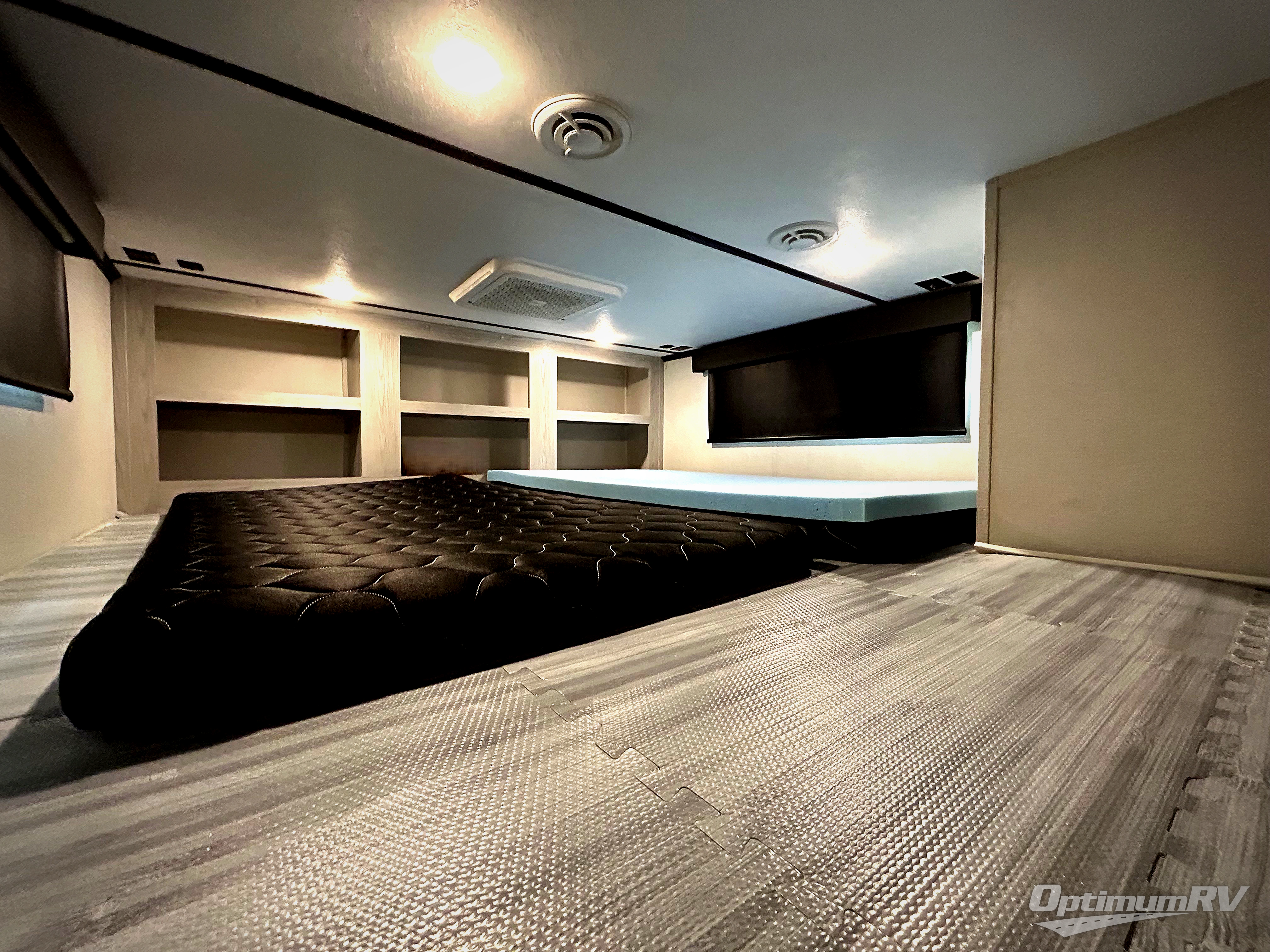 Include all of your favorite people on your next adventure in this Montana High Country fifth wheel! Not only is there a rear private bedroom with a king-size bed for you, but there is also a loft above with stairs that take you to the bunk mats. Now your kids will have their own space too. You can even host a few other travelers up front in the separate living room on the two hide-a-bed sofas. This area will be perfect for cozy sleeping because of the fireplace, and you can even watch a movie as you drift off to sleep because of the 50" LCD TV too. The full bathroom has a pivot-hinge door and a 48" x 30" shower with seat, and the kitchen has a breakfast bar that you can sit at to eat your cereal each morning