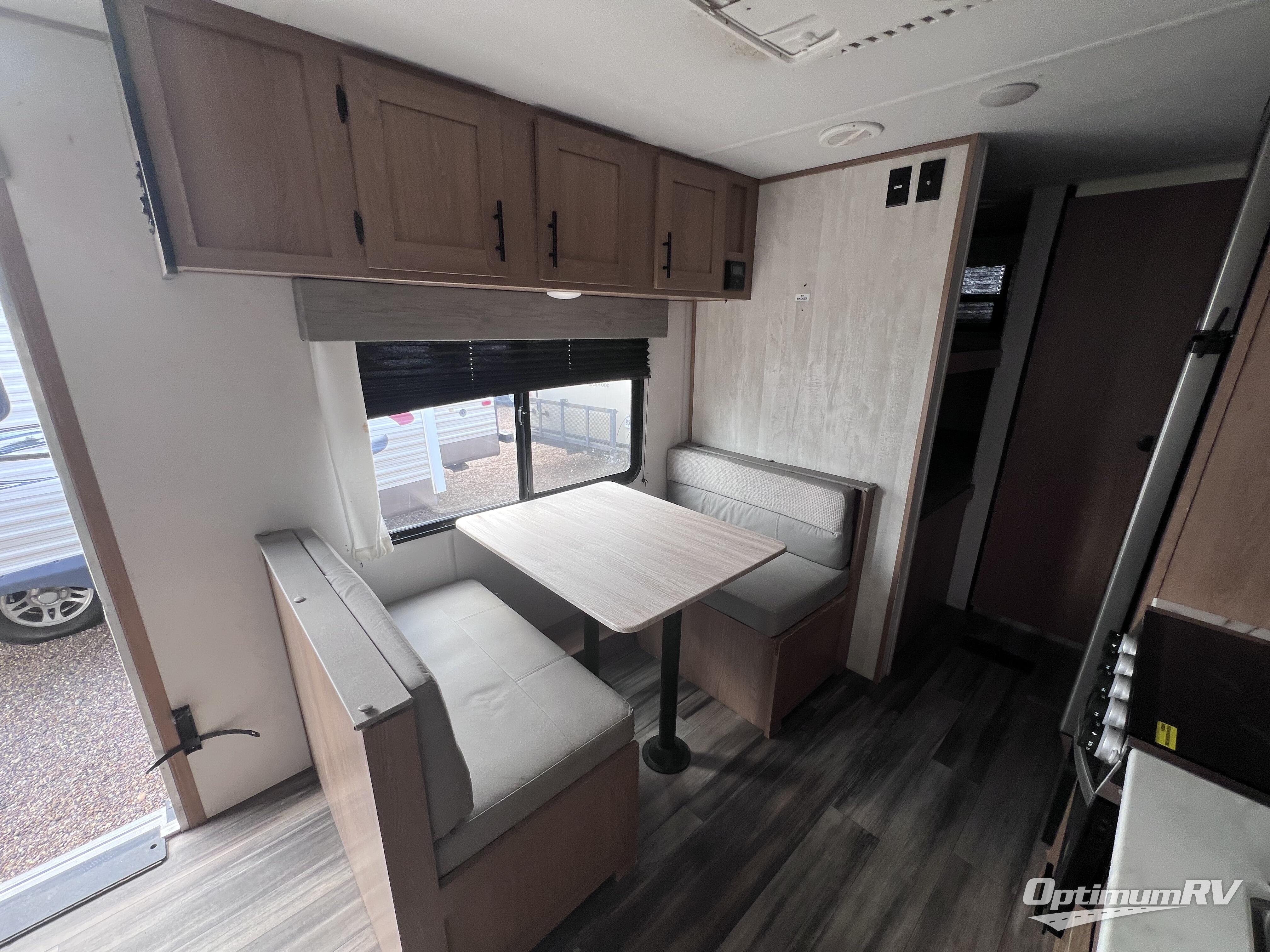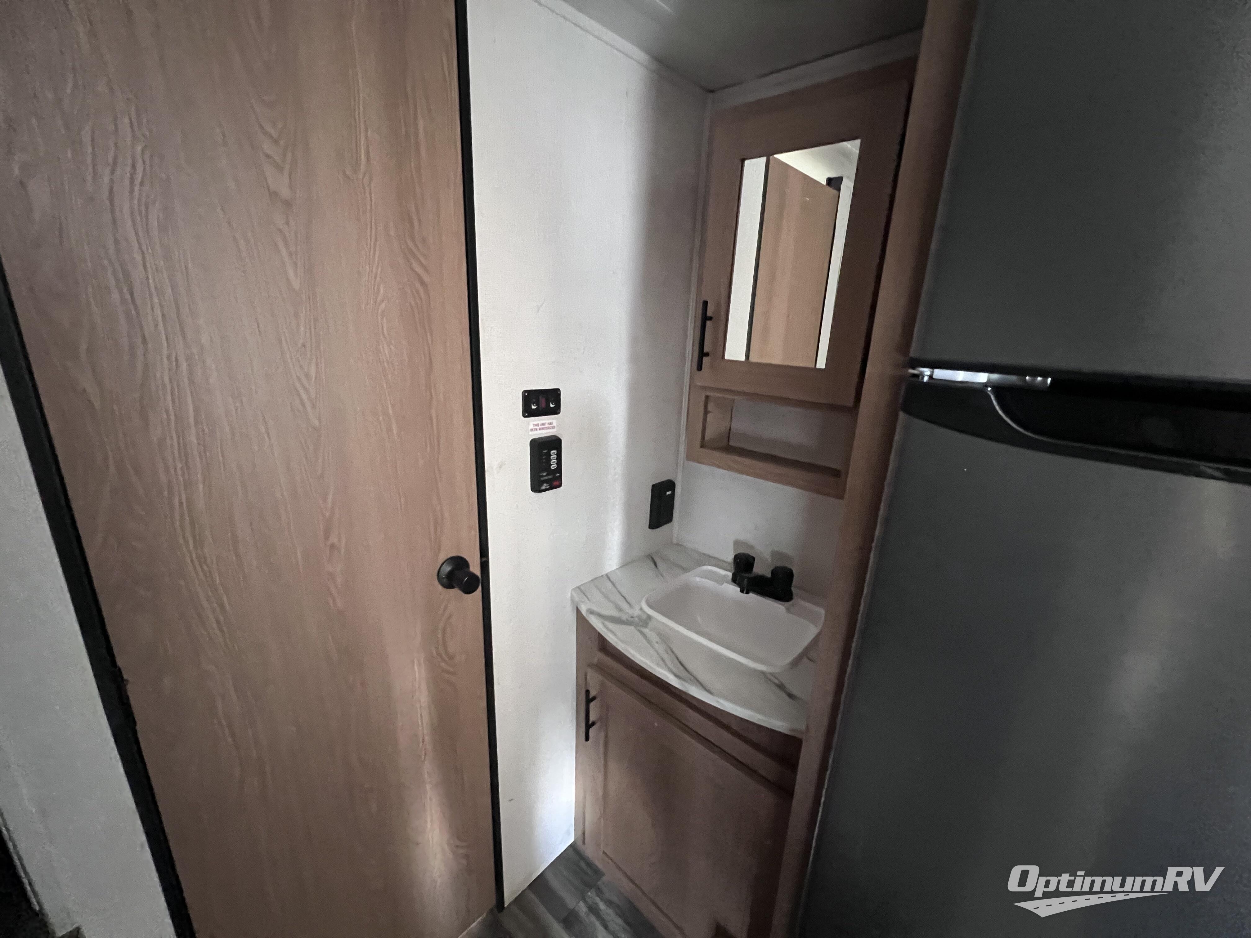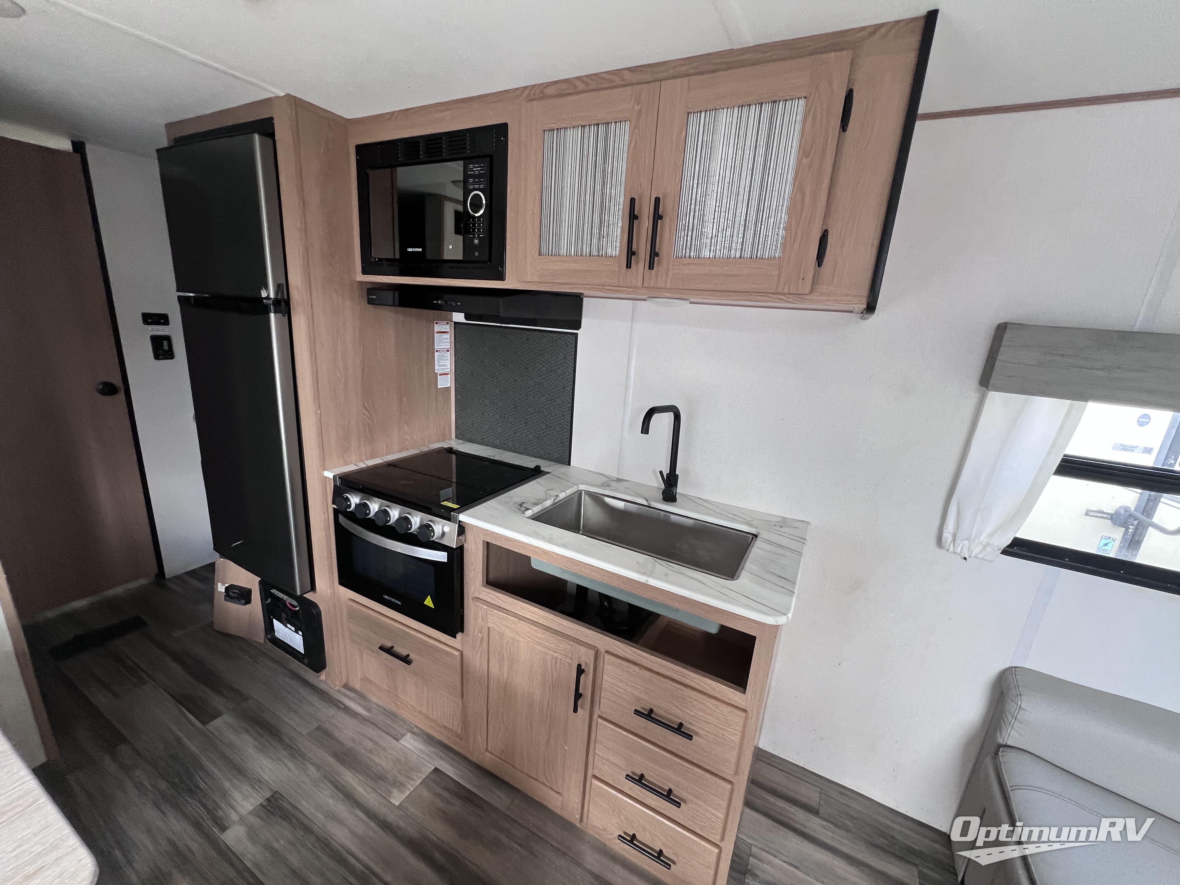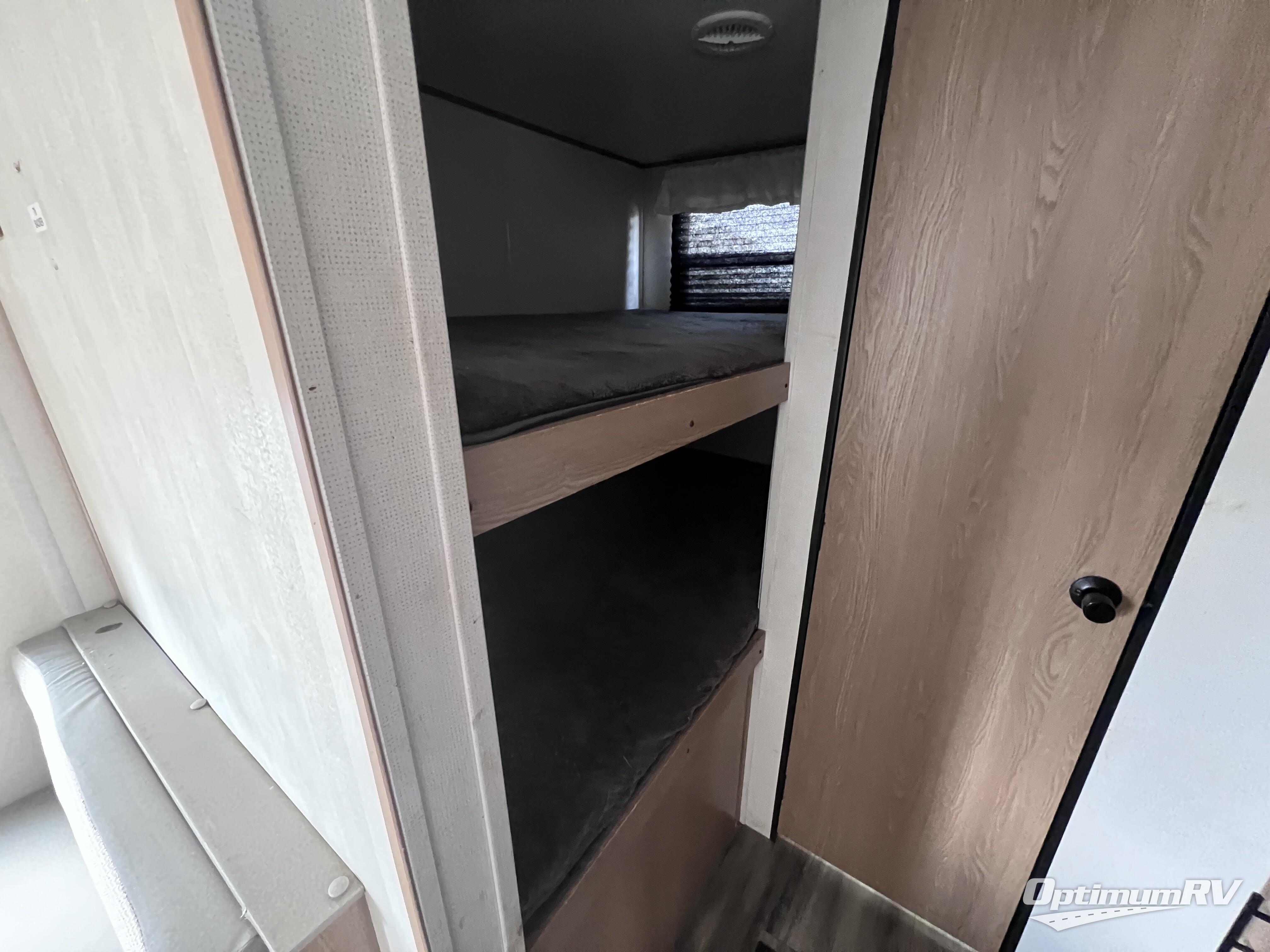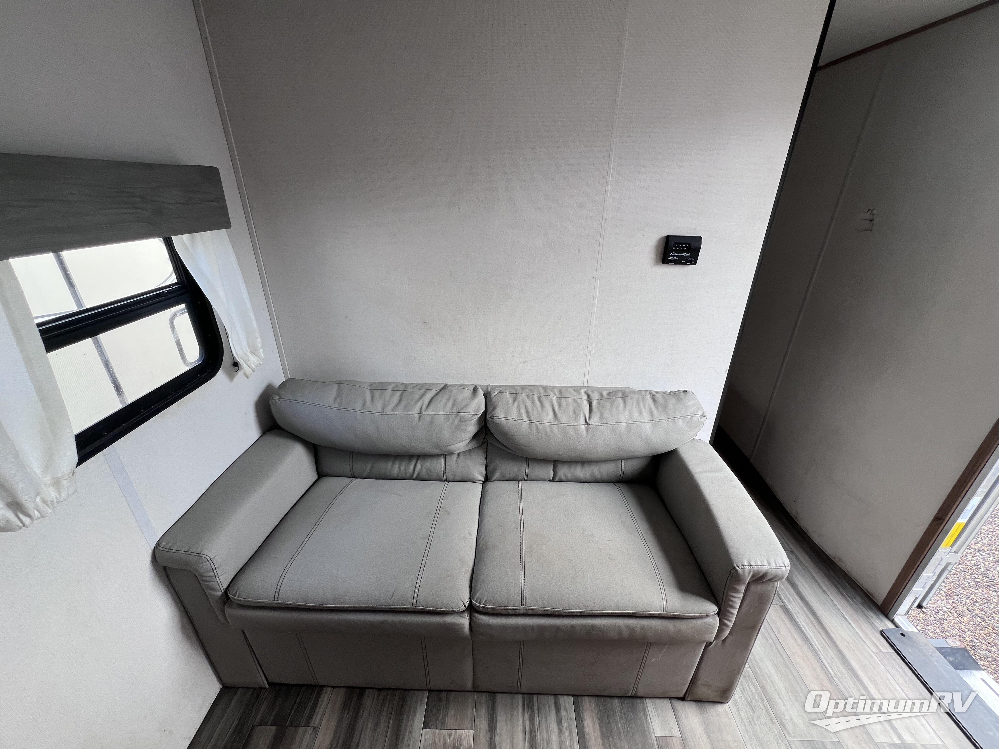 The cook is going to enjoy having choices for every meal, whether to use the full kitchen amenities inside or the outdoor kitchen while visiting with others relaxing under the 13' power awning. With the inclusion of a walk-around queen bed in the front bedroom, plus the sofa and booth dinette in the combined kitchen and living area, and the double-size bunks next to the bathroom sink and private toilet and toilet room, there is plenty of room to sleep eight or nine people each night. And the power awnings plus outdoor speakers give you an additional living area for everyone.