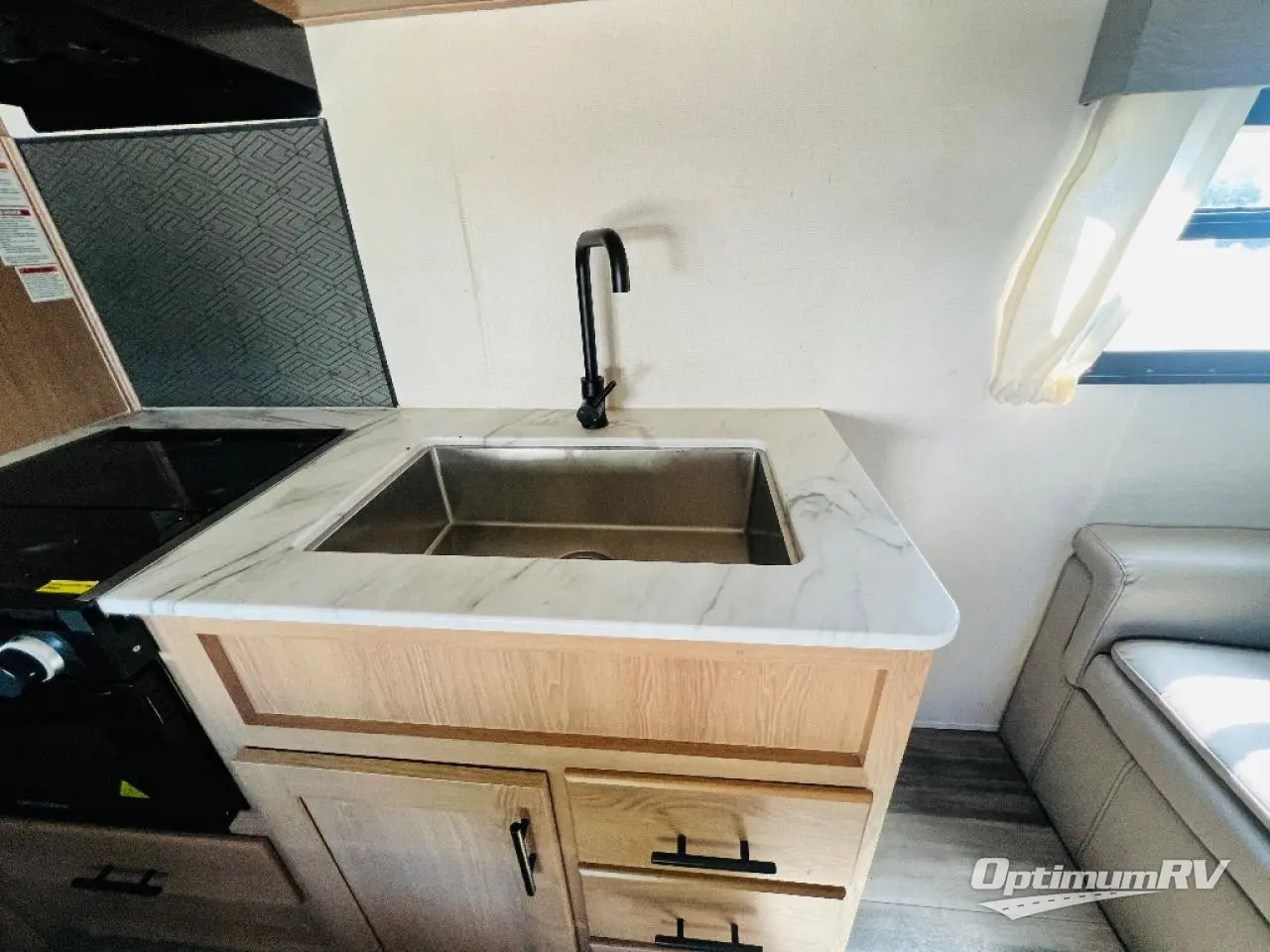 The cook is going to enjoy having choices for every meal, whether to use the full kitchen amenities inside or the outdoor kitchen while visiting with others relaxing under the 13' power awning. With the inclusion of a walk-around queen bed in the front bedroom, plus the sofa and booth dinette in the combined kitchen and living area, and the double-size bunks next to the bathroom sink and private toilet and toilet room, there is plenty of room to sleep eight or nine people each night. And the power awnings plus outdoor speakers give you an additional living area for everyone.