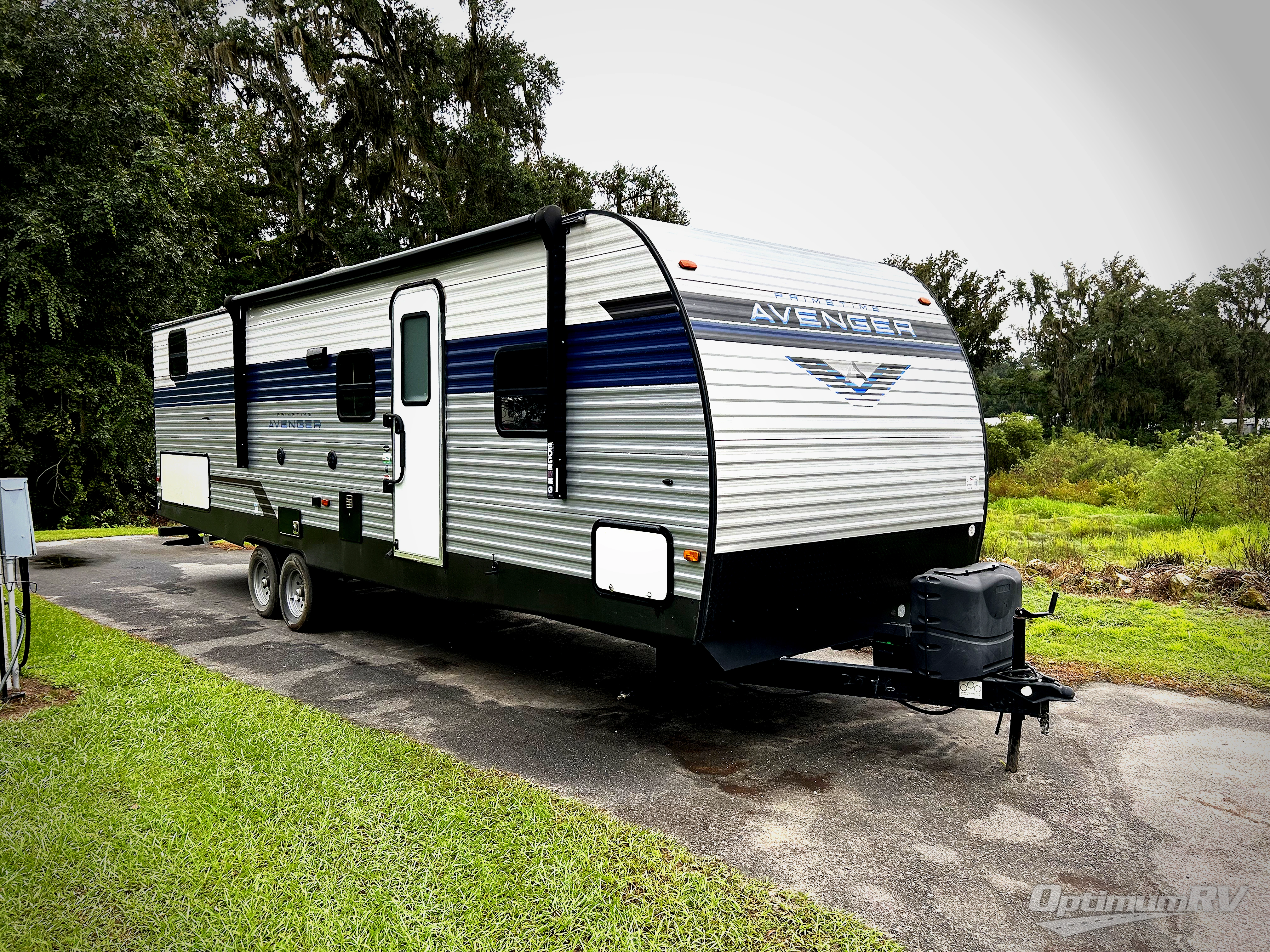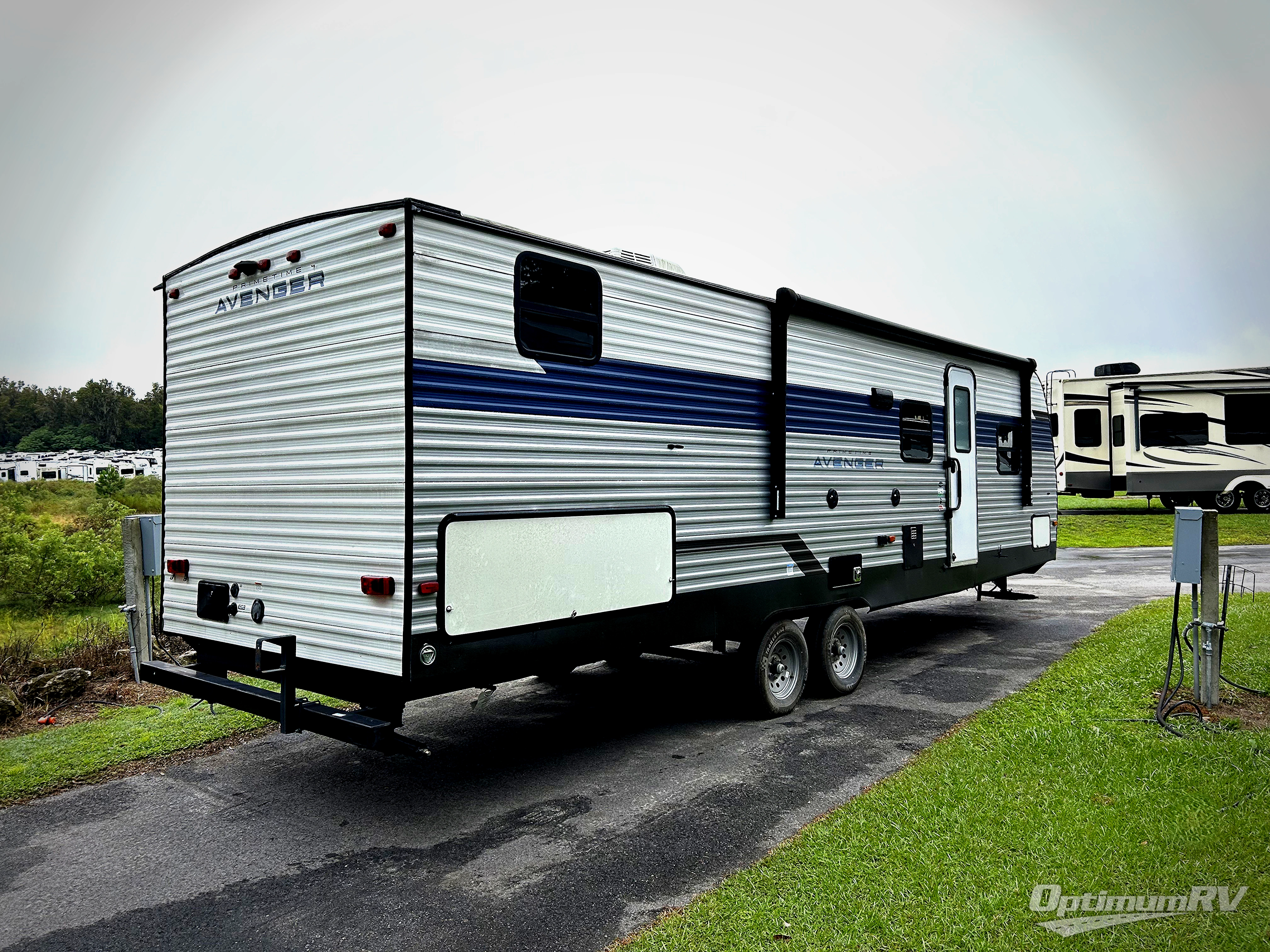With any Avenger or Avenger LE travel trailer by Prime Time, the exterior includes an aerodynamic radius front profile, a diamond plate front rock guard for protection on the road, a power tongue jack for easy setup, and four stabilizer jacks. There is an aluminum exterior skin, a walk-on roof with decking, and an Extreme Weather package plus enclosed underbelly. The interior offers a 13,500 BTU air conditioner for the perfect climate inside, in-floor ducted heat, a systems monitor panel, and a Bluetooth entertainment system plus more depending on the travel trailer you choose to begin your outdoor adventure with.