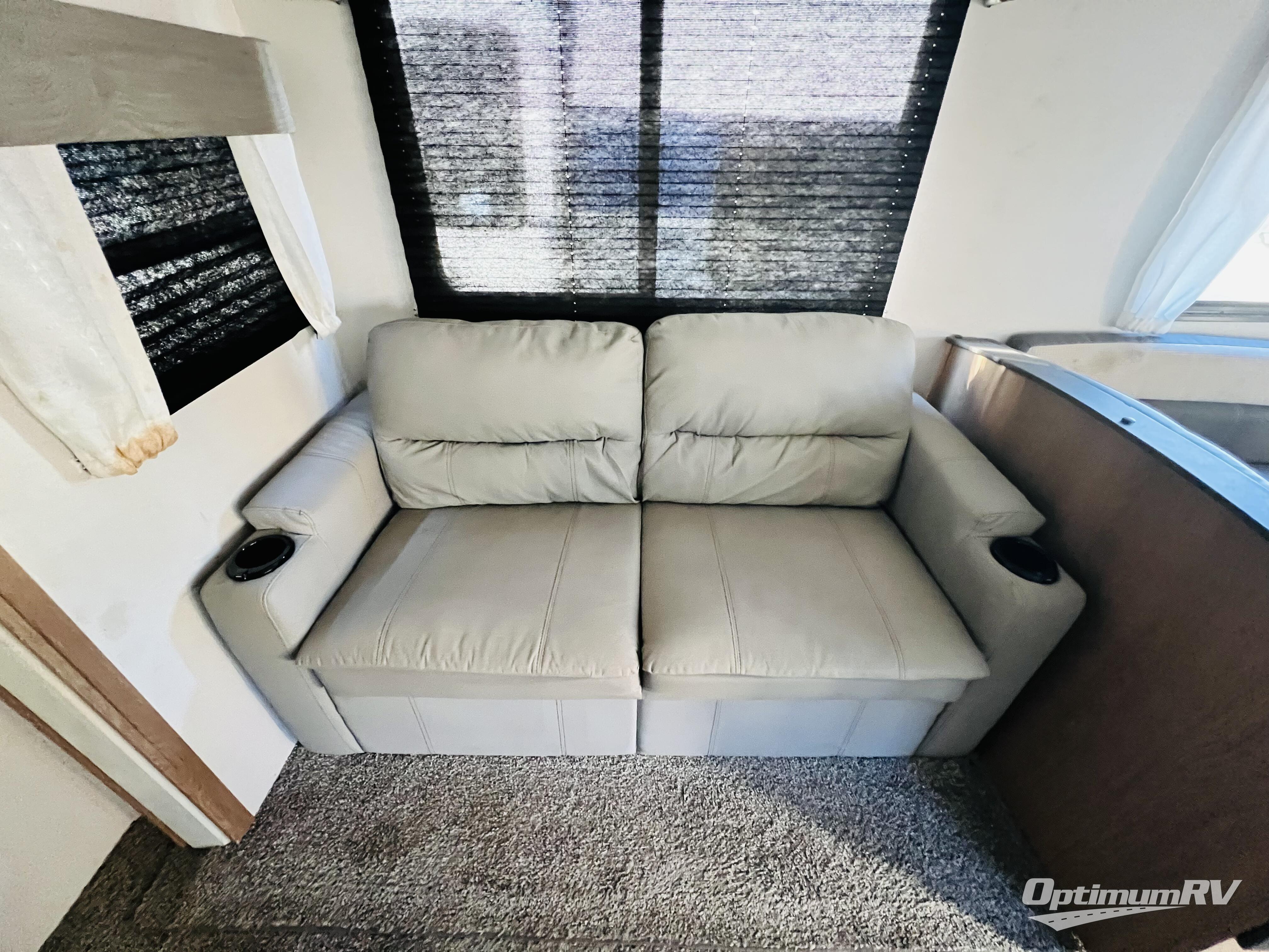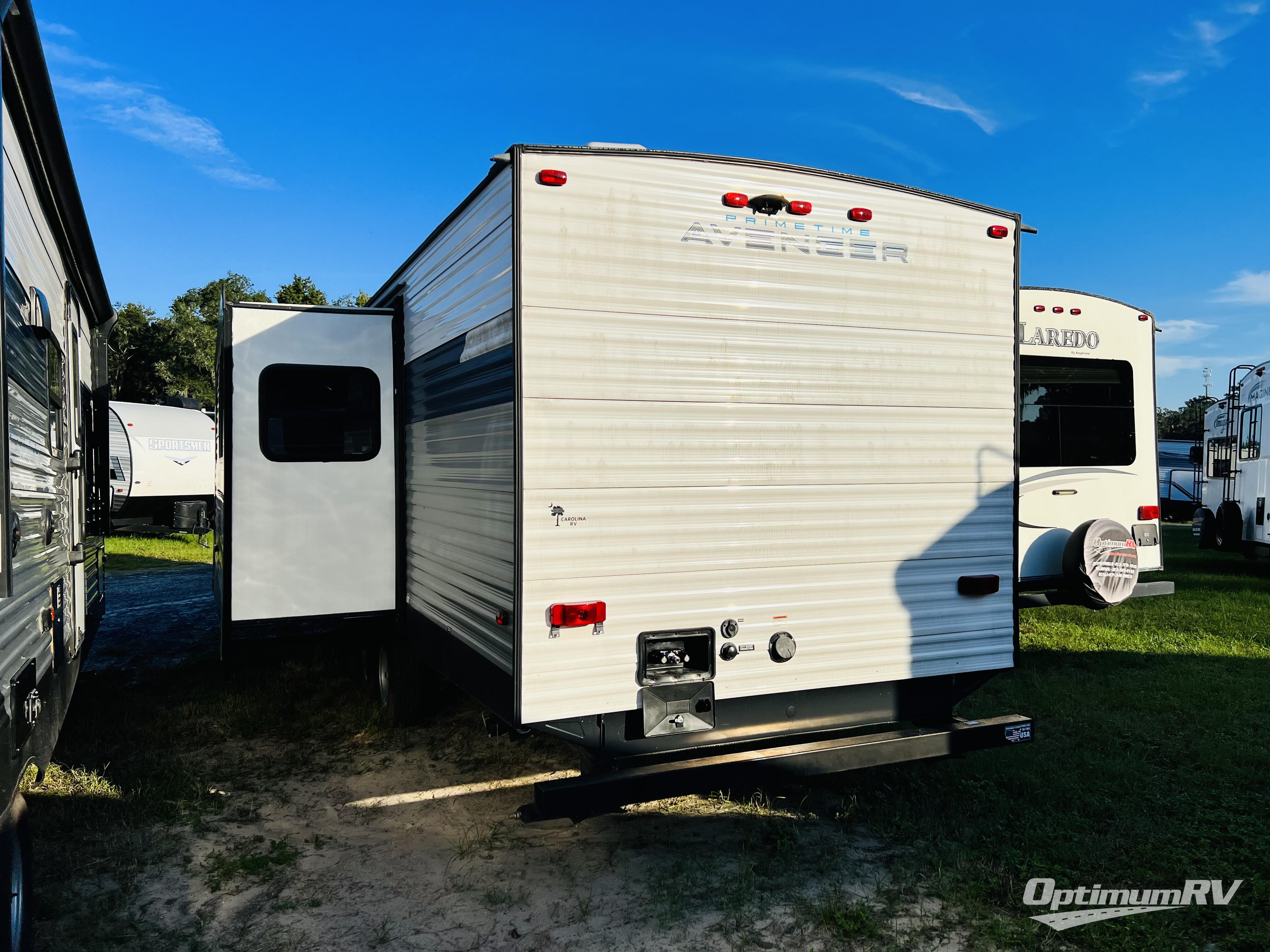 With any Avenger or Avenger LE travel trailer by Prime Time, the exterior includes an aerodynamic radius front profile, a diamond plate front rock guard for protection on the road, a power tongue jack for easy setup, and four stabilizer jacks. There is an aluminum exterior skin, a walk-on roof with decking, and an Extreme Weather package plus enclosed underbelly. The interior offers a 13,500 BTU air conditioner for the perfect climate inside, in-floor ducted heat, a systems monitor panel, and a Bluetooth entertainment system plus more depending on the travel trailer you choose to begin your outdoor adventure with.