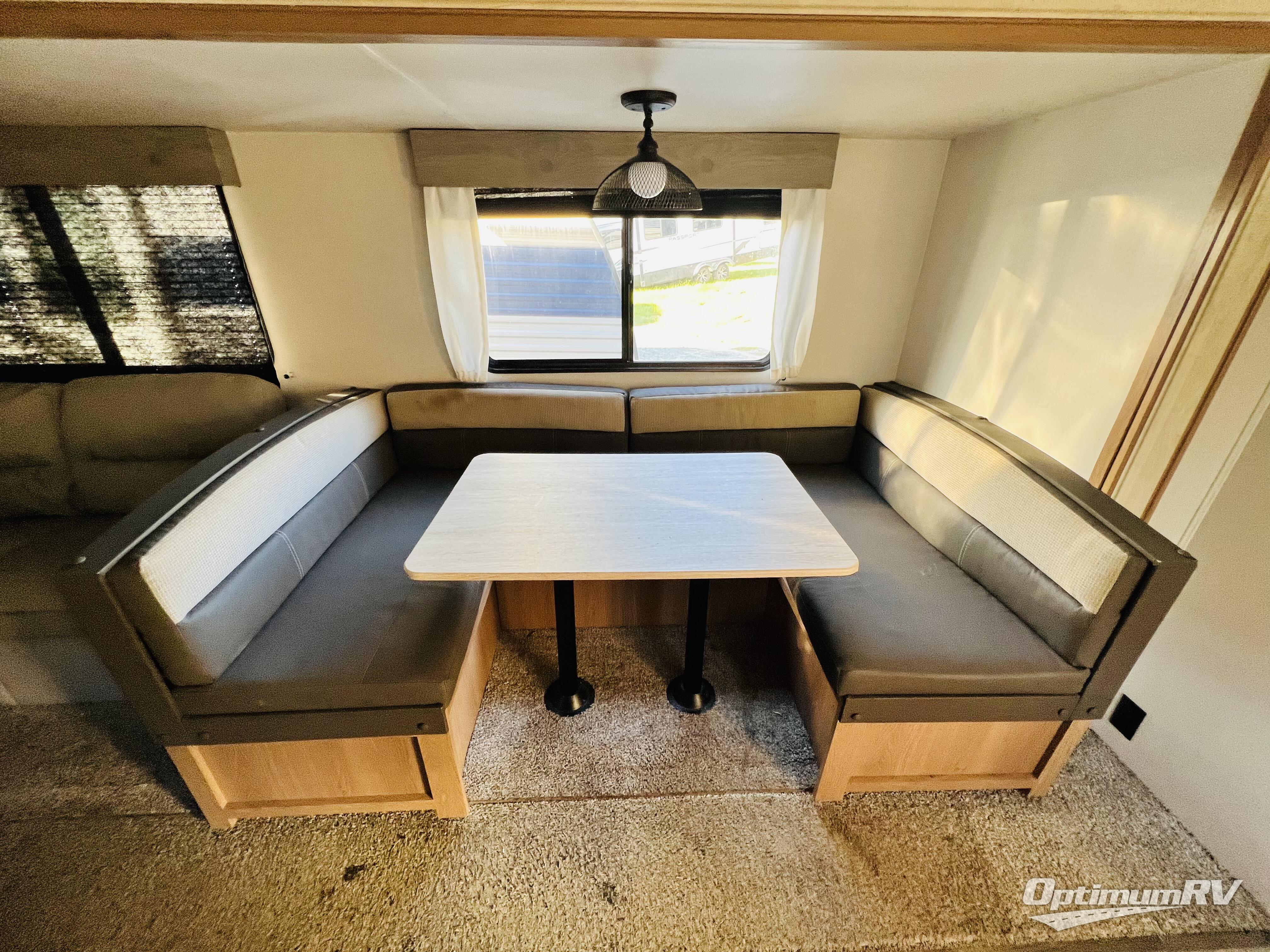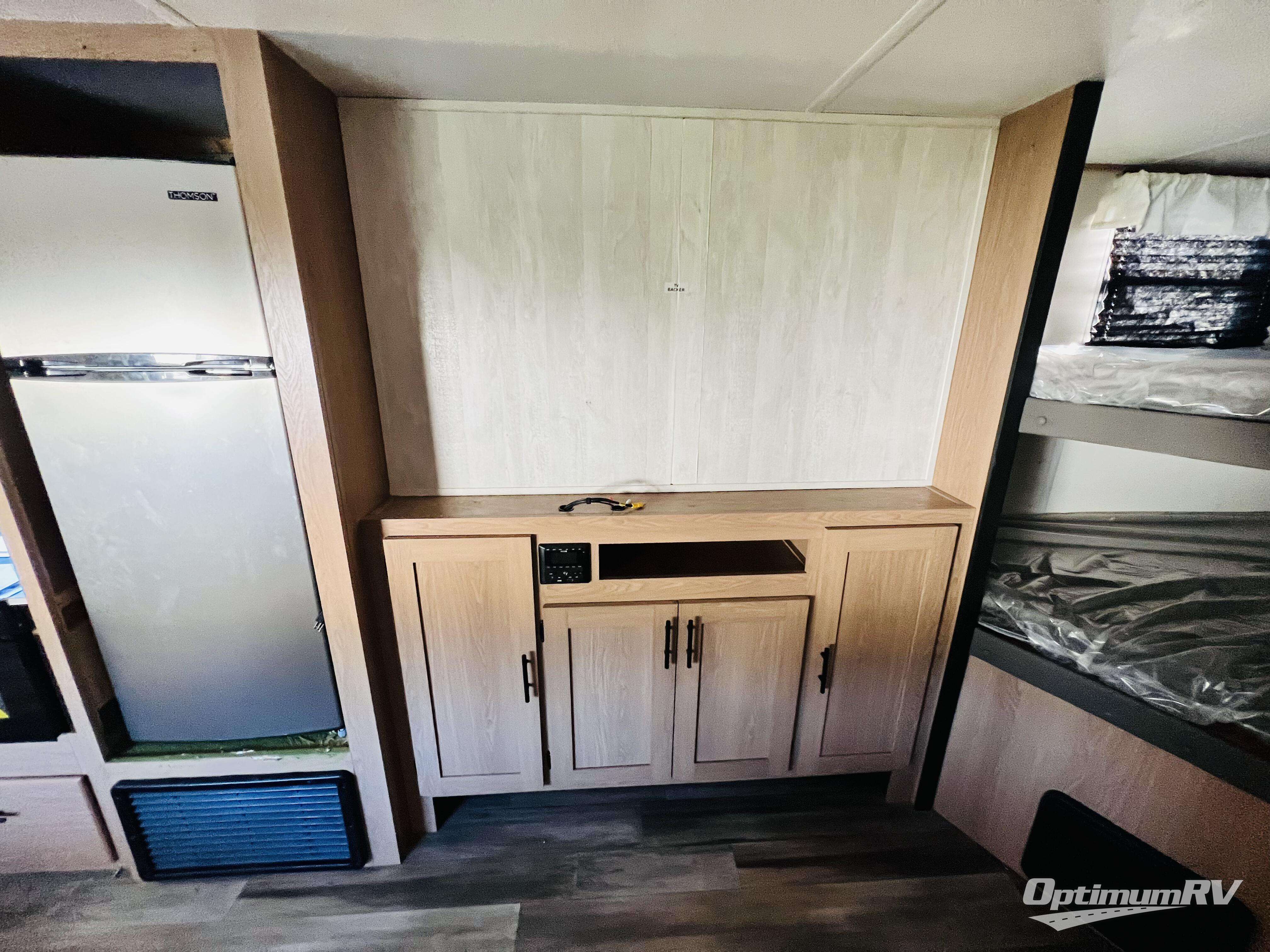Your family will love this trailer and camping anywhere you go! With a full and half bathroom, you will have the easiest time getting ready in the morning and cleaning up after a full day of hiking. The half bathroom is completely secluded within the front bedroom creating an enticing master suite for the owner of this trailer, and the full bathroom contains the second exterior entry door so that everyone else can quickly get inside to use the restroom while outside playing. The large slide is going to make the main living space feel open and inviting, and the double-size bunks provide you with compact sleeping for four. There is also a large pantry for storing your snacks and a fireplace for keeping the interior cozy.