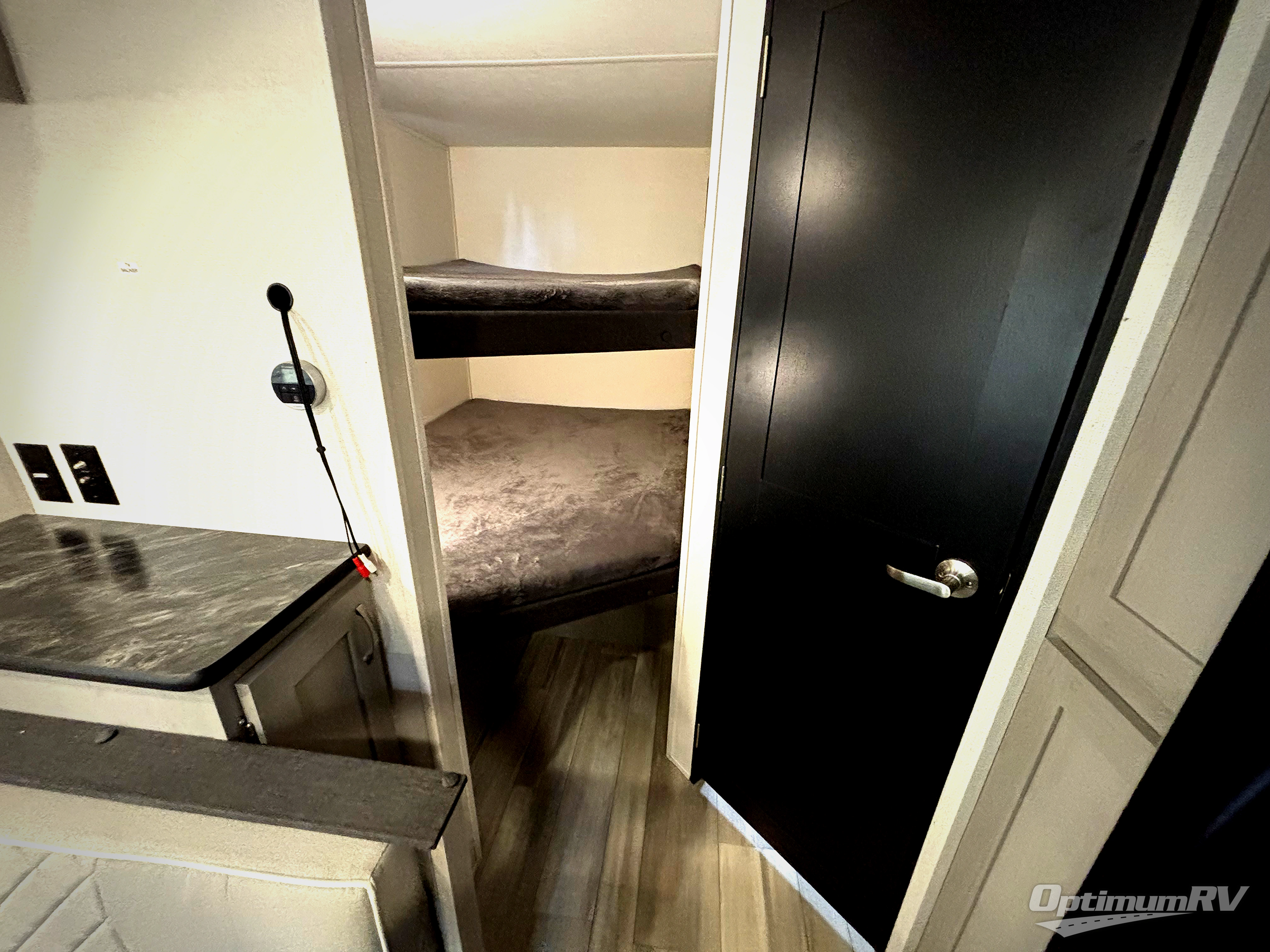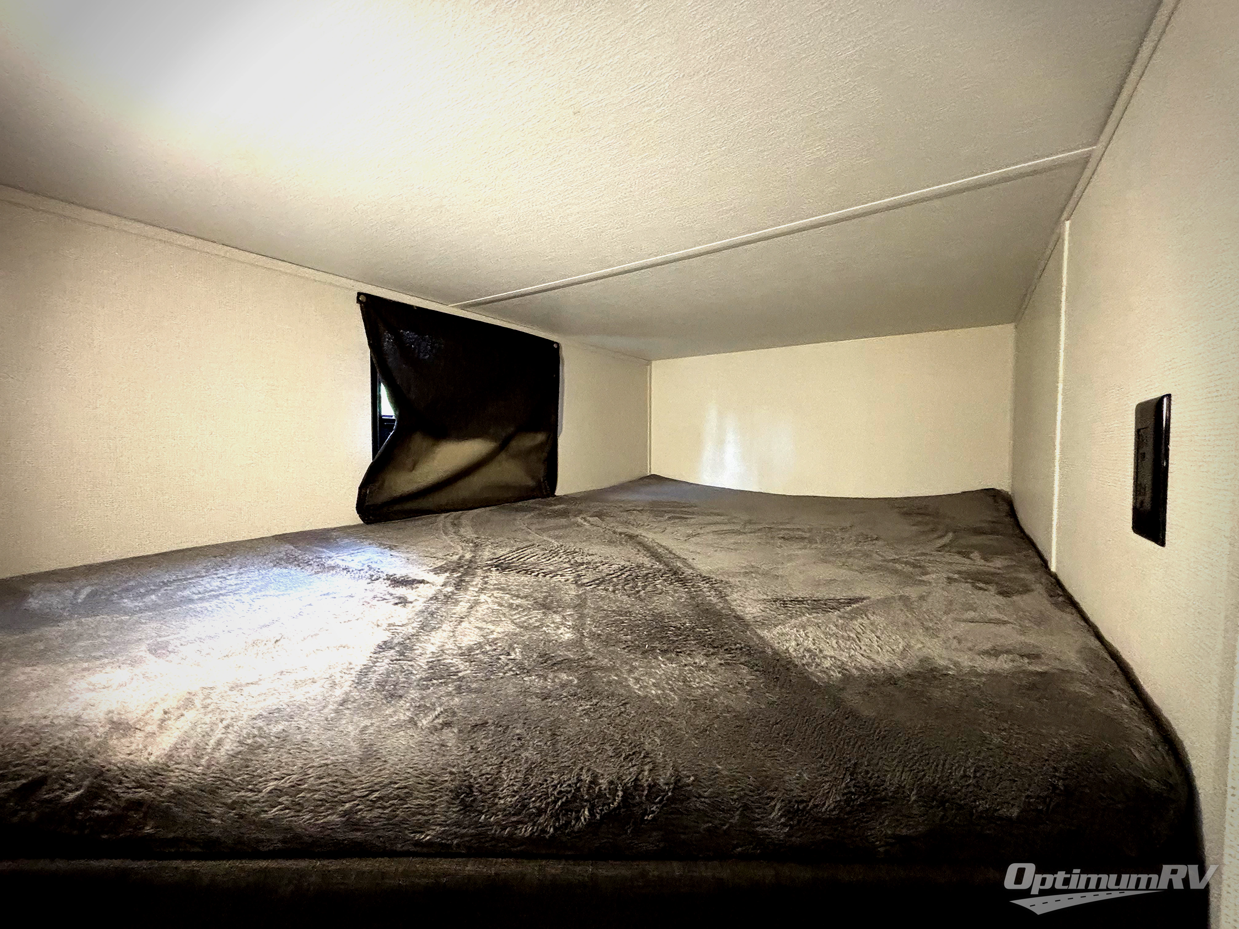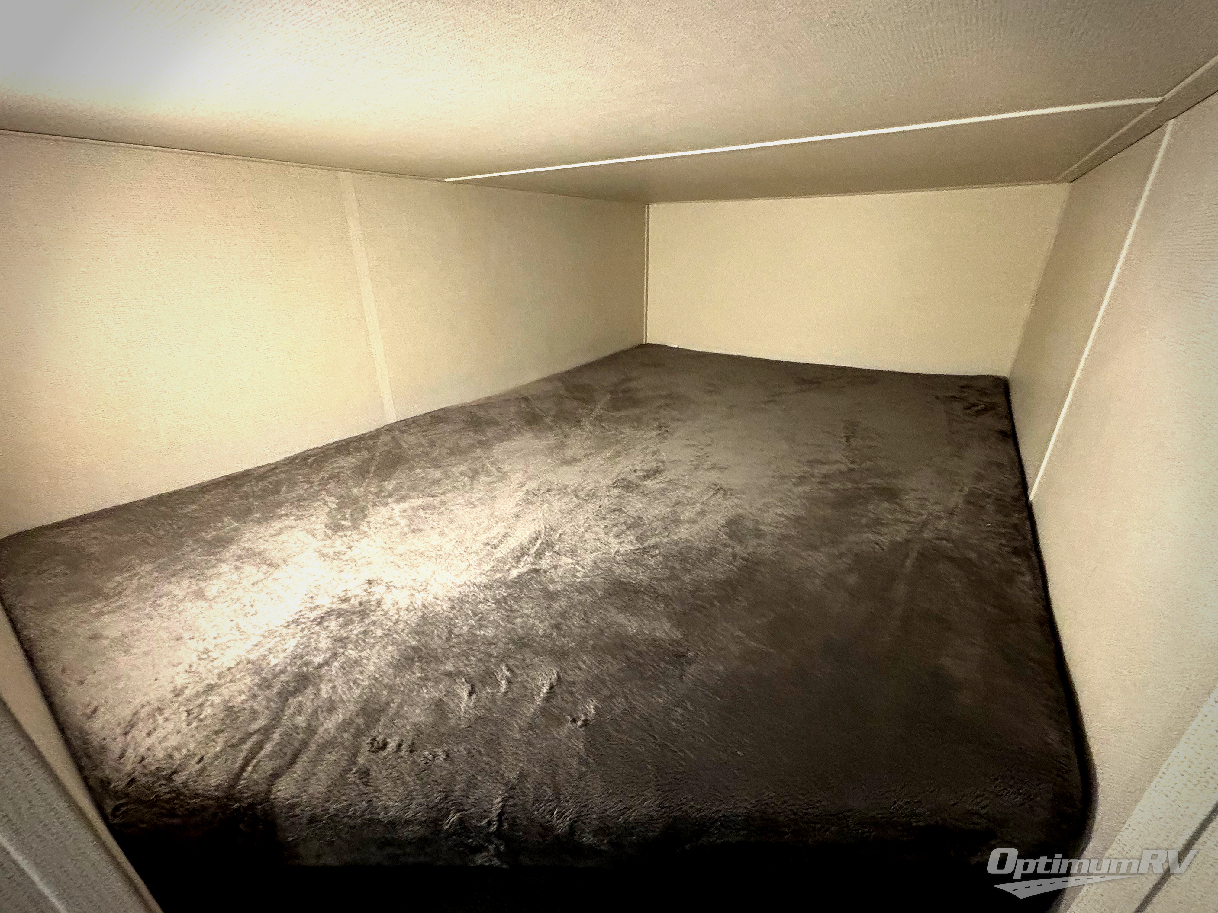 If you are searching for bunk beds, this trailer offers the double-size version! And you will love the easy towing and gasoline savings when heading to your campsite. There is a full-size dinette that doubles as sleeping space and offers storage, kitchen appliances and a pantry, plus a full bathroom with a full-size shower. And the front queen bed allows you access on either side and includes dual wardrobes. So load up and enjoy!