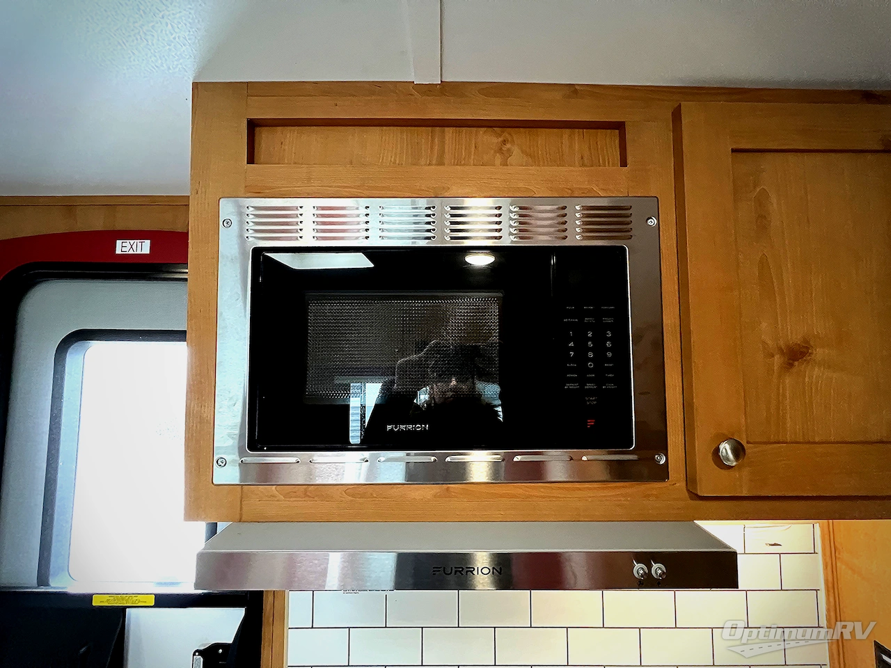 This is the perfect family-friendly travel trailer since it includes bunk beds for the little ones, and a front queen bed for you two. The full bath onboard will allow you to freshen up each day, and you can make meals using the fully-equipped kitchen. There is a booth dinette where you can dine together and sleep additional guests, and you'll find overhead cabinets for your belongings.