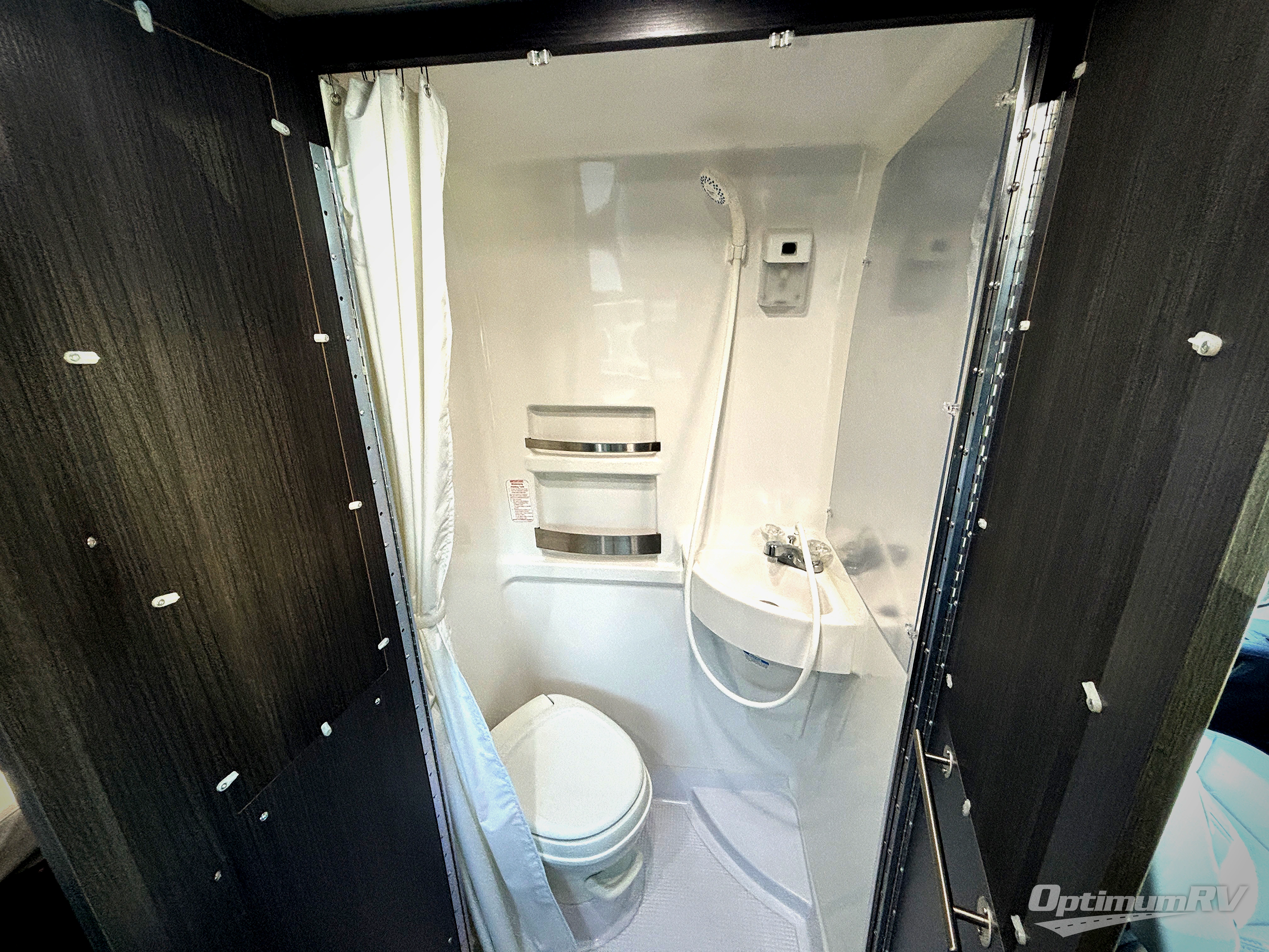 Chase your outdoor excursions in this comfortable motorhome for two! You will find side-facing rear power sofas that can convert to twin beds or a king-size bed for your comfort. If you're needing more sleeping space, just add the optional folding mattress for the front captain's seats! You can prepare at-home meals in the galley that features a two-burner propane stove, a 5-cu. ft. refrigerator, plus a counter extension with a charging station for your tablet or phone. After you've freshened up in the convenient wet bath, head outdoors for the day to enjoy the sunshine. When you return, you can make popcorn in the microwave oven and watch a movie on the 24" Smart TV!