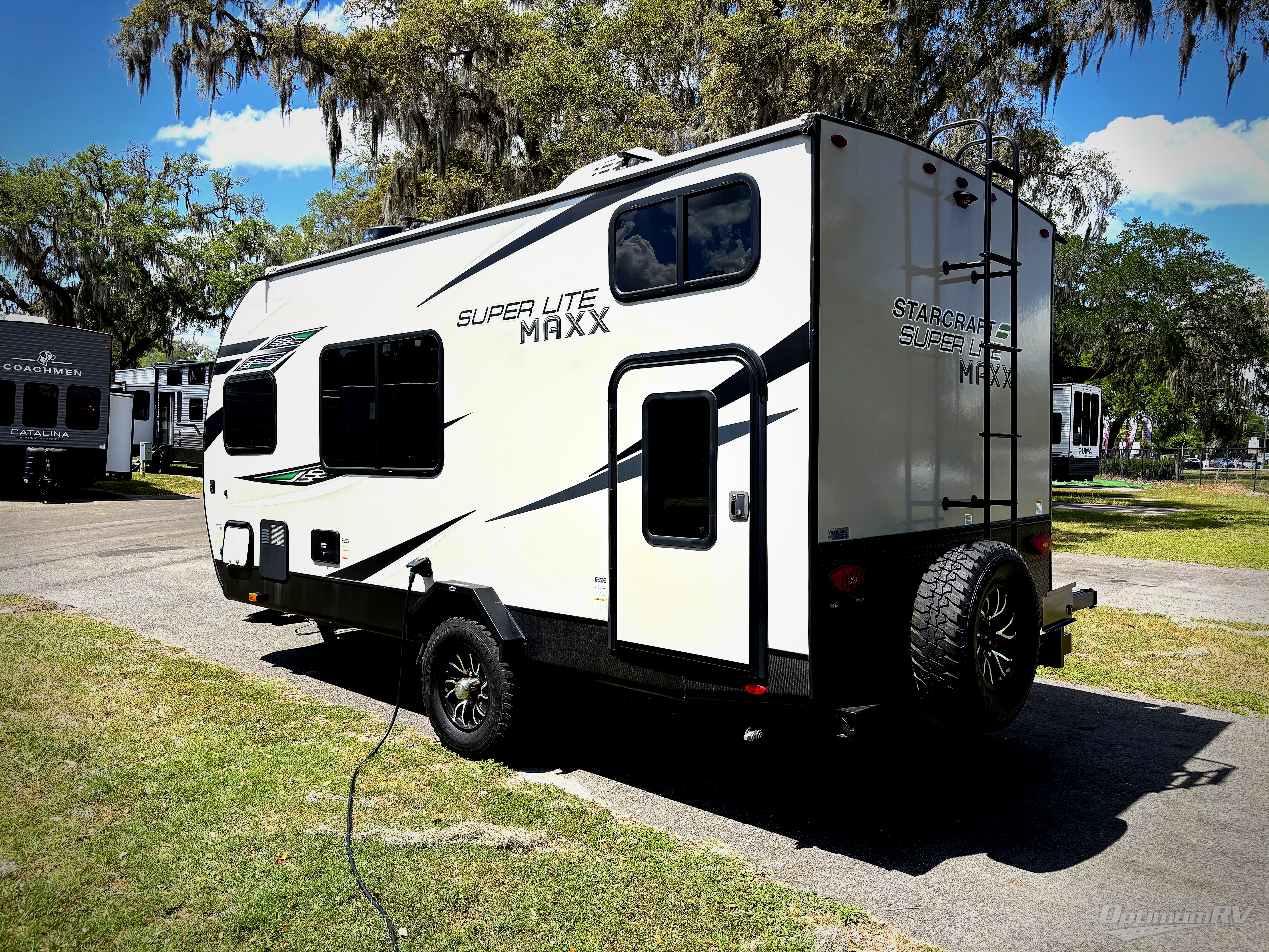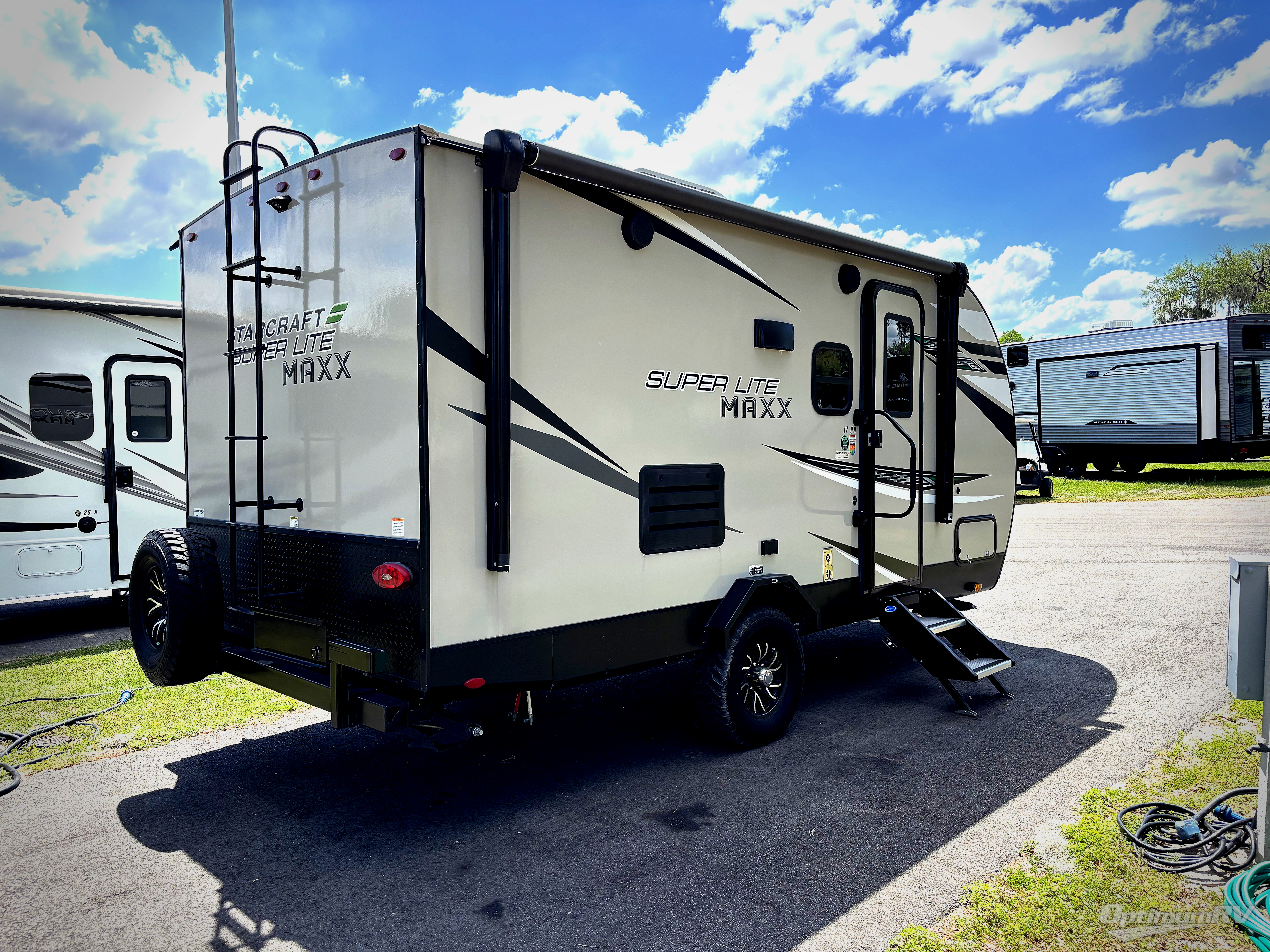 If you want to power up your camping experiences, take it to the max with the Starcraft Super Lite Maxx travel trailer! Each unit is built to last with a Magnum Roof system, PVC roofing membrane, and a TuffShell exterior which is a vacuum-bonded laminated construction, reinforced with heavy-duty fiberglass and welded aluminum frames. The 15" nitrogen-filled off-road radial tires with aluminum rims, impact-resistant galvanized steel wheel wells, and rubber torsion axle with increased ground clearance adjustments are great additions that allow the Super Lite Maxx to take adventures off the beaten path. Transform your campsite into the party space everyone wants to be a part of by using the marine-grade exterior speakers and power awning, and add the optional Off-Grid Solar Package if you want to take advantage of natural energy. You can also add an optional Wi-Fi router too!
