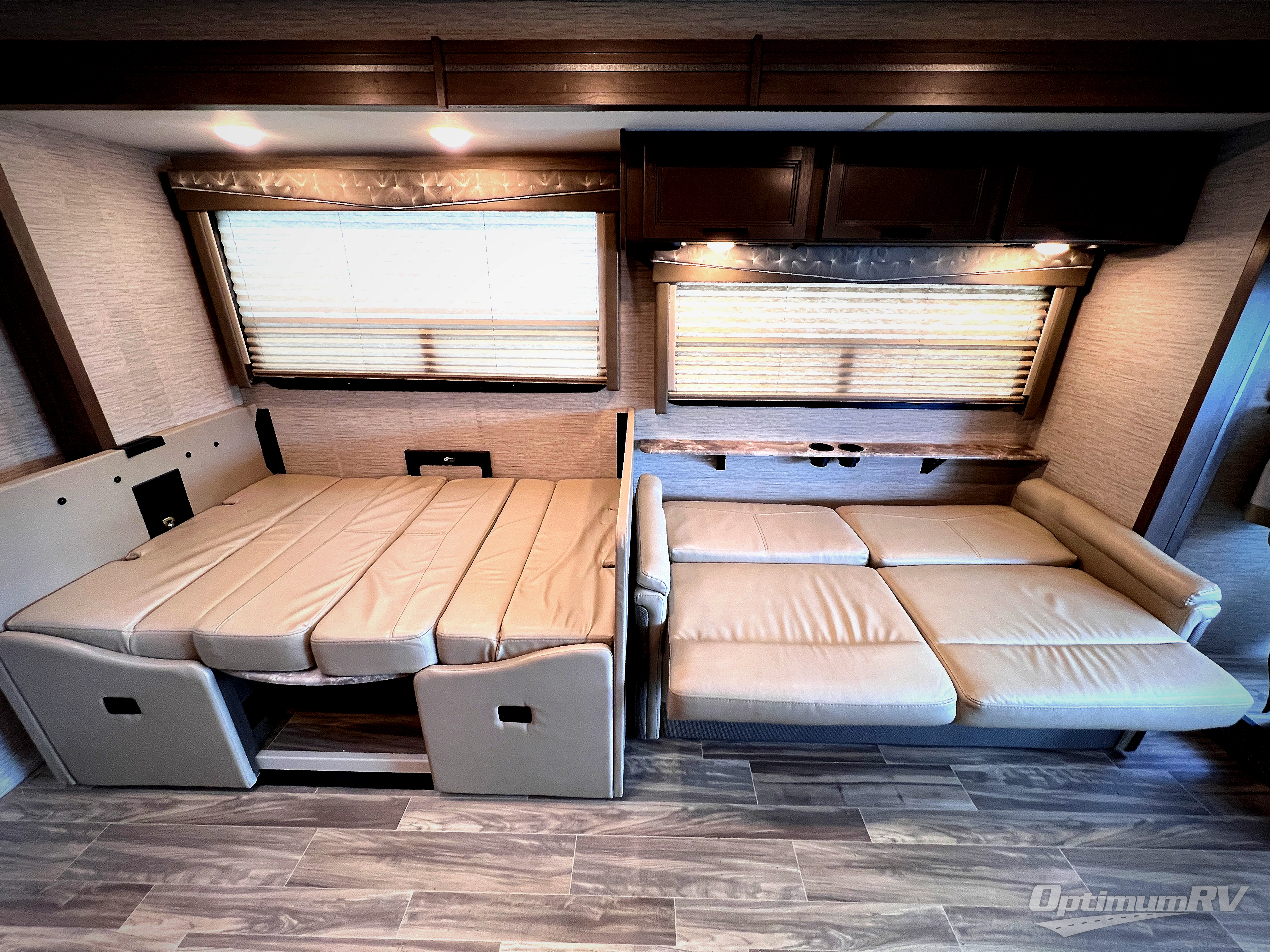 Pack up the family and bring your furry friends along too for fun camping trips in this double slide motorhome. The rear private bedroom includes a queen bed slide out, a closet, plus a 32" TV. You both can easily get clean up each morning thanks to the private lavy and sink, and the shower right across the hall. If you have any guests staying over, they can sleep on the Dream Dinette, the jack-knife sofa, or the drop-down overhead bunk. There is a three burner gas cooktop and a microwave oven to prepare meals at, and an exterior kitchen with a refrigerator, a sink, and a 1000-watt inverter. The retractable 39" TV provides everyone a view for movie night, or you may just find yourselves outdoors under the 19' power awning with LED lights!
