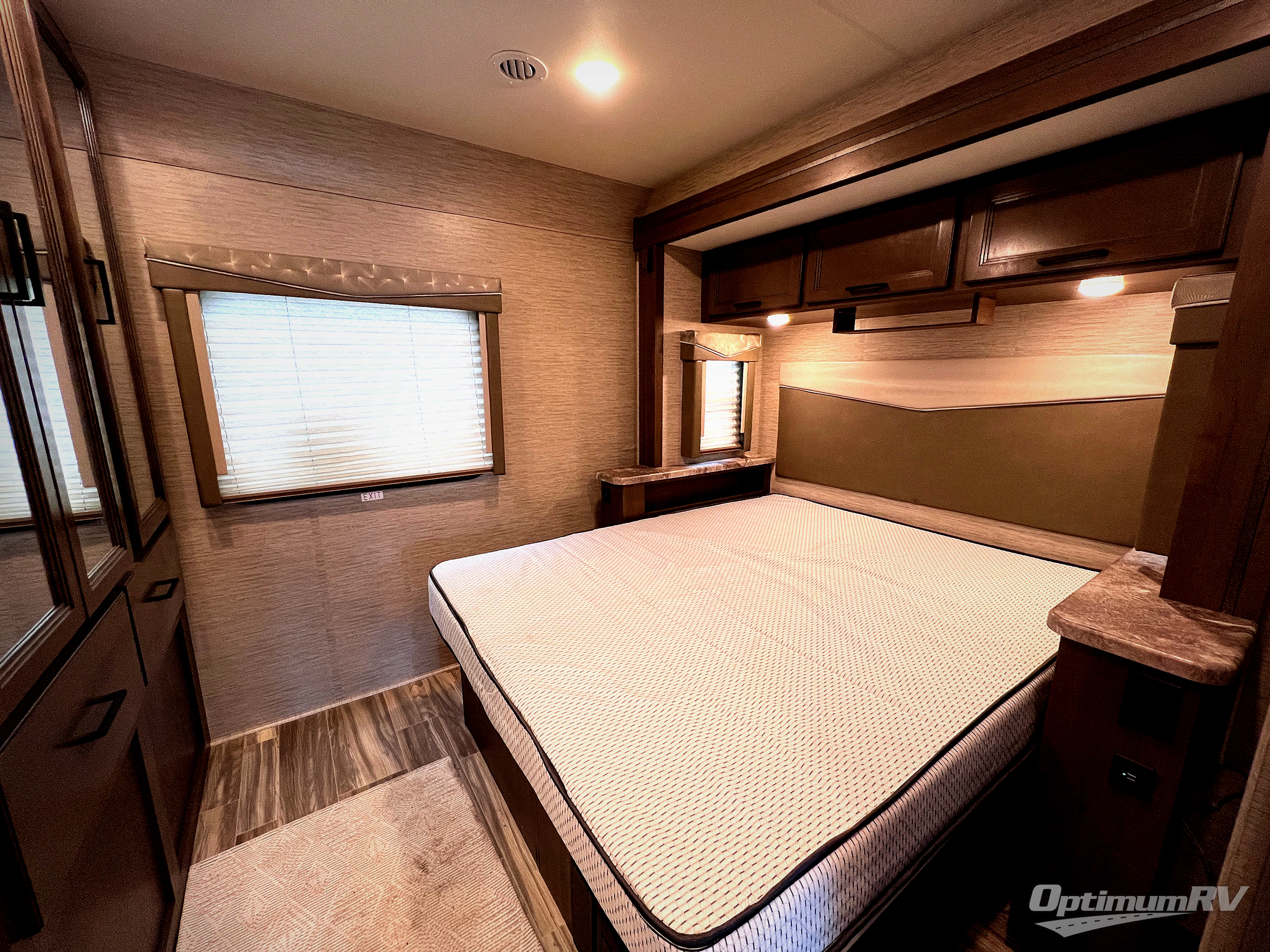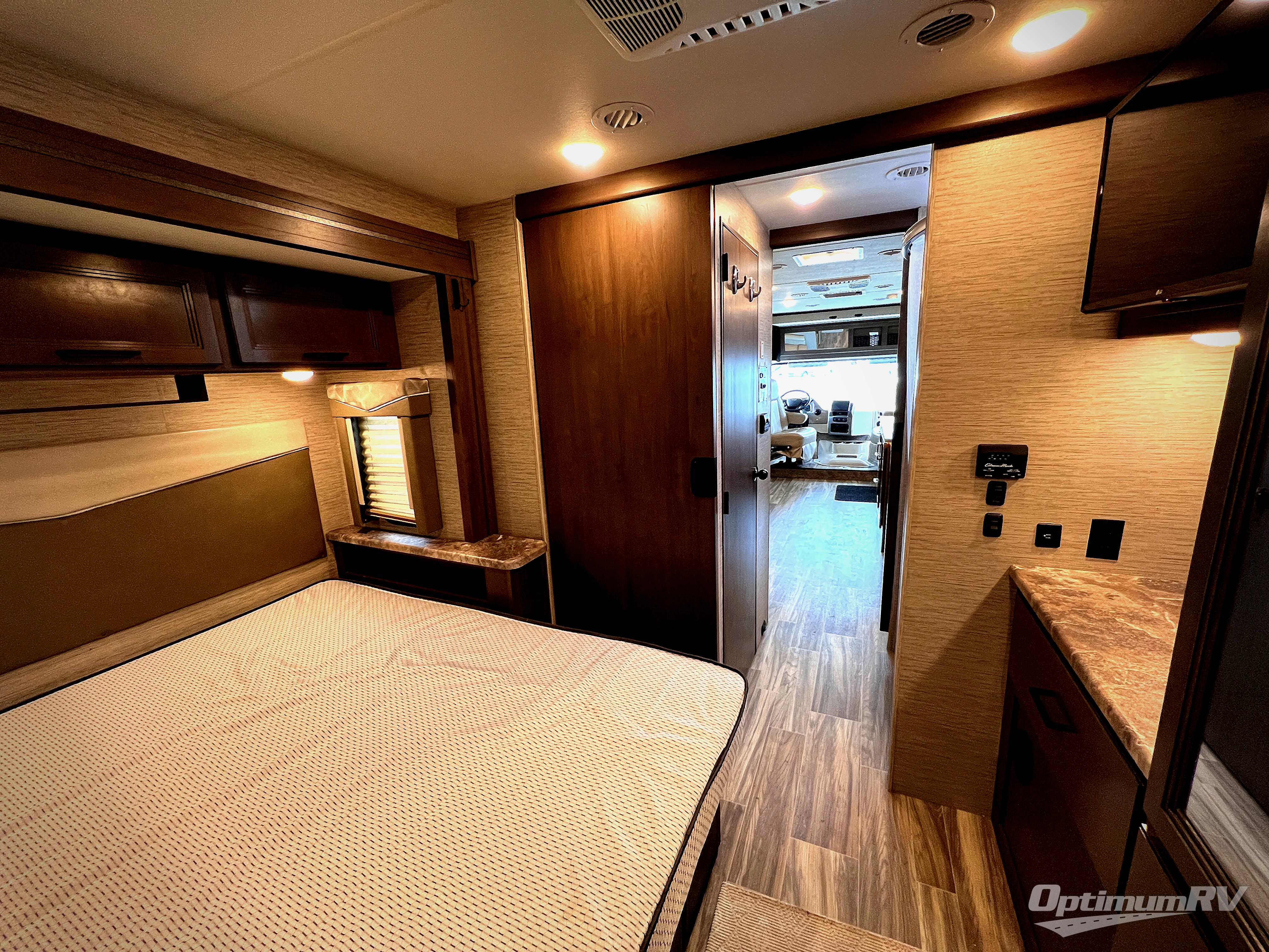 The A.C.E Class A gas motorhome is constructed with a welded tubular steel floor, vacu-bond laminated roof, walls and floor with block foam insulation, and a premium one-piece exterior roof for a coach made to last. You will love the pet-friendly features, like the Bird's Eye window, the Pet-Link multi-purpose tie-down and the Pull-Out Kibble Station with an FDS approved pet bowl liner. Each model includes an Onan RV QG 4,000 gas generator, a Winegard ConnecT Wi-Fi extender +4G, and are pre-wired for solar charging. Some of the other convenient amenities you will find on the A.C.E are frameless windows, a basement pass-through storage, and an exterior LP connection. Head inside to find residential vinyl flooring, pressed laminate countertops, glass tile backsplash in the kitchen, and a designer headboard, bedspread and pillow shams in the bedroom for all-around comfort!