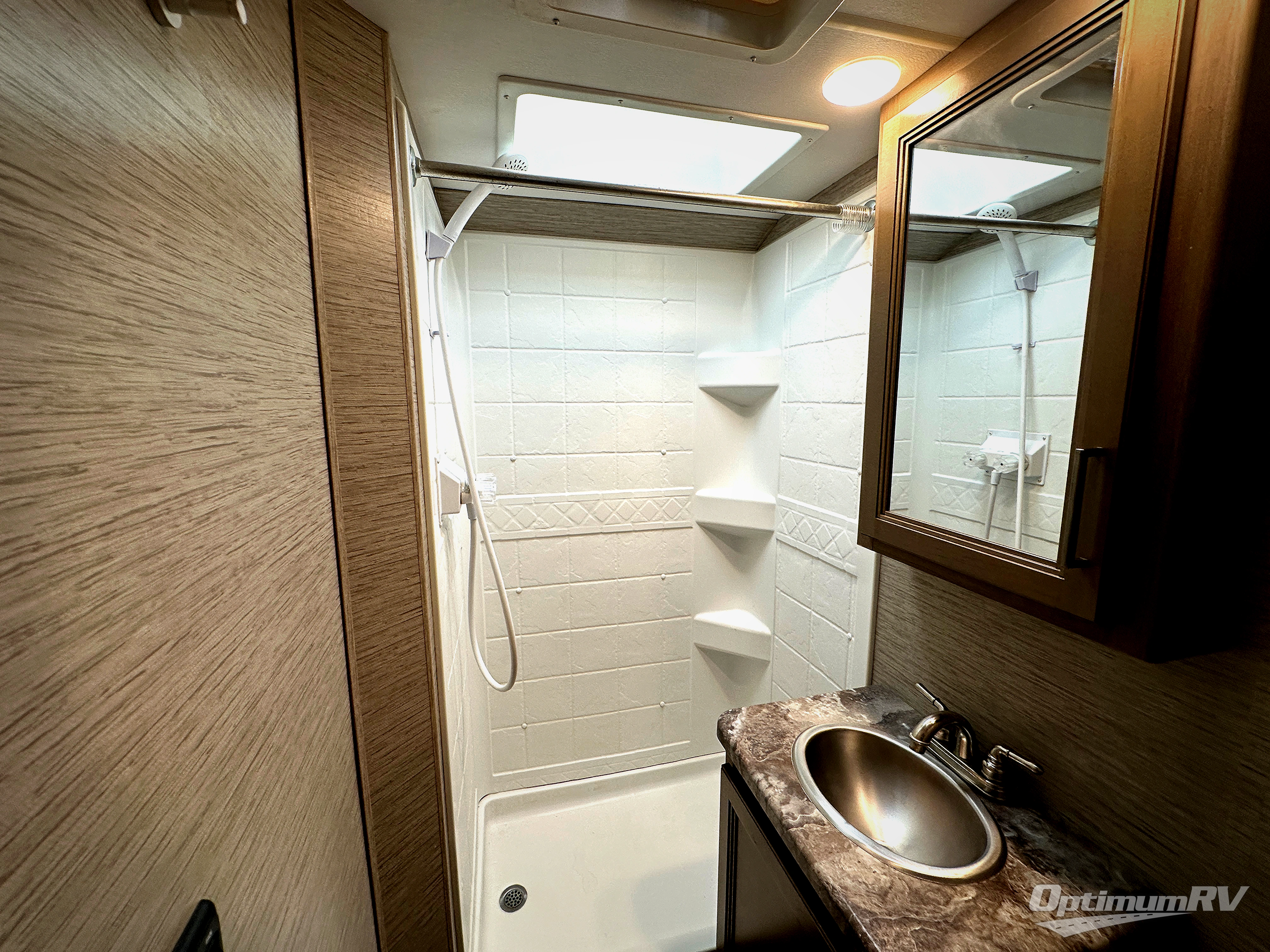 Pack your bags and fuel up this motorhome for a great adventure! Start each morning feeling recharged after sleeping on the corner 54" x 80" queen bed or the 54" x 96" bunk over cab then freshen up in the rear corner bathroom with the 24" x 36" shower. Grab some eggs from the double door refrigerator, fry them up on the three burner cooktop, and set your cup of coffee on either the flip-up countertop or the 76" dream dinette which can also transform into an extra sleeping space. You can choose to add an optional exterior 32" TV but you also have a standard 39" TV with swivel by the bunk over cab for your entertainment needs!