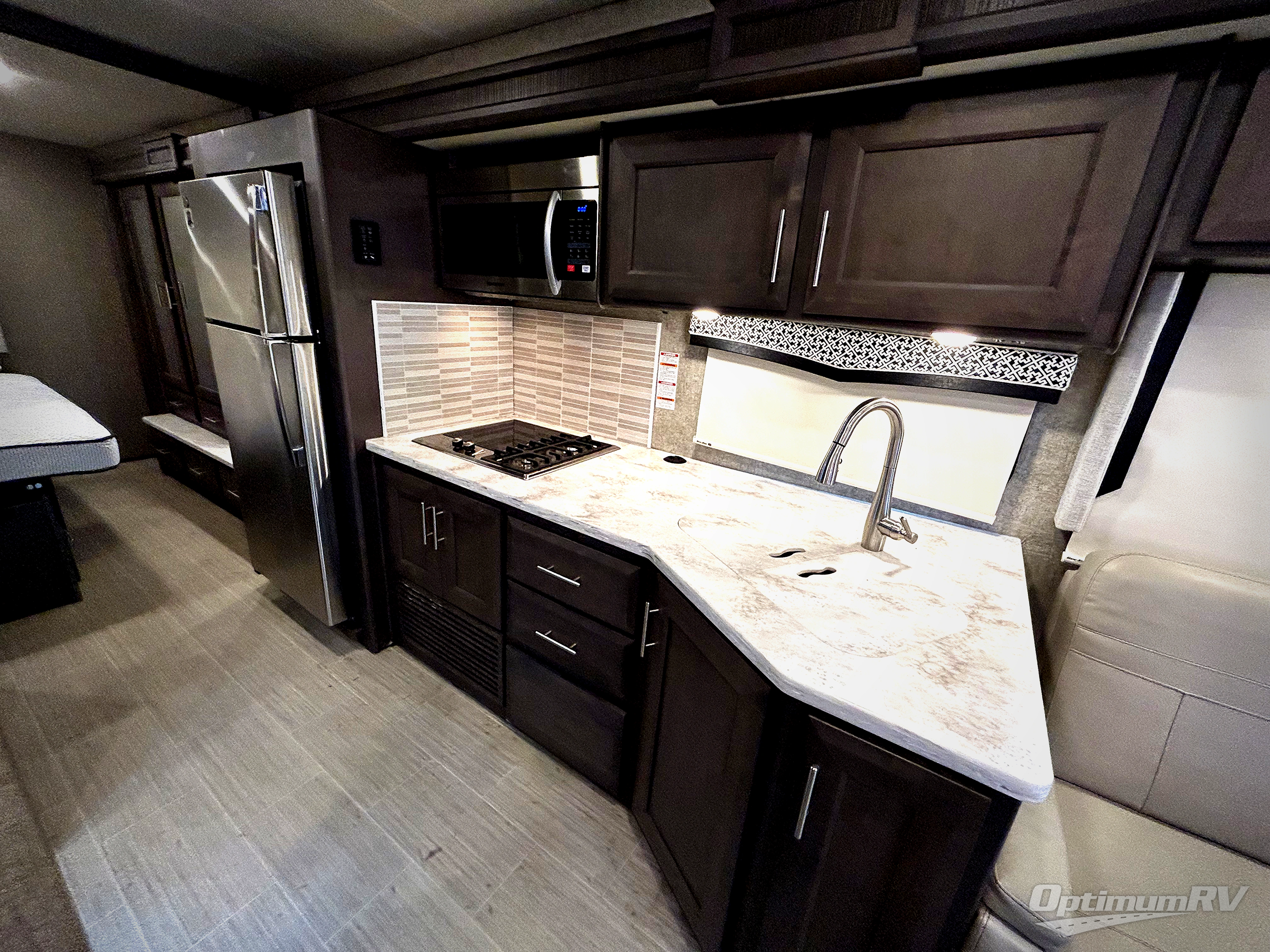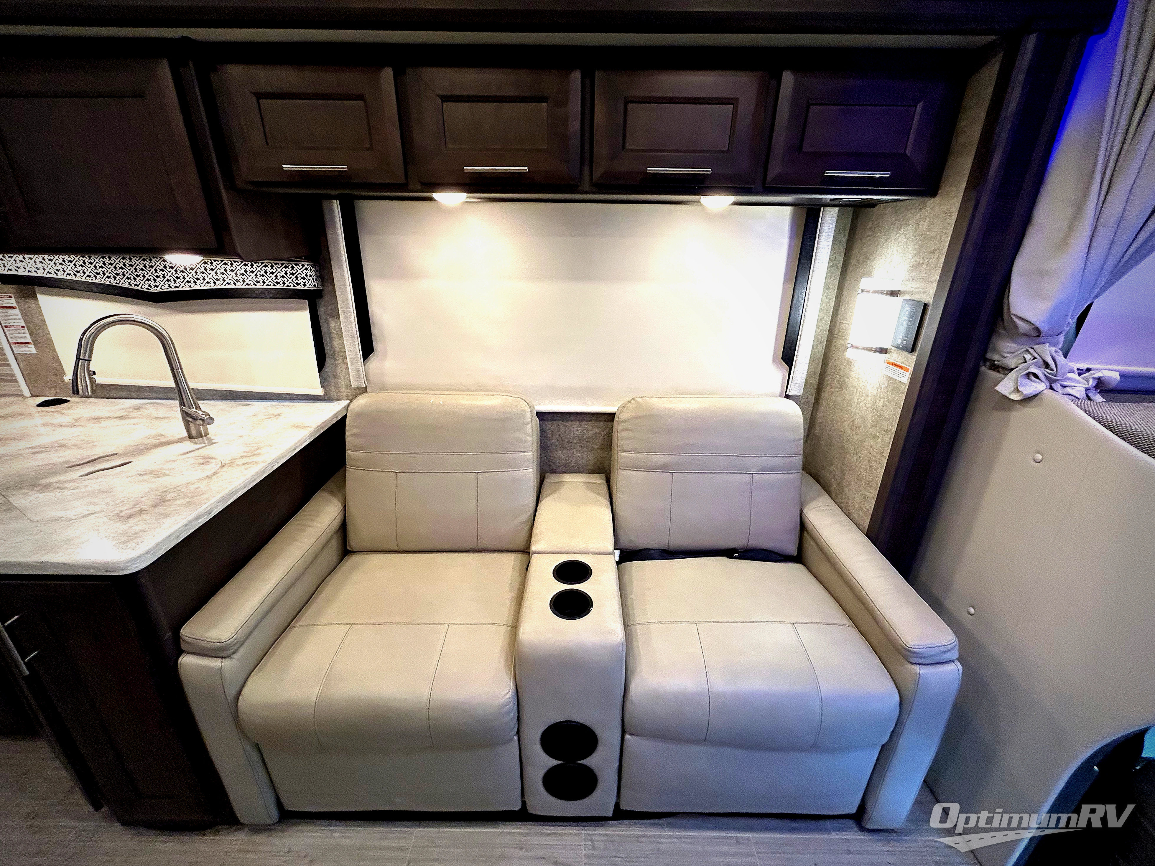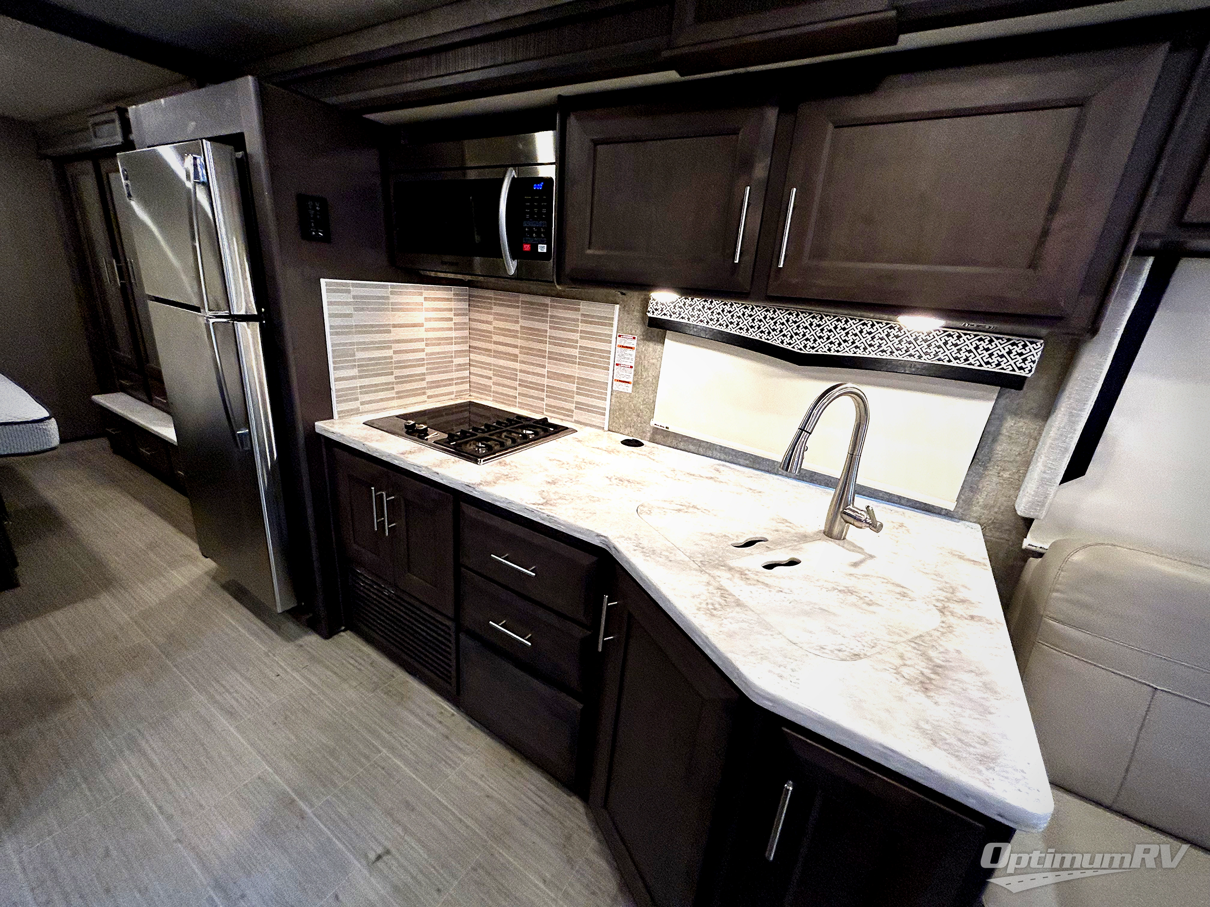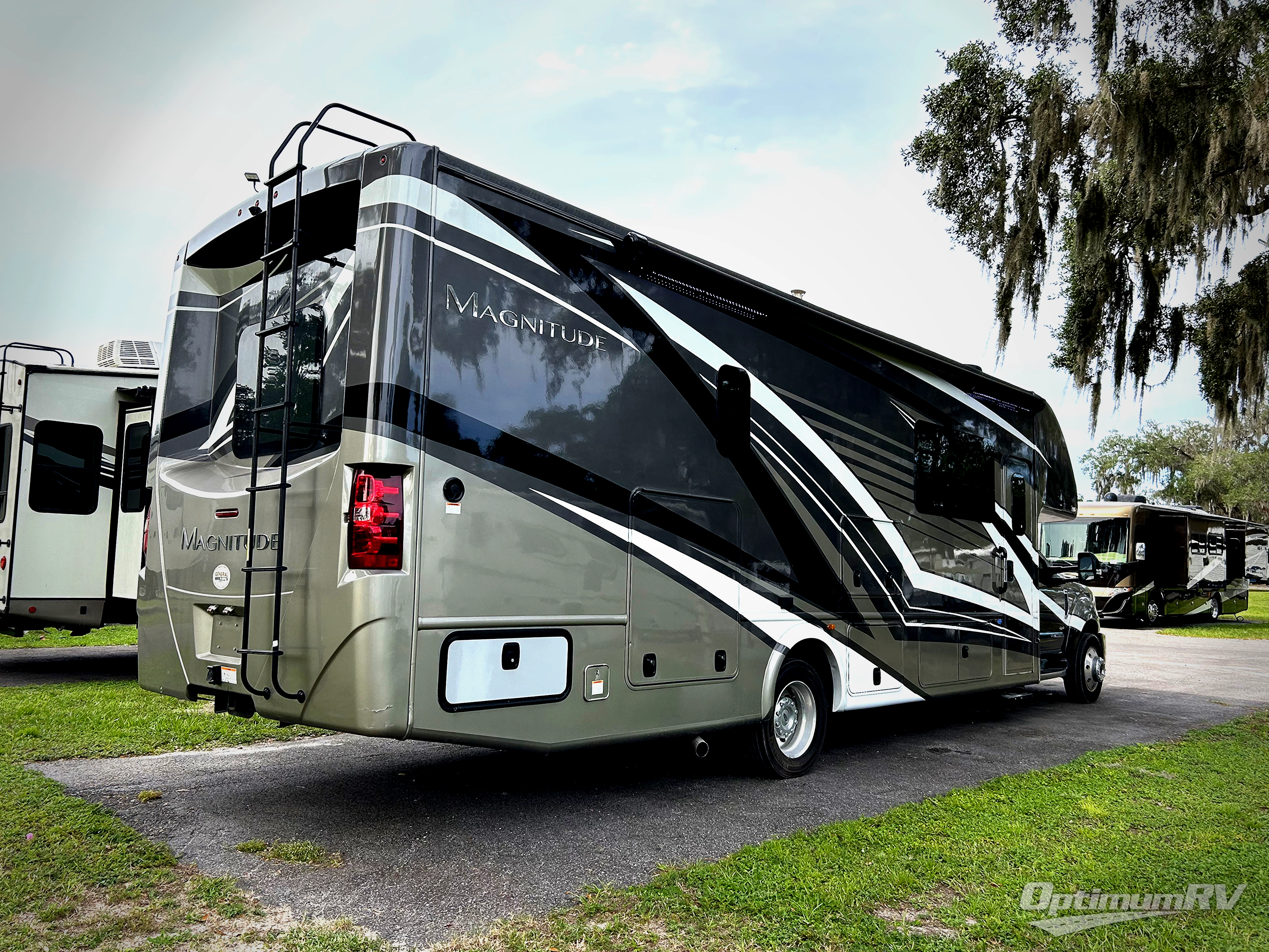 When you're ready to upgrade your RV, choose this Magnitude Super C diesel motorhome for a truly comfortable unit! The driver is sure to love the four-wheel drive. After you've arrived at your destination, you can prepare lunch on the two-burner gas range with single induction cooktop, or make something quick in the convection microwave. Your kids or guests can climb up into the 59" x 80" bunk over the cab and watch a movie on the 39" TV that also swivels for when the whole family wants to watch a show. This unit includes a rear bedroom with a Tilt-A-View inclining RV king bed and 32" TV, and the full bath is ready when you are since the tankless water heater provides hot water wherever you go.