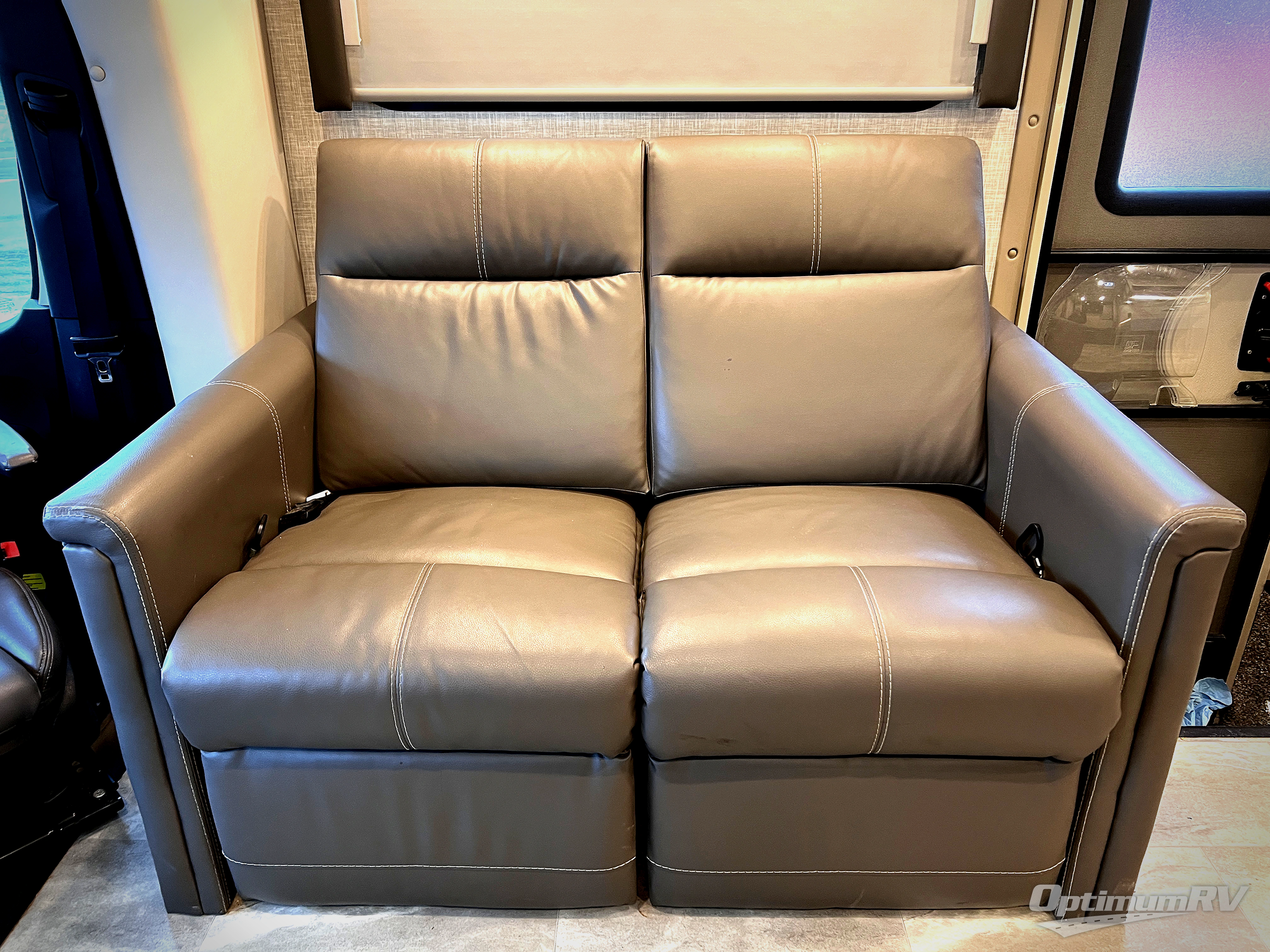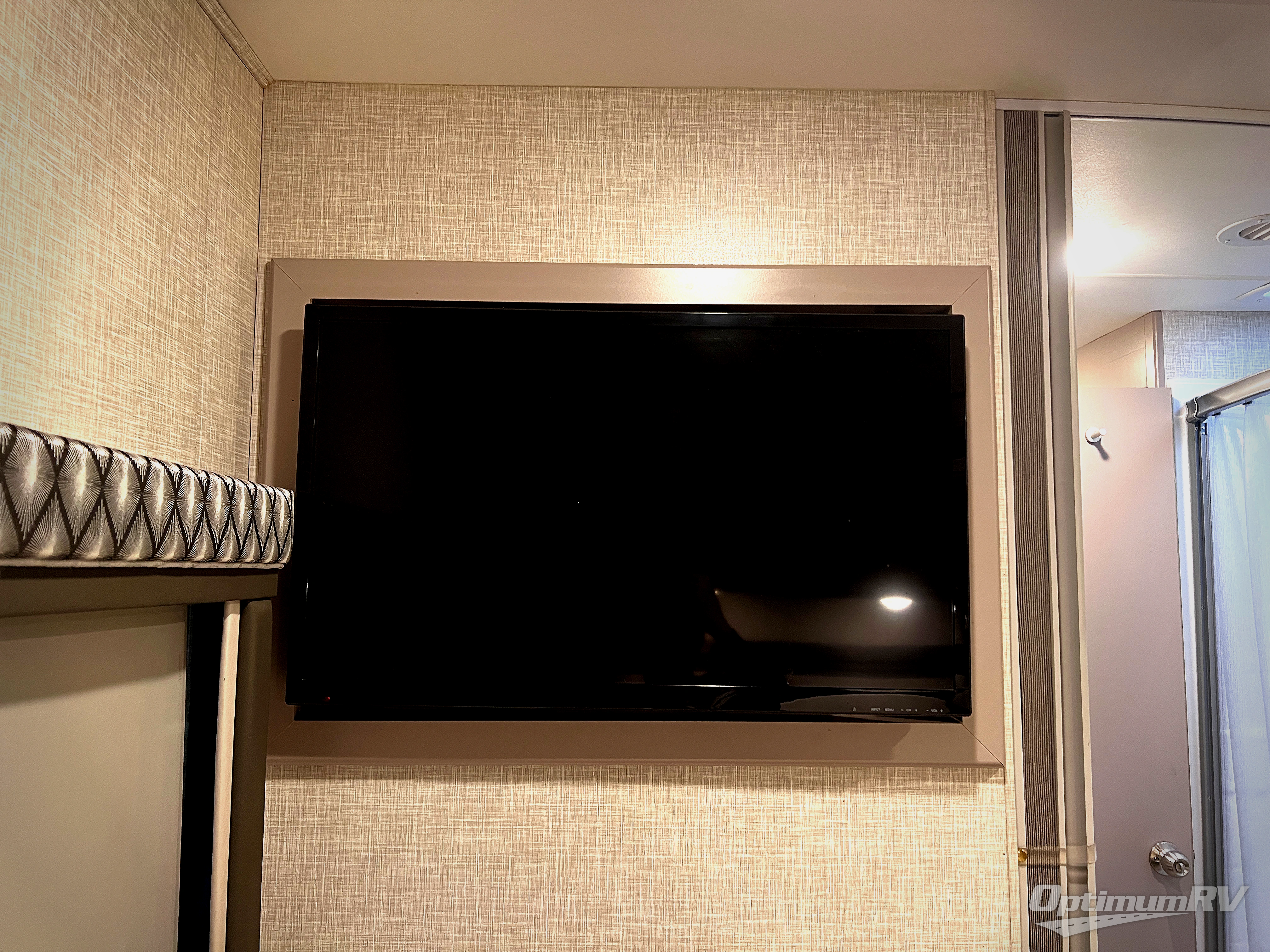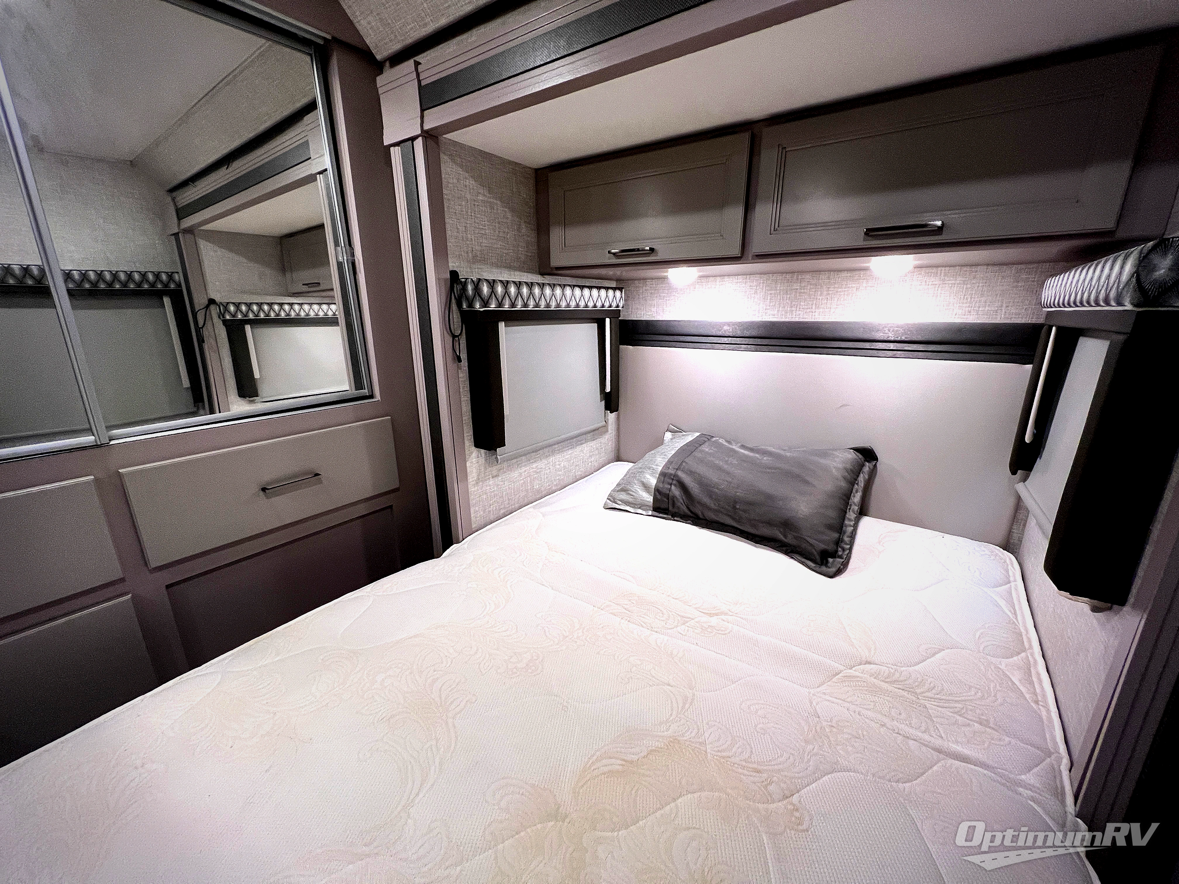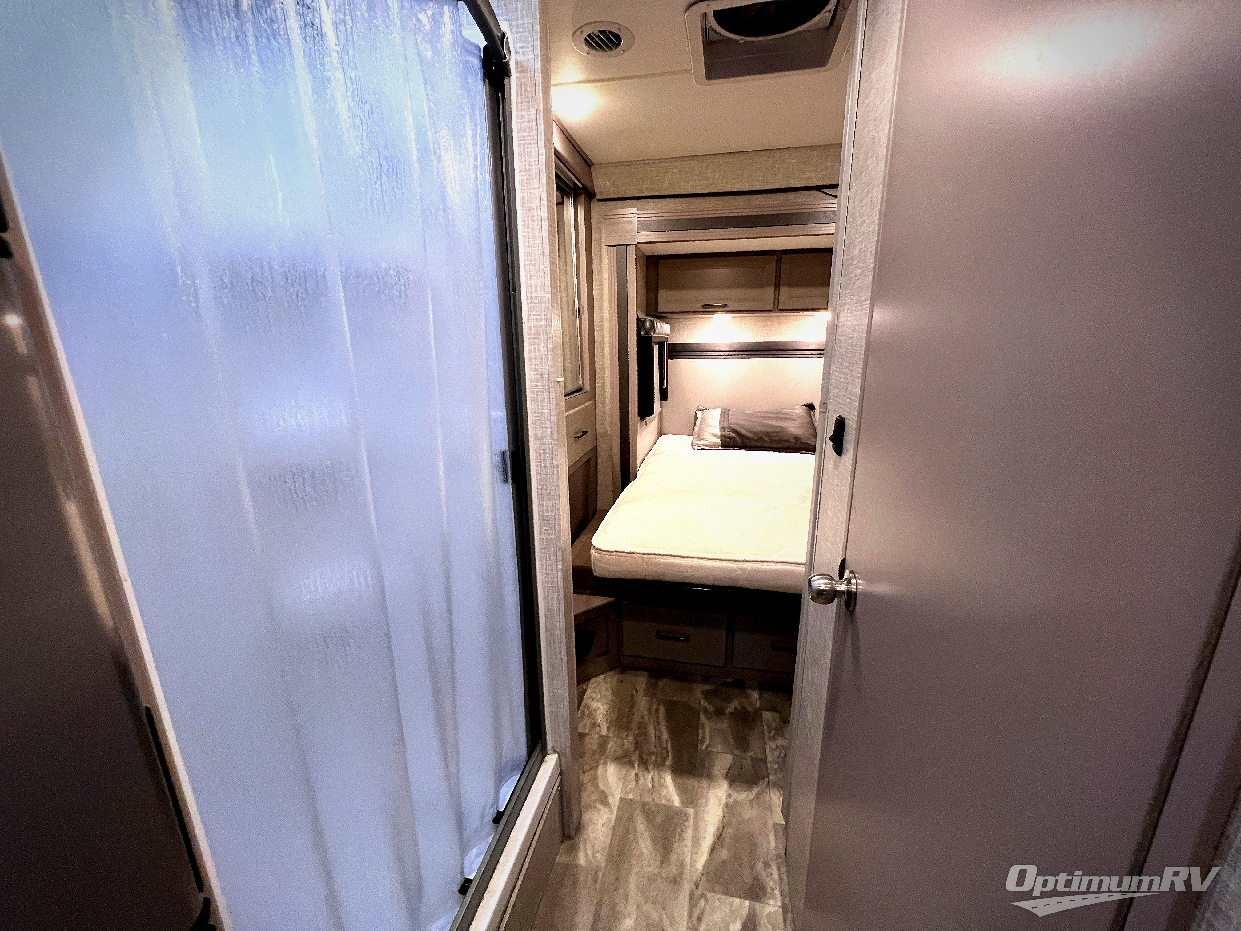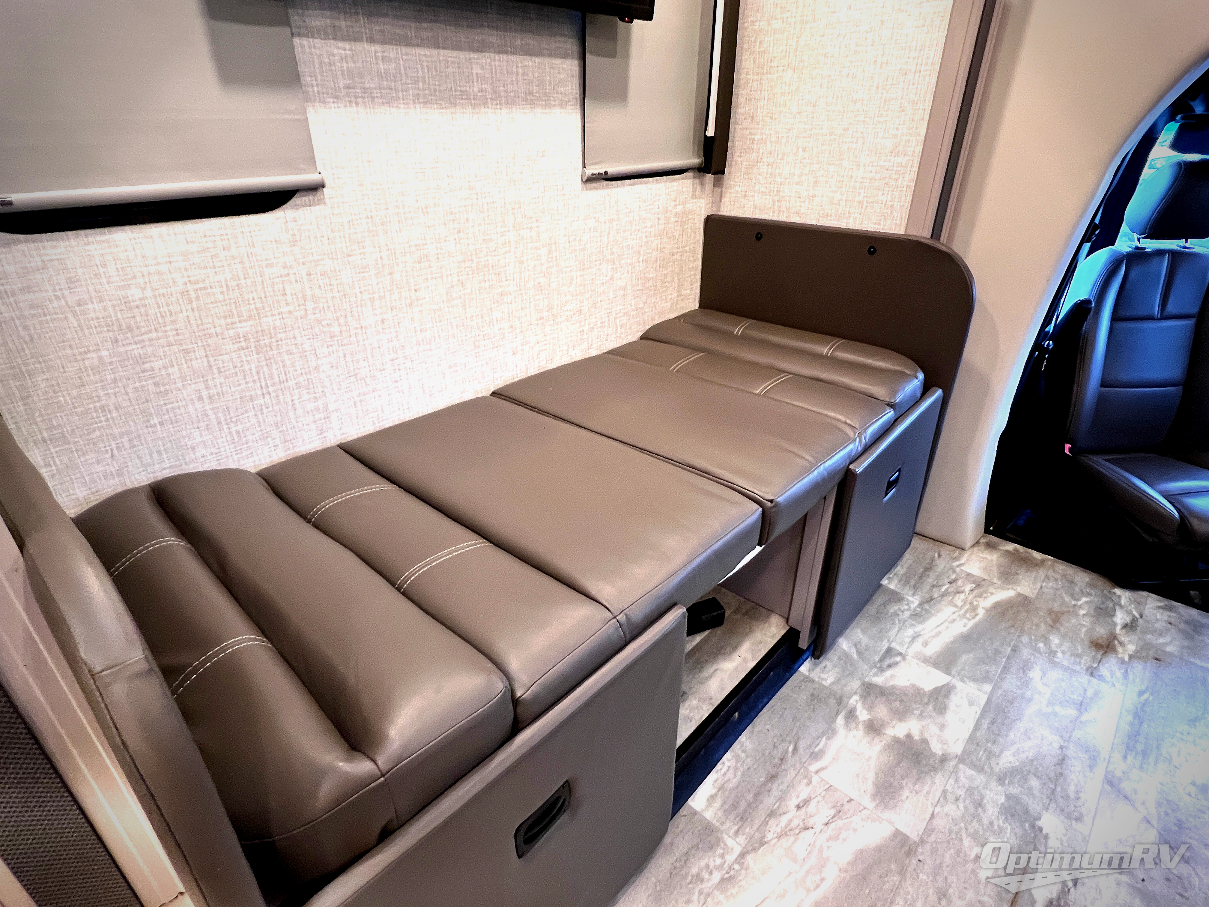 It won't take long to feel right at home in this cozy motorhome. Once you arrive at your destination, you can swivel your captain's seats around to the living area, and enjoy a cold drink with the removable cockpit table. There is also theater seating with footrests and a 39" TV in perfect view so you can watch your favorite movies. The chef of your group can prepare lunch on the two burner gas cooktop, while someone else is preparing a fresh salad on the flip-up countertop. This model includes a booth dinette to dine at each day, or you can take your plate outdoors to sit under the 14' power awning. The private toilet and sink with the shower across the hall allow two people to fresh up at once, and this model includes a rear bedroom you are sure to love. Here, you can rest soundly on the full-size bed, watch a late-night movie on 32" bedroom TV, and store your clothes in the large closet!