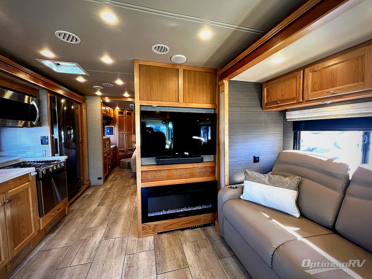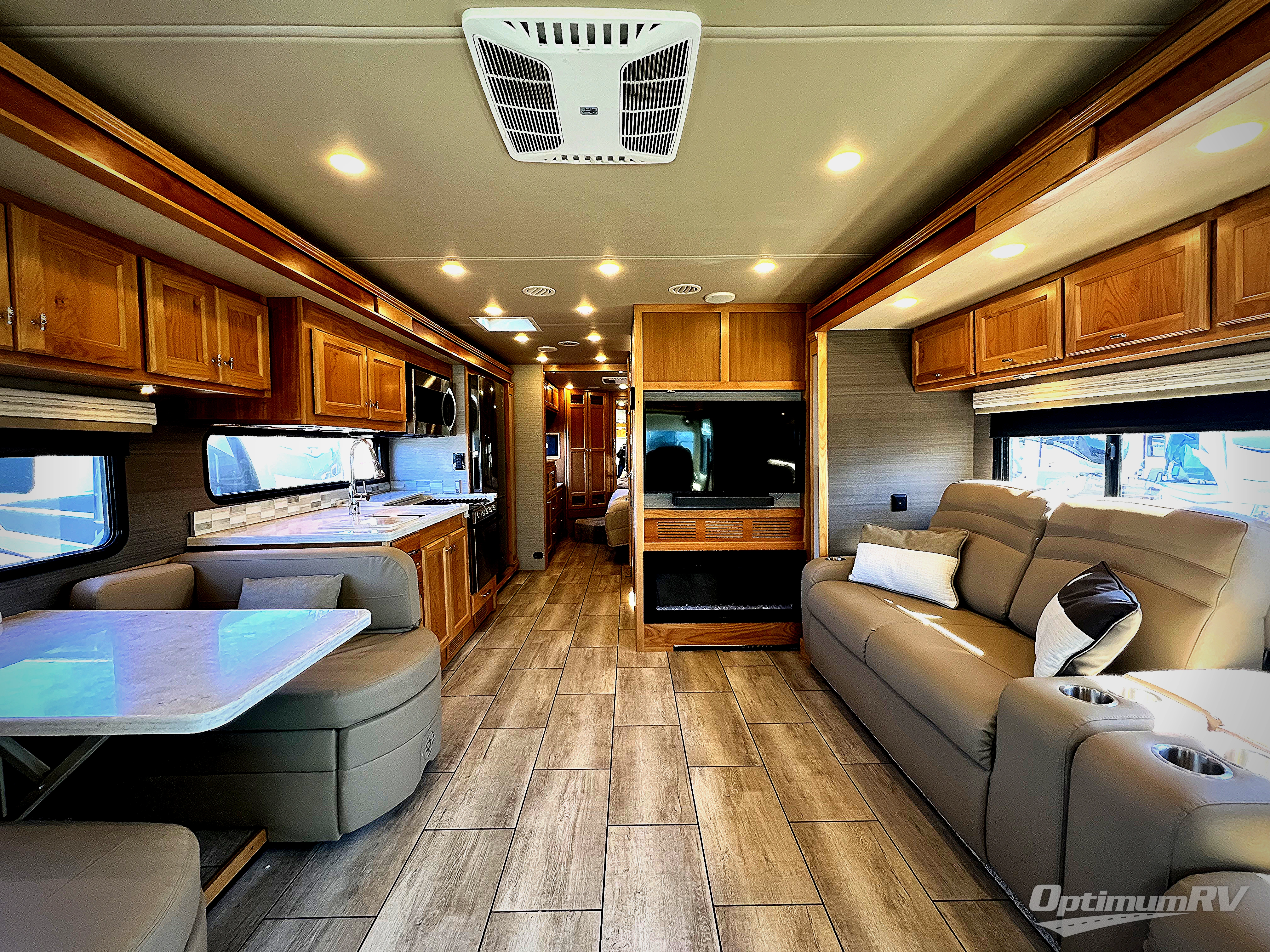 If you're ready to hit the road, the Tiffin Motorhomes Allegro RED 340 Class A diesel motorhome is ready to help you! These luxurious coaches offer you some of the best features available. Everything is built on a straight rail chassis frame with collision mitigation with forward warning and active braking, electronic stability control with roll stability support, automatic traction control, air ride suspension, and full air brakes. Some of the noteworthy plumbing and electrical features are the 8.0kW Onan generator, Truma gas continuous water heater, Spyder multiplex system, and four 6V house batteries. You can create more luxury by adding the optional in-motion satellite, and the driver's compartment has an in-dash navigation system to keep you on track while you travel to that unfamiliar destination. The interior is completely stylish with its Ultraleather furniture and luxurious vinyl floor tile, and you can also add an optional fireplace for more elegance.