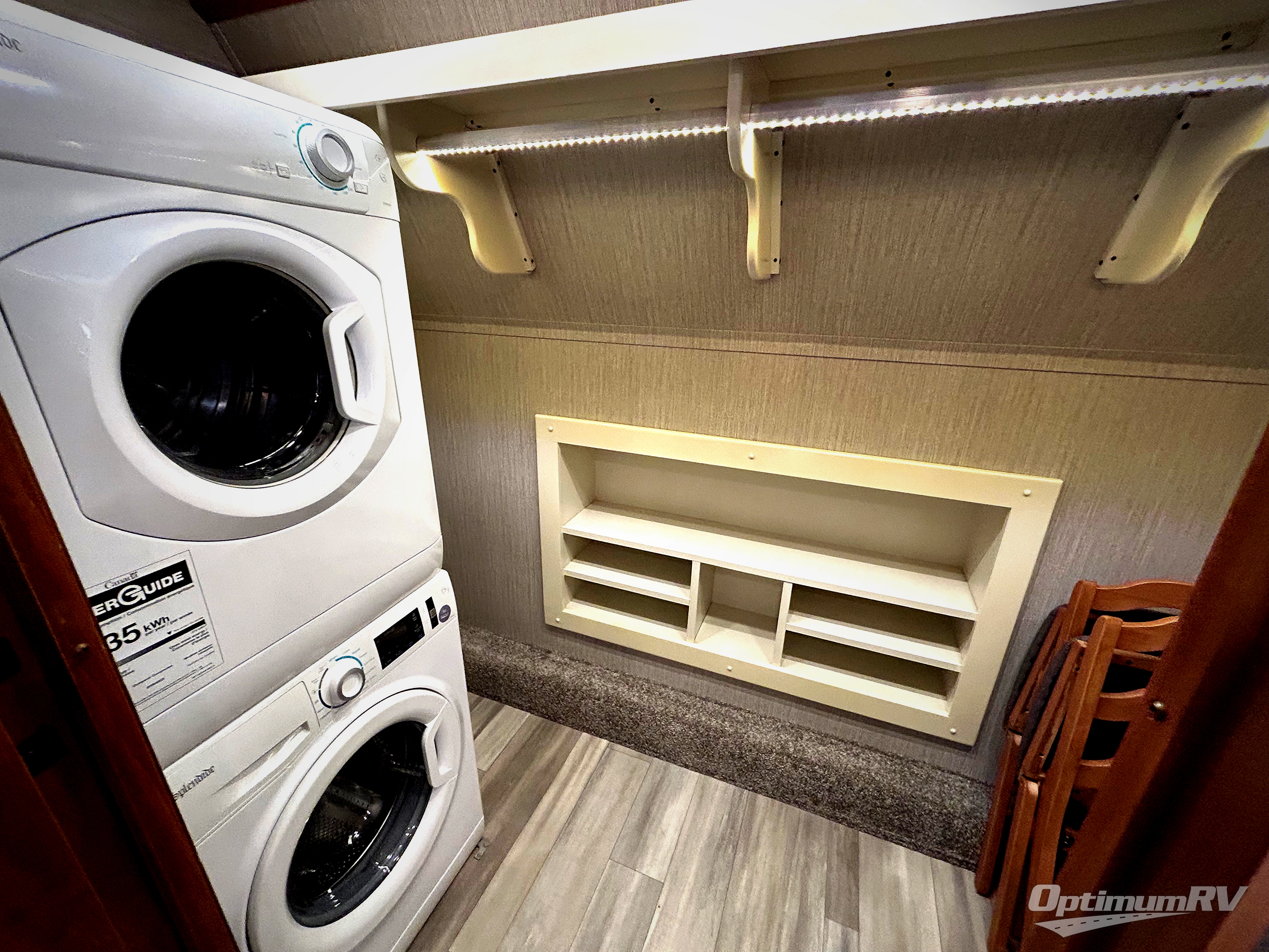 Your family vacations just got a whole lot sweeter in this fifth wheel that can sleep four people each night. Once you arrive at the campground, put out the four slides, then enjoy lunch on the dinette with chairs. The dual opposing slides here will let the kids play a board game on the floor if they want, and you and your spouse can relax on the theater sofa. Prep and cook all your meals in the rear kitchen that includes ample counter space, an Insignia oven and cooktop, plus an optional dishwasher to make cleaning up easier than ever. The master bedroom includes sliding doors to save on space, a king bed, plus a bedroom fireplace for a cozy evening indoors. You will love the front bath with its dual bath sinks, spacious shower with a Teak Wood seat, plus a large front closet with tons of storage space. This model also includes a convenient half bath for your guests, now that's what I call luxury!