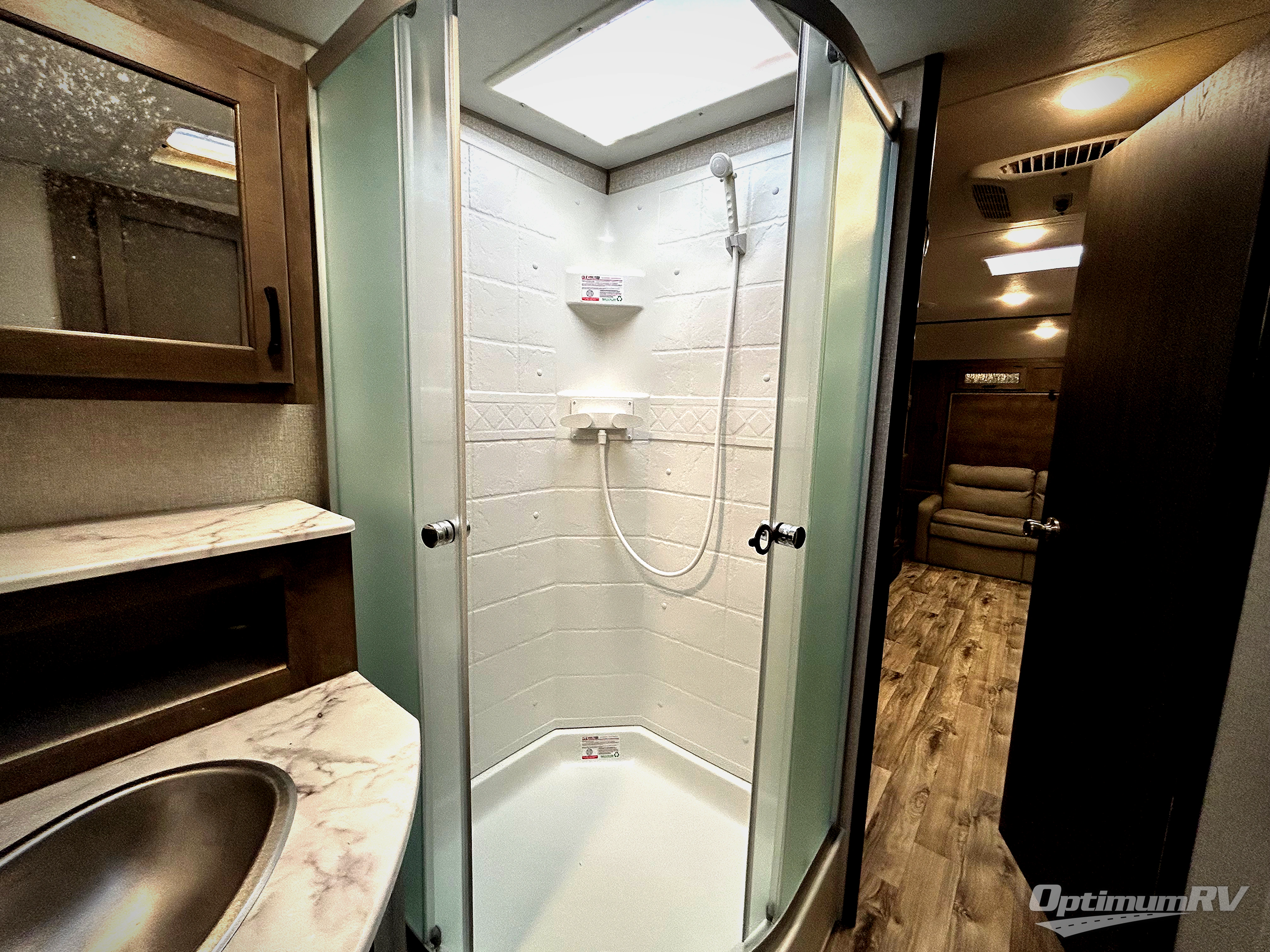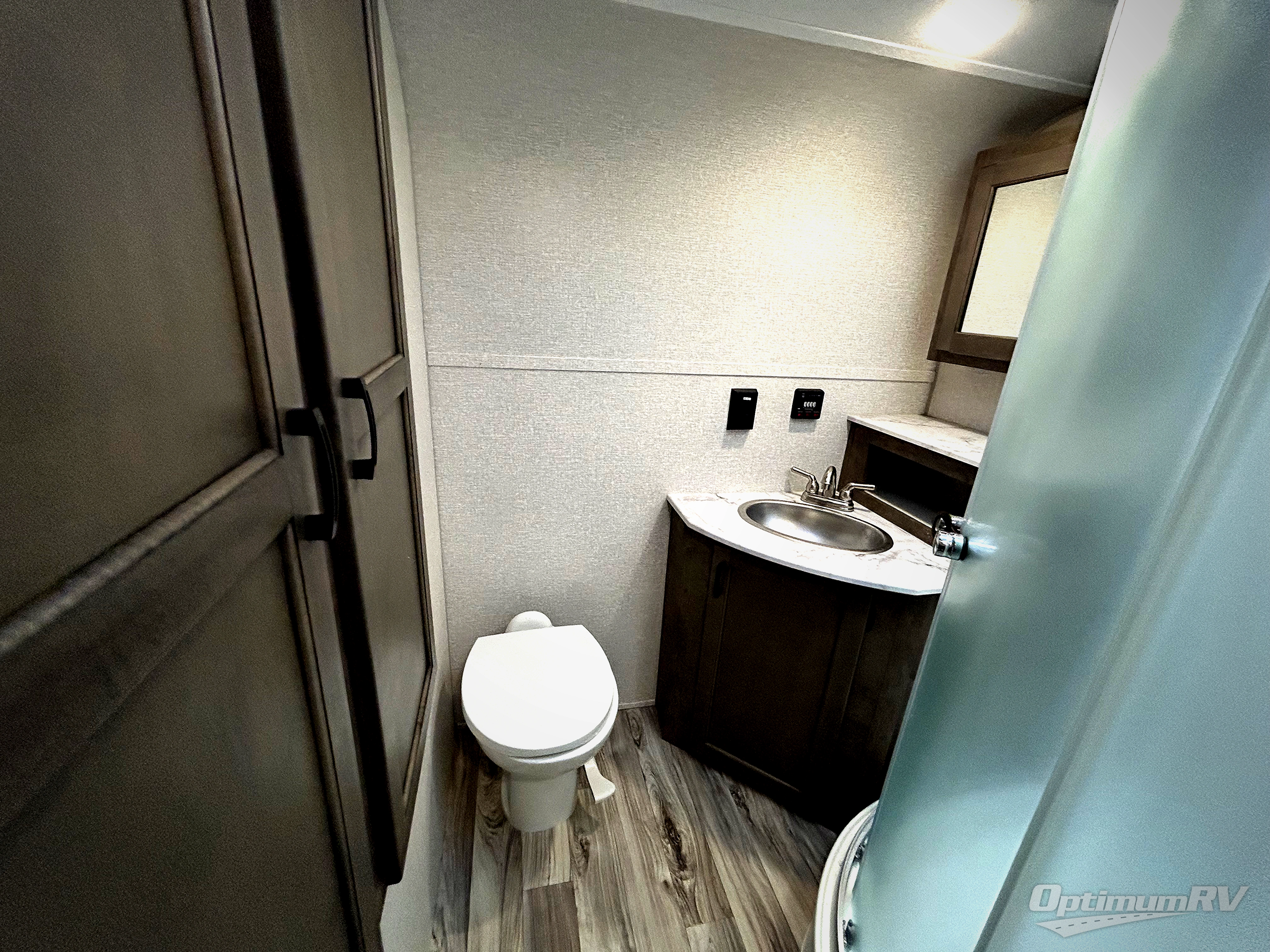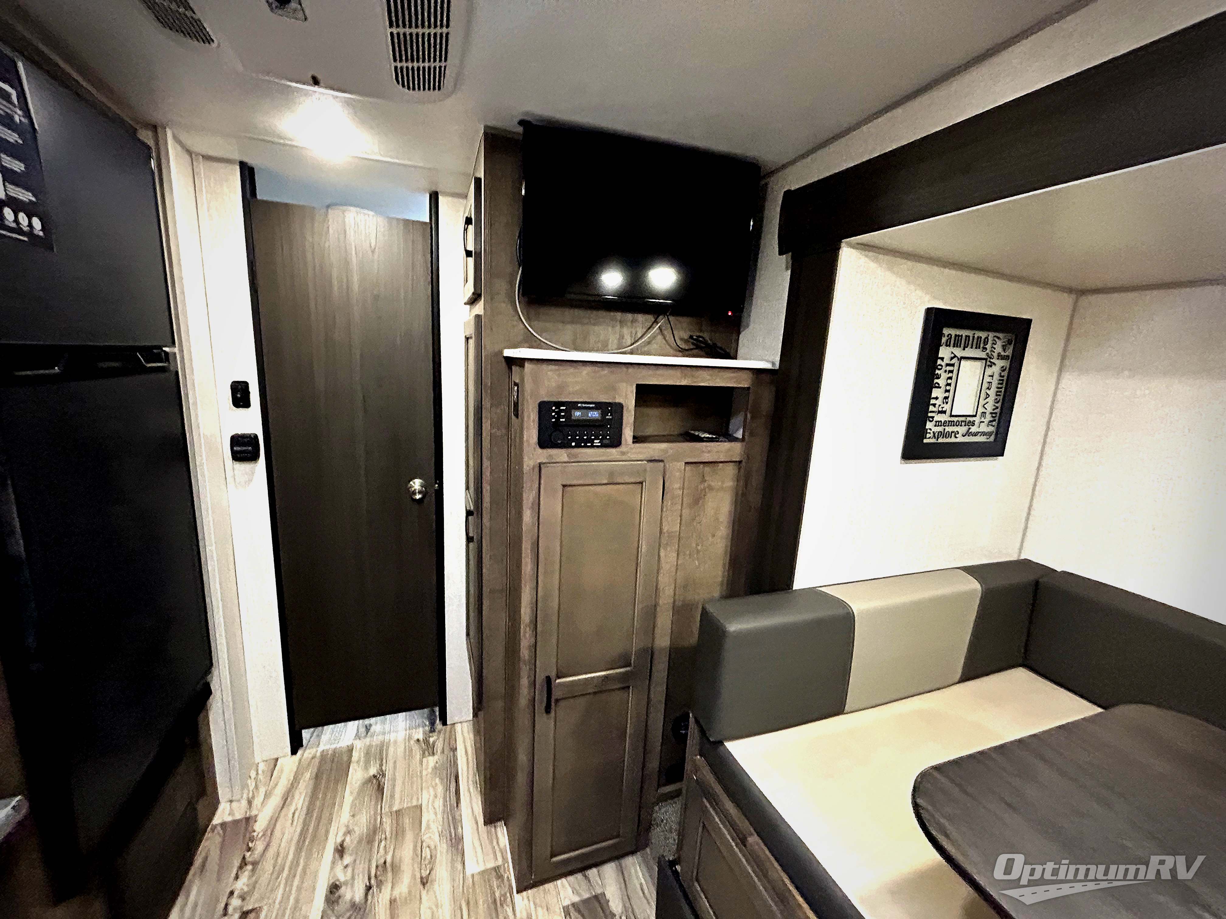 A cook will love this trailer with the choice to make meals inside with full amenities including an 8 cu. ft. refrigerator and a pantry, or outside while using the campfire cafe which offers a griddle and refrigerator, plus counter space to prepare and serve meals. There is sleeping space for four when you utilize the U-shaped dinette slide out that also provides more interior floor space along with the versatile Murphy bed and sofa up front. You will also find a privacy curtain that will section off this area that also features StorMore bedside nightstands with a 110V outlet and USB charging, and two wardrobes.
