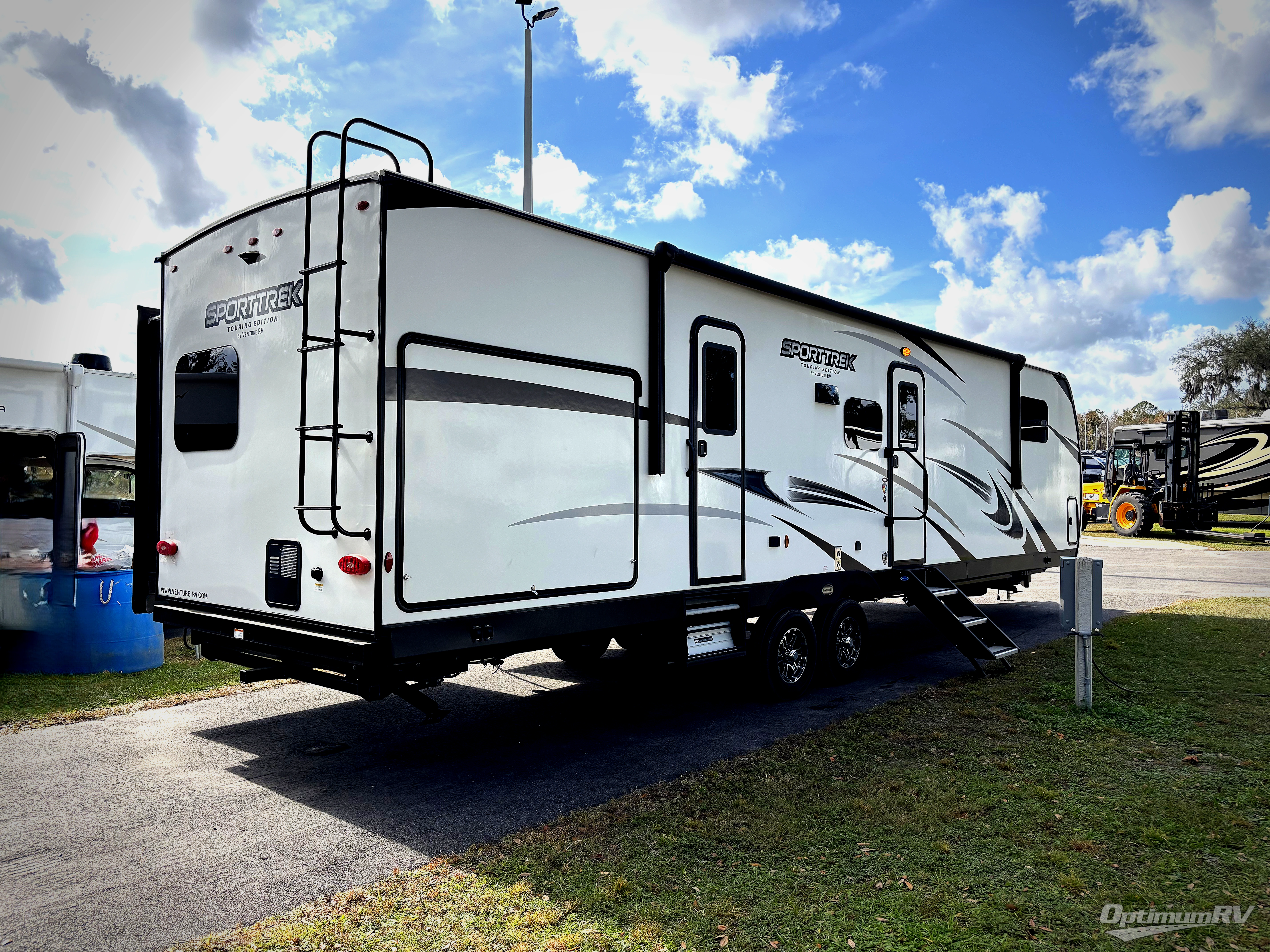 An elegant design and new features come with every one of these Venture RV SportTrek Touring Edition travel trailers! The NXG Huck bolt frame holds these units together and a walkable roof covers them. Heads will turn down the highway and at the campsite with an upgraded graphics package and a painted fiberglass front cap with integrated LED light. The exterior pass-through storage area has slam latch baggage doors with magnetic catches so you don't have to worry about them closing on you and a motion activated light to see your items clearly even at night. Luxury abounds throughout these units, especially with the mandatory Interior Luxury package which comes with washer and dryer prep (varies by model), two 30" frameless fireplaces, and Beauflor wood plank flooring that is easy to clean. Come find your favorite model today!