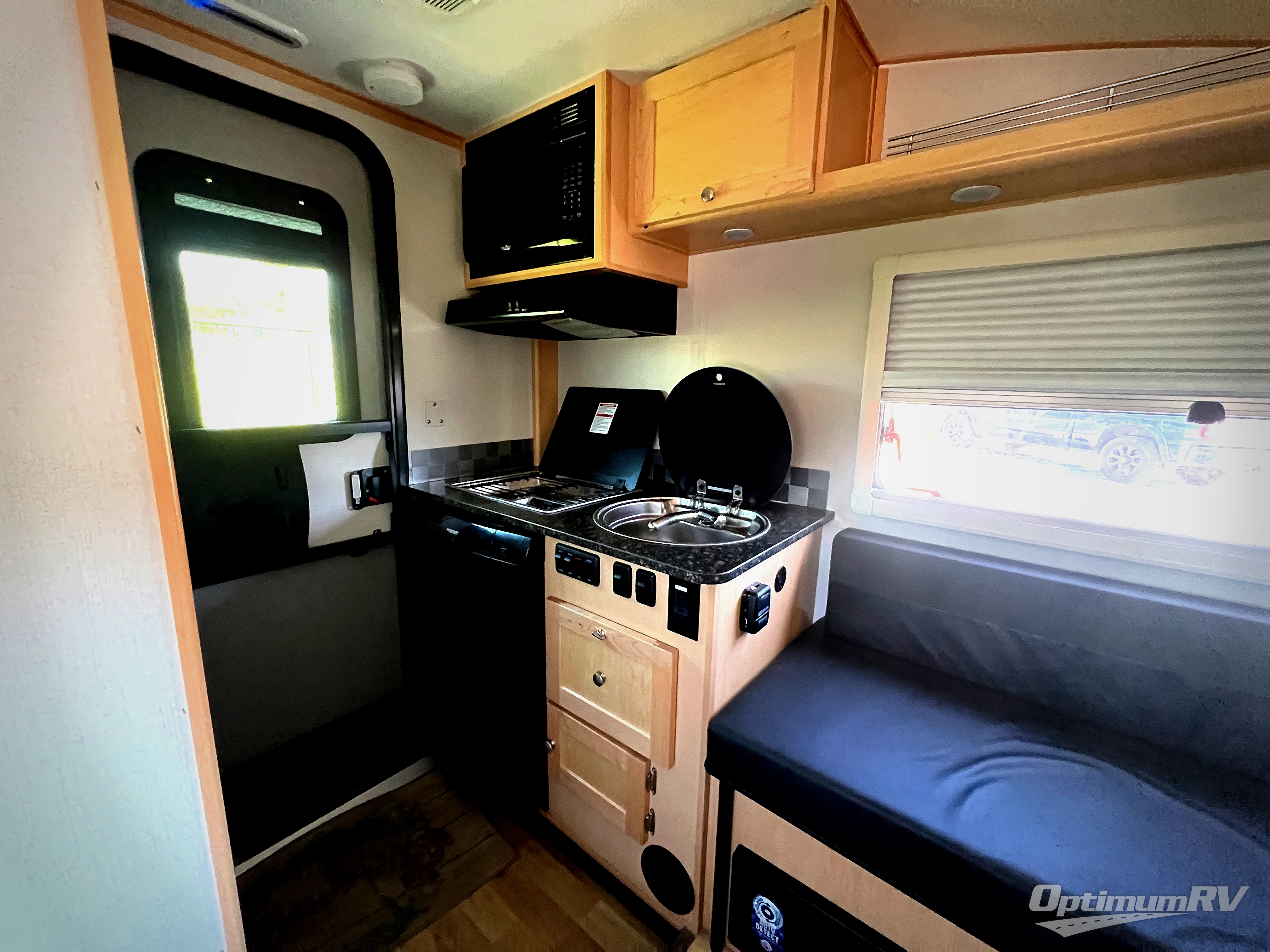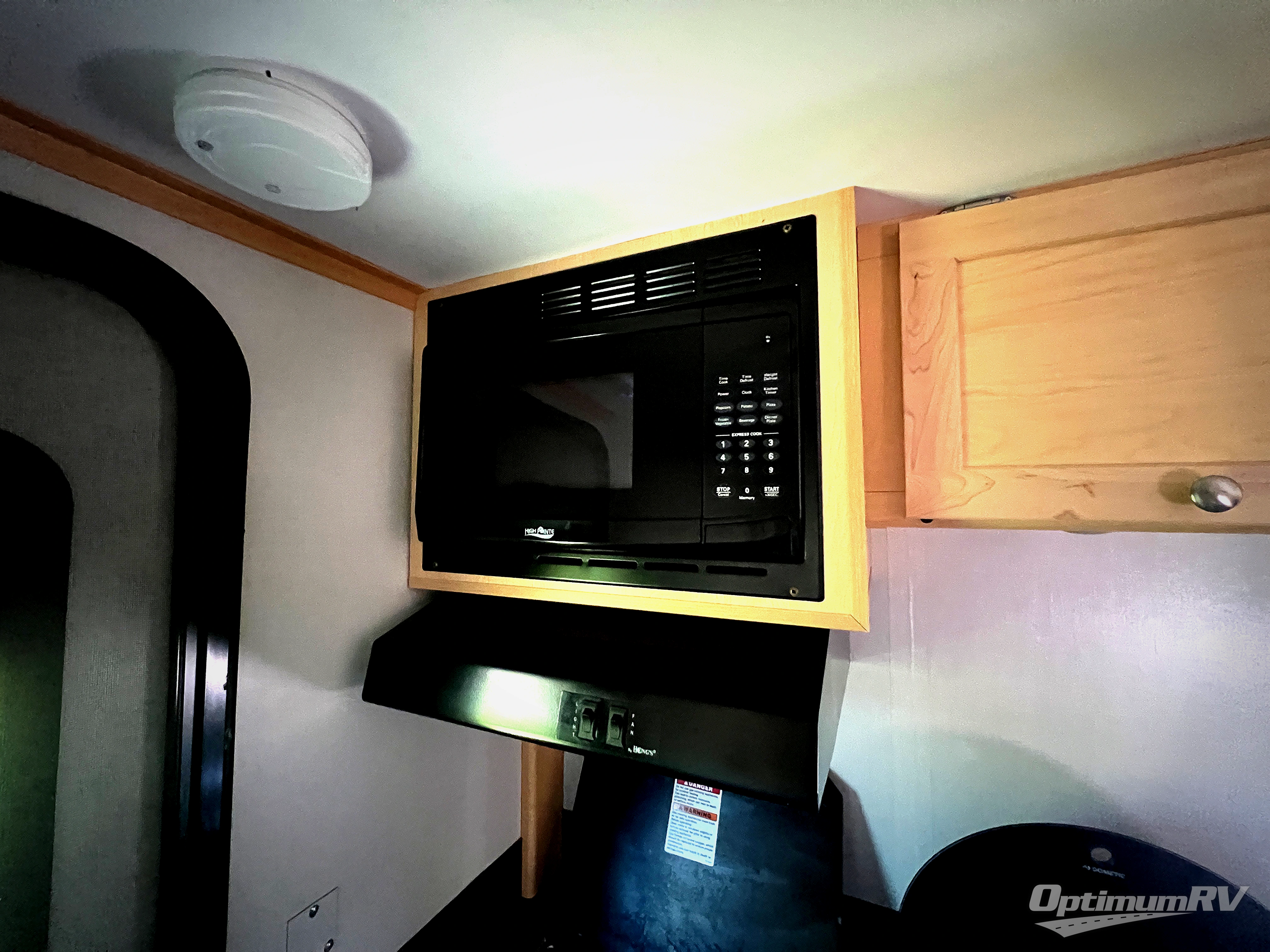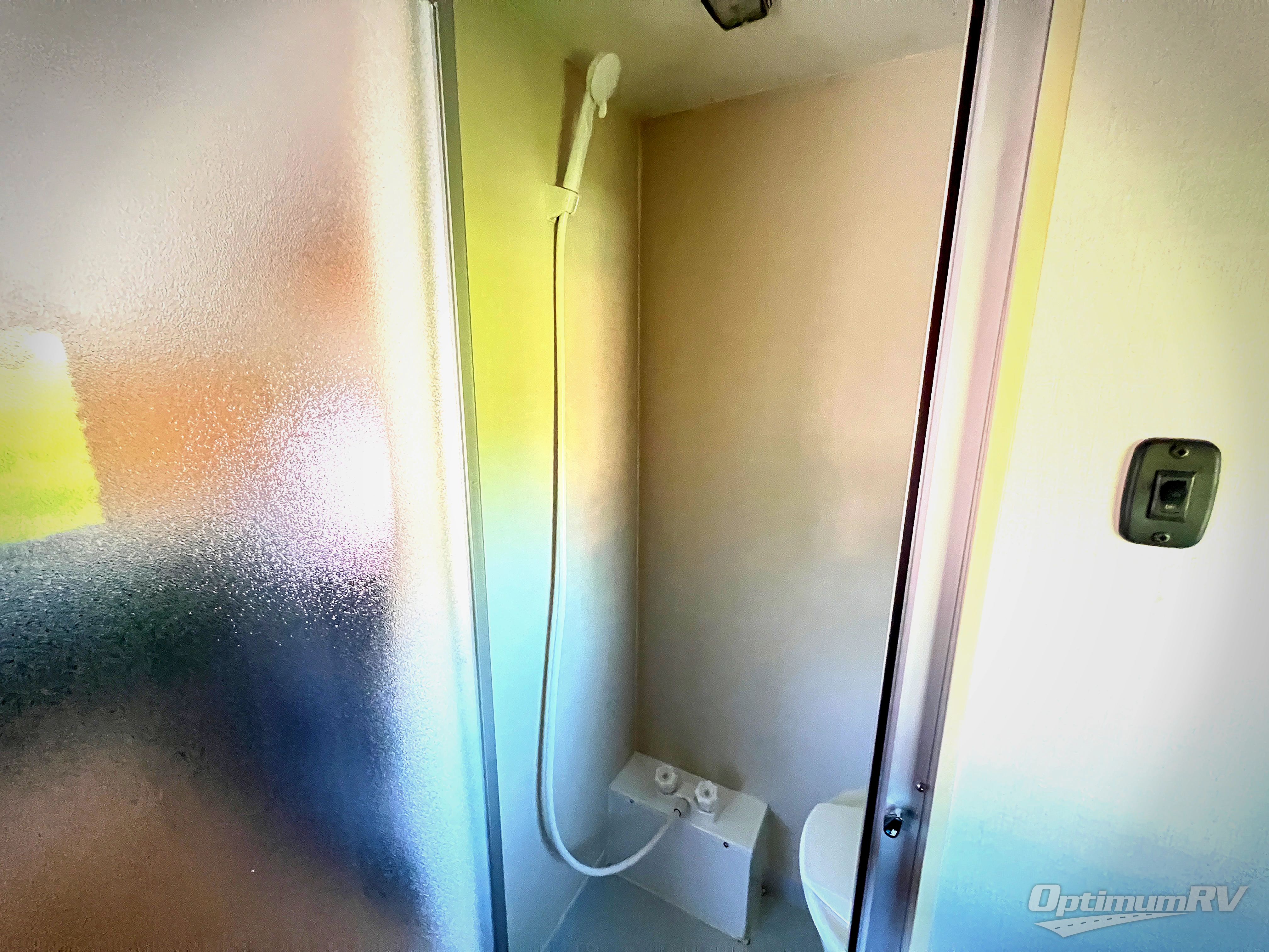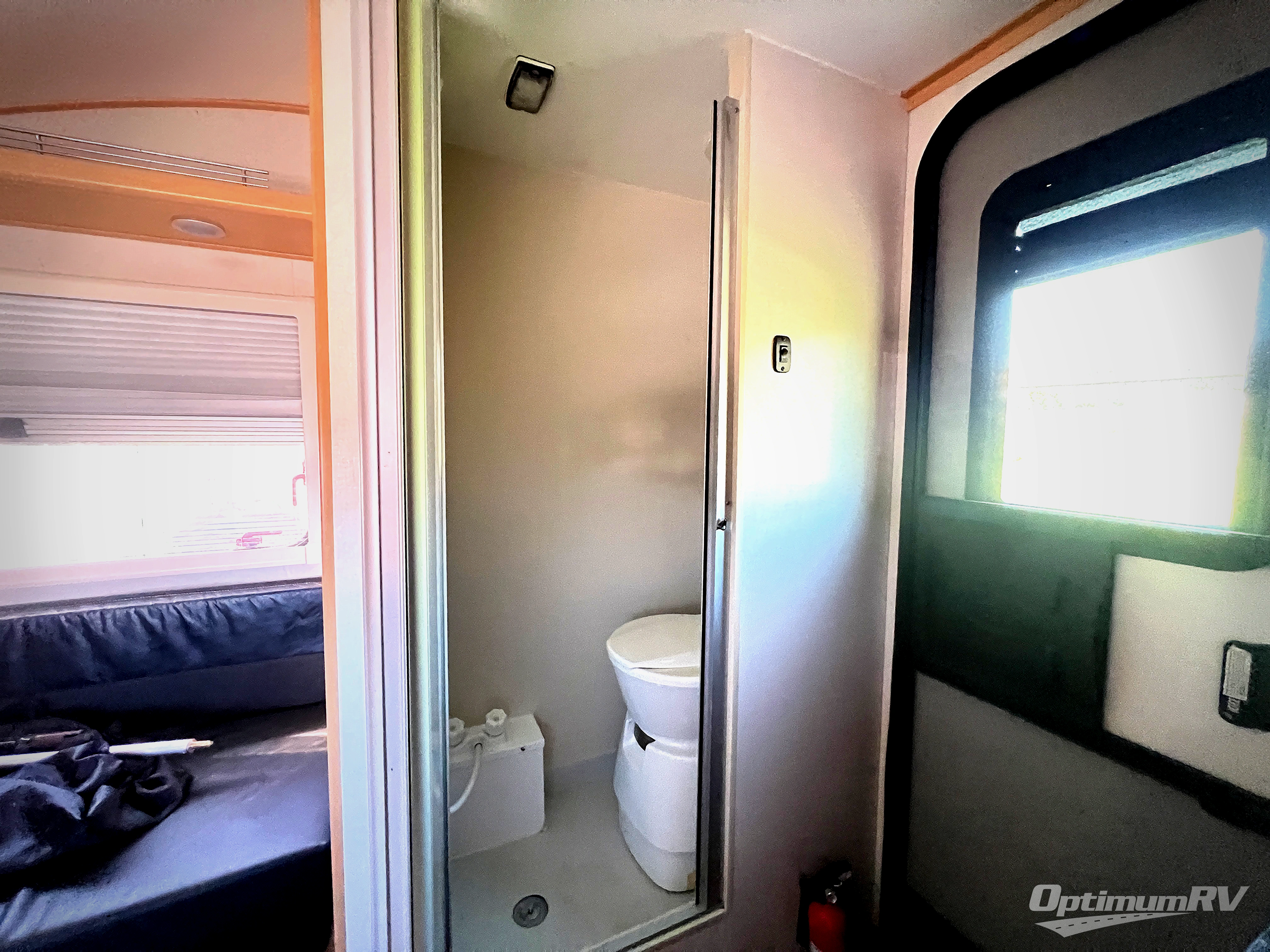 You'll love this travel trailer that features a little more interior space for a more at-home feel. There are two dinette seats with a table where you can dine each day, and this area can fold down to create a 72" x 77" bed size. You might even even want to watch movies in bed with the 23" flat screen TV! This model includes a cassette toilet so you don't have to use the camp's facilities in the middle of the night, and you can make breakfast on the two burner cooktop in the morning.