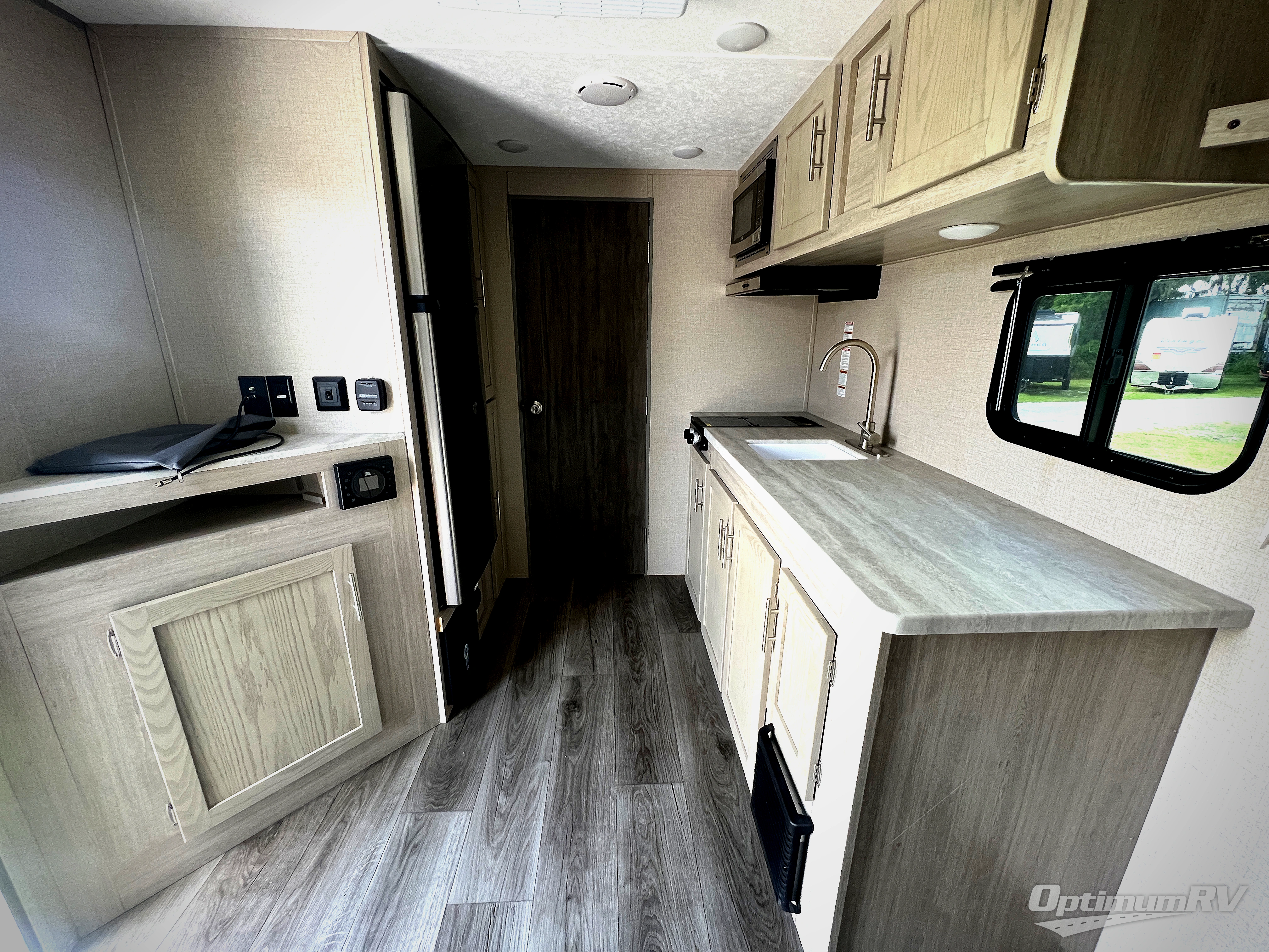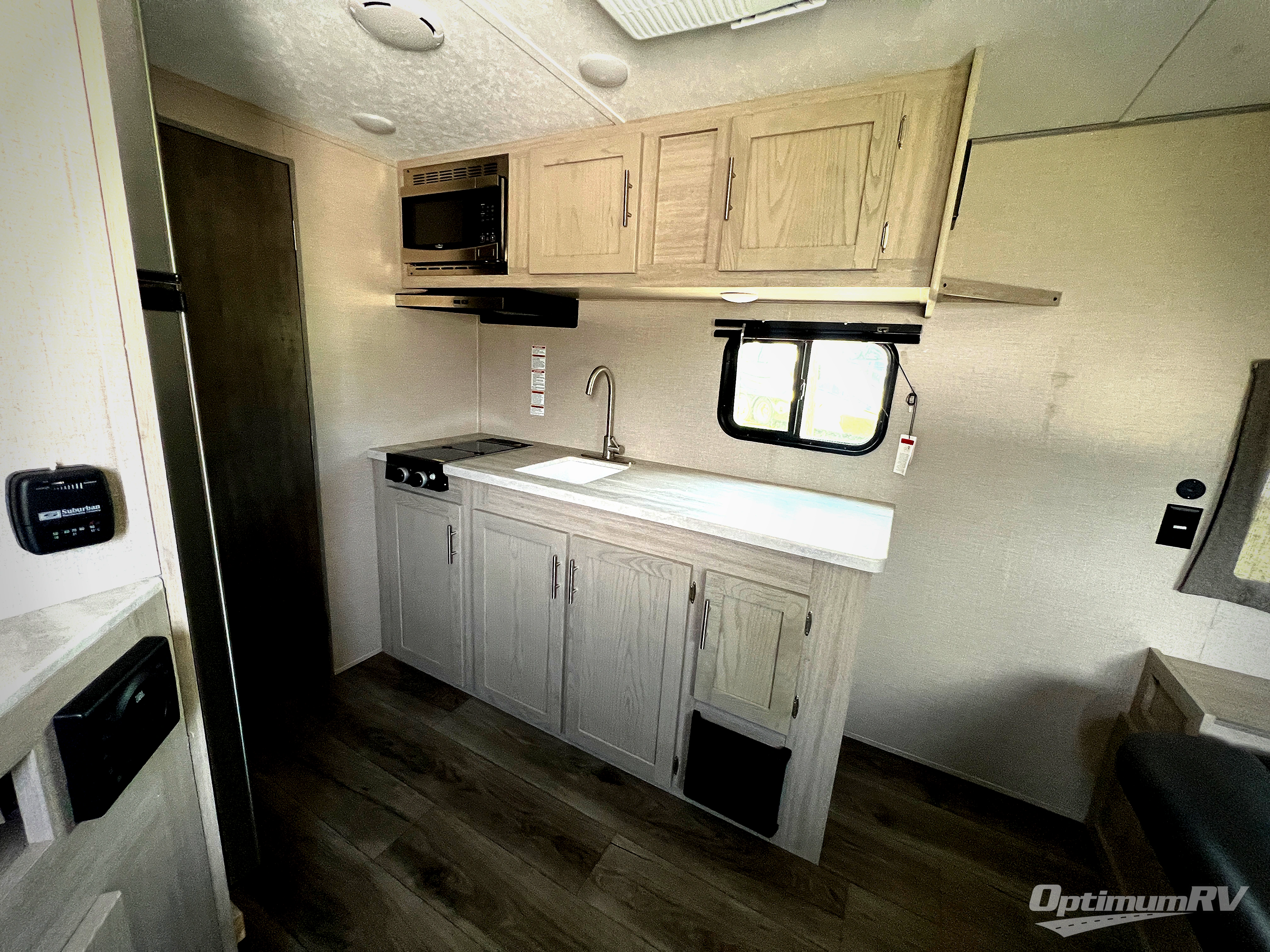 Camping for two, anyone? This cute Catalina Summit Series 7 is the perfect camper that provides you with both a living space and a sleeping space all while keeping it under 20'. This unit comes in at 19' 6" to be exact, and with the 60" x 74" Murphy bed layout you can have both a comfortable place to sleep at night, and during the day it's all tucked away behind a wall and a sofa sits in its place. You don't even have to make the bed! A rear bath offers a 36" x 30" shower, toilet, and linen cabinet for your towels and toiletries. The sink is just outside the bathroom door on your left. For cooking inside, you will have a two burner cooktop and a microwave oven, plus plenty of solid surface countertop prep space. On the outside, a 10' power awning with multicolored LED light strip will make a wonderful outdoor living space to enjoy both during the day and at night keeping you protected from the elements. And, the large front pass-through storage space allows you to take along all of your necessities to have a great time.