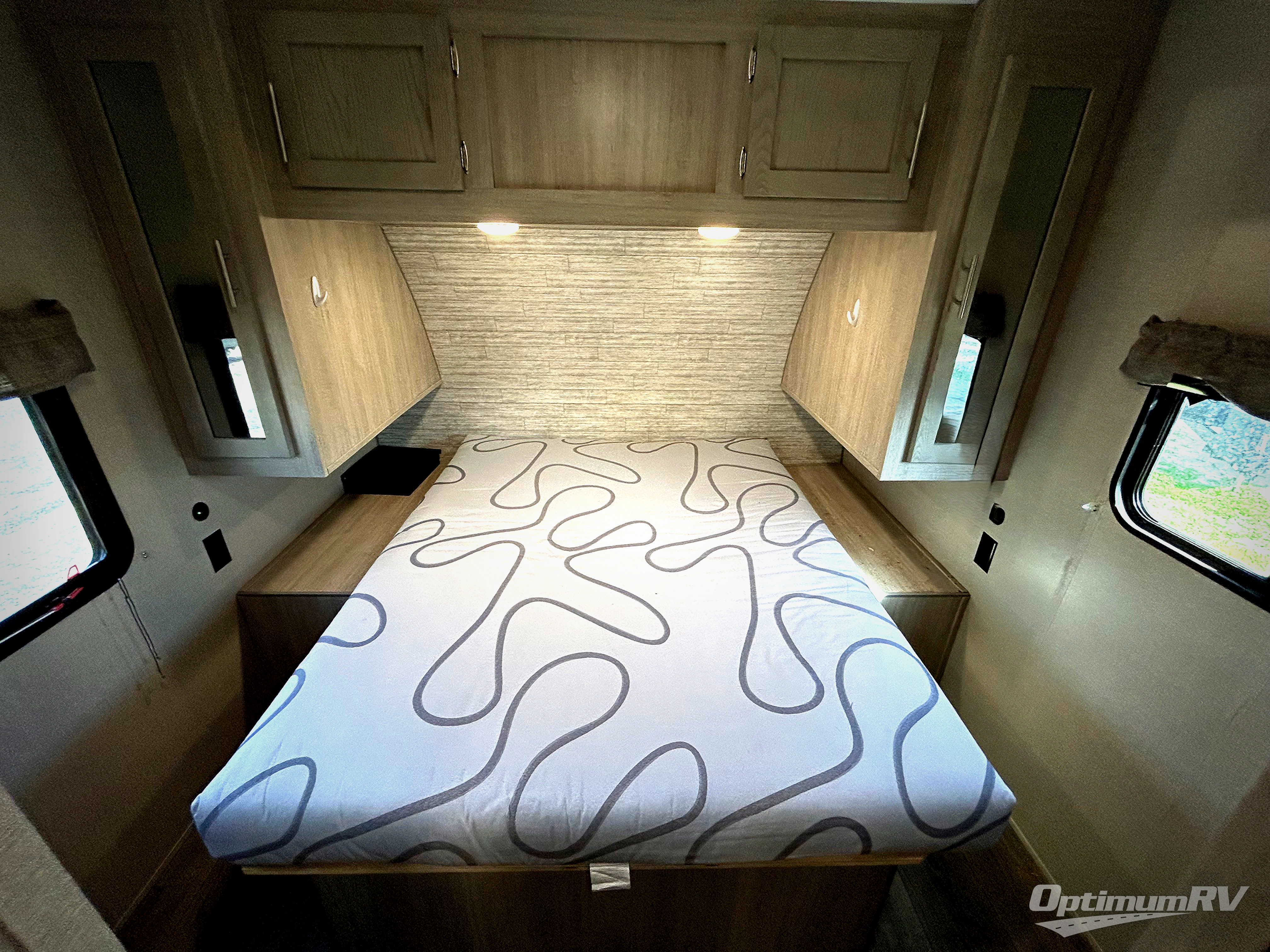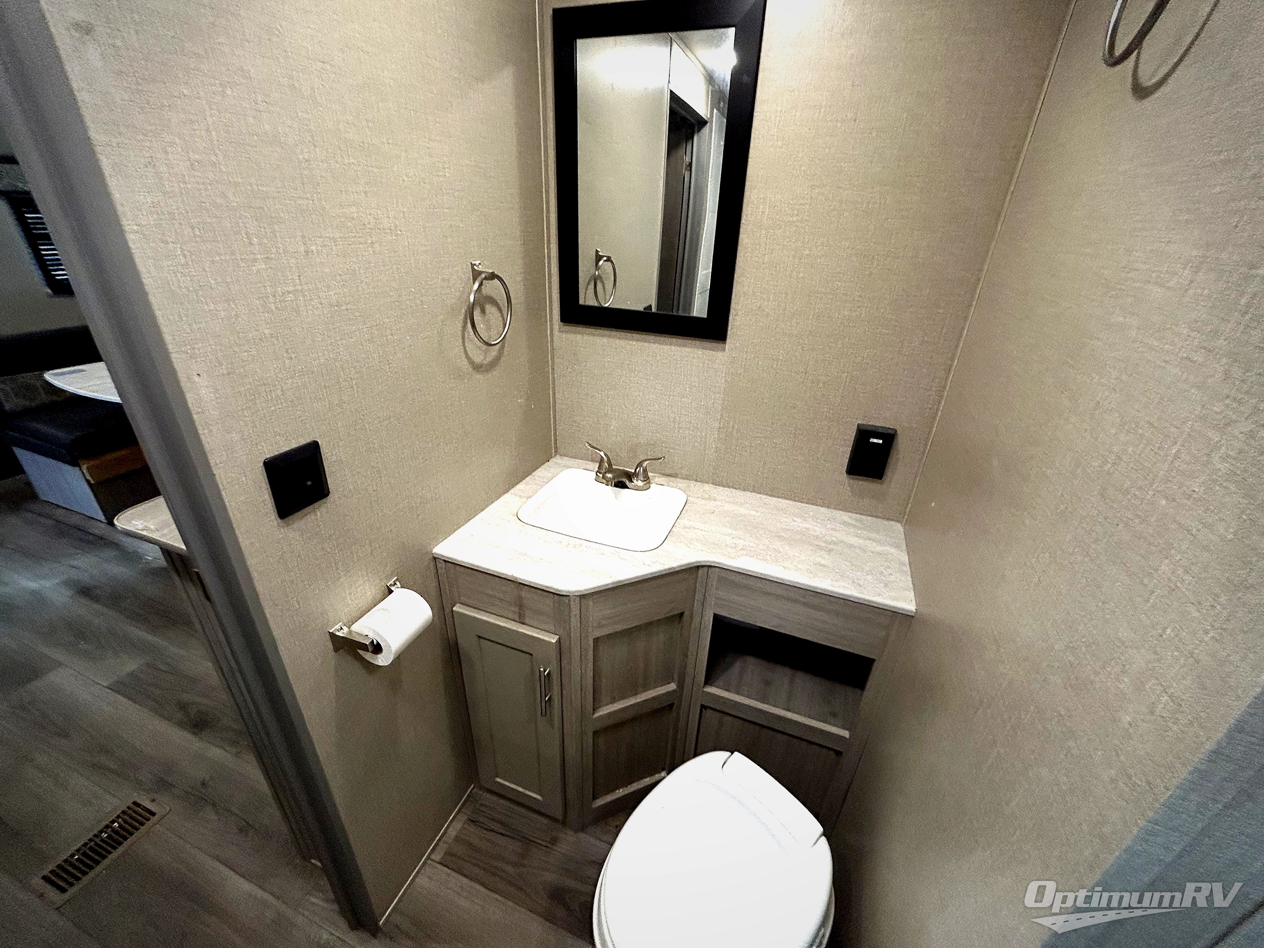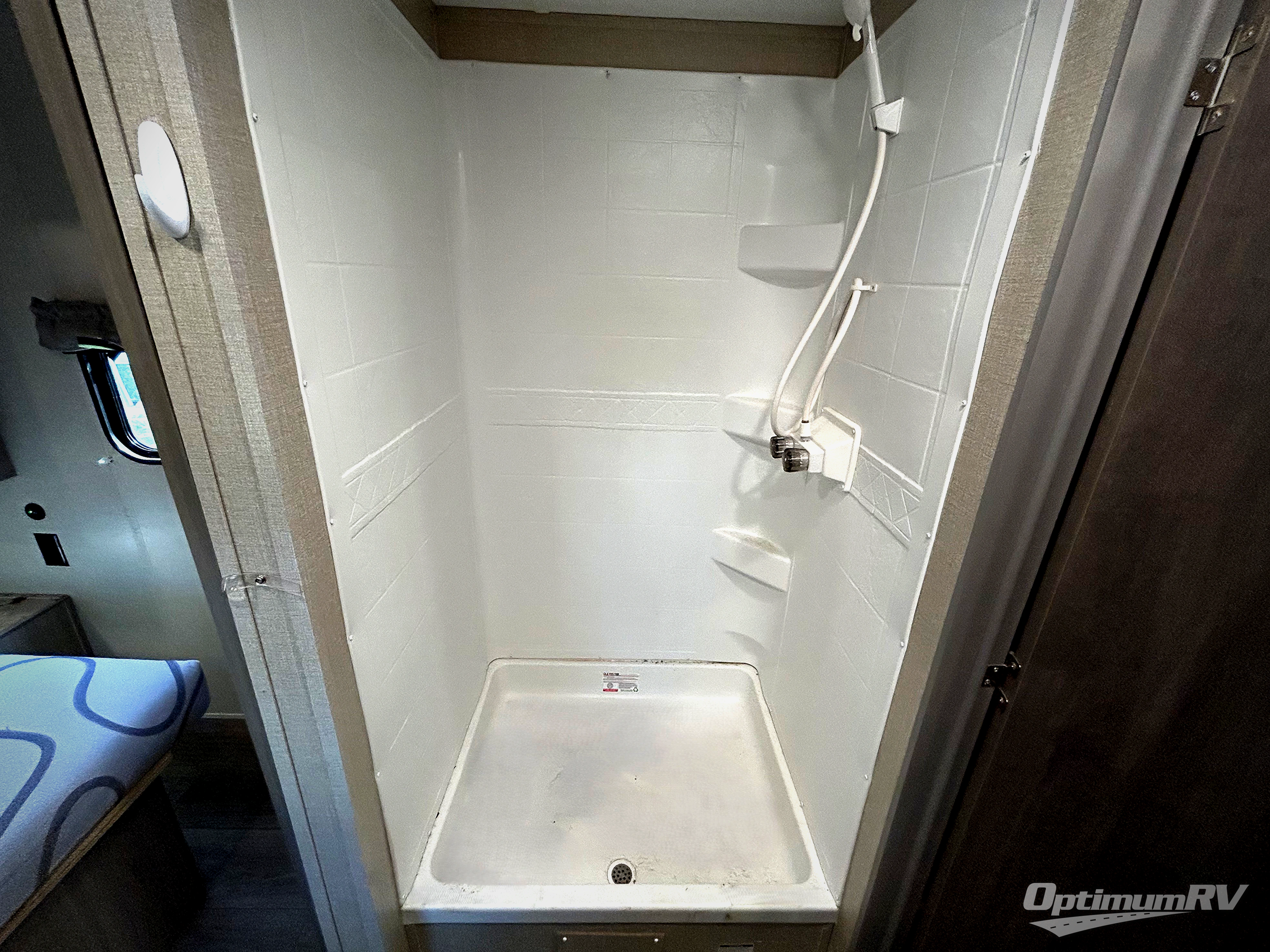 You and your spouse will love the layout of this trailer with a walk-through bathroom which is convenient for you when you are in the front bedroom, and handy for your guests when they stay overnight on the jiffy sofa. The sofa includes dual end tables to set your drink on, and the U-shaped dinette will be perfect to dine around or play games at. The galley kitchen offers all the appliances needed to make all your meals, such as a three burner cooktop, a stainless steel microwave, plus a 10 cu. ft. 12V refrigerator. You will have your own side of the walk-around queen bed and a wardrobe, as well as USB ports and 110V outlets in the nightstands.