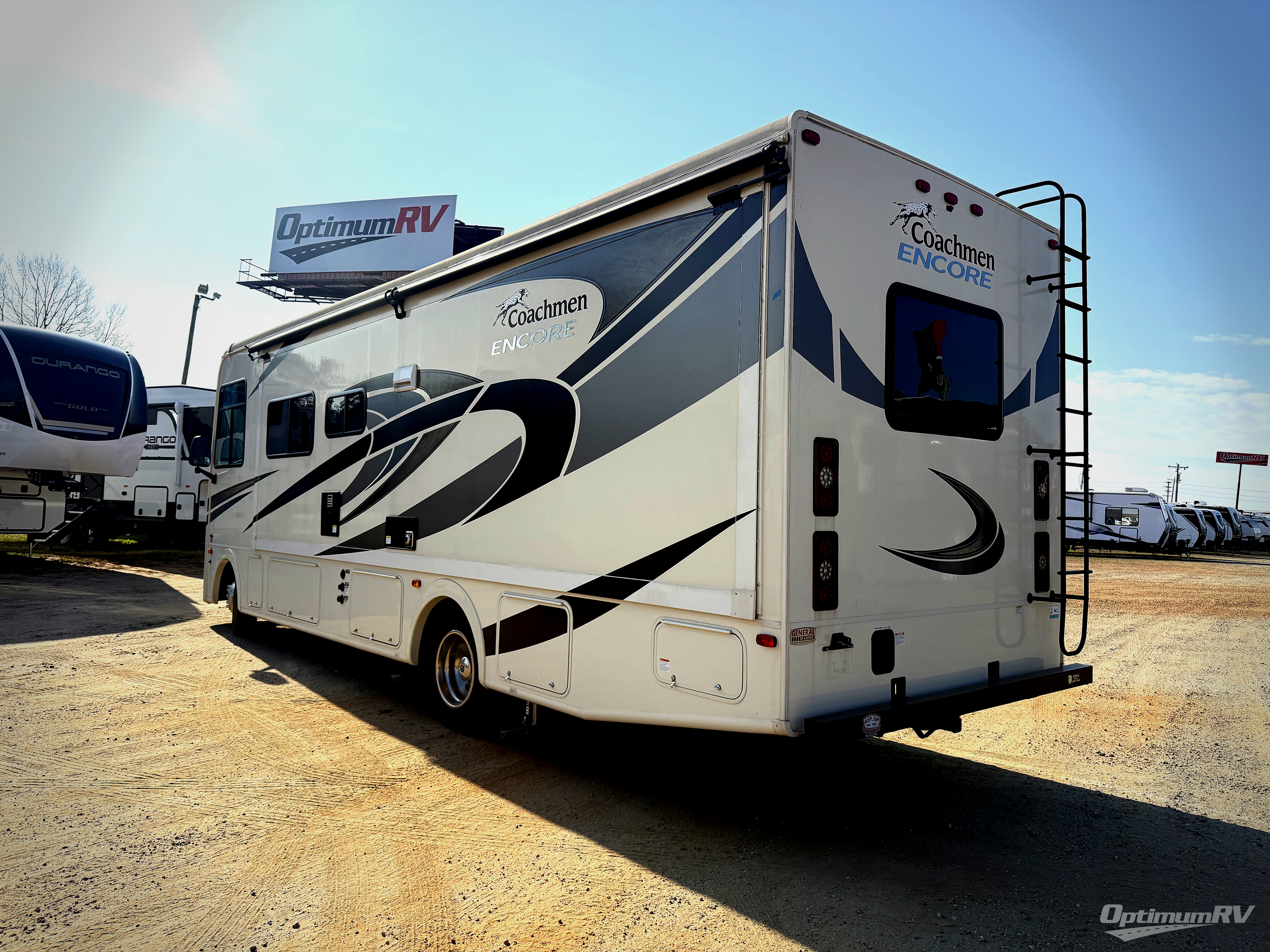 With an Encore SE Class A gas motorhome by Coachmen you will enjoy all of your travels. The high gloss gelcoat sidewalls include Azdel superlite composite for maximum durability. Outside, you will find exterior storage for all of your gear, a power patio awning, slide-out room awning, a 20 gallon LP tank, and fully automatic leveling jacks to name a few conveniences. Once you head inside, you will feel right at home with solid surface kitchen countertops, pleated privacy shades, flat panel hardwood cabinet doors throughout, and a porcelain foot-flush toilet. These coaches also include an outside entertainment center with a TV, an LED TV inside, a King Jack TV/radio antenna, and they are pre-wired for a satellite dish so you will still be able to watch all of your favorite movies and games when you want!