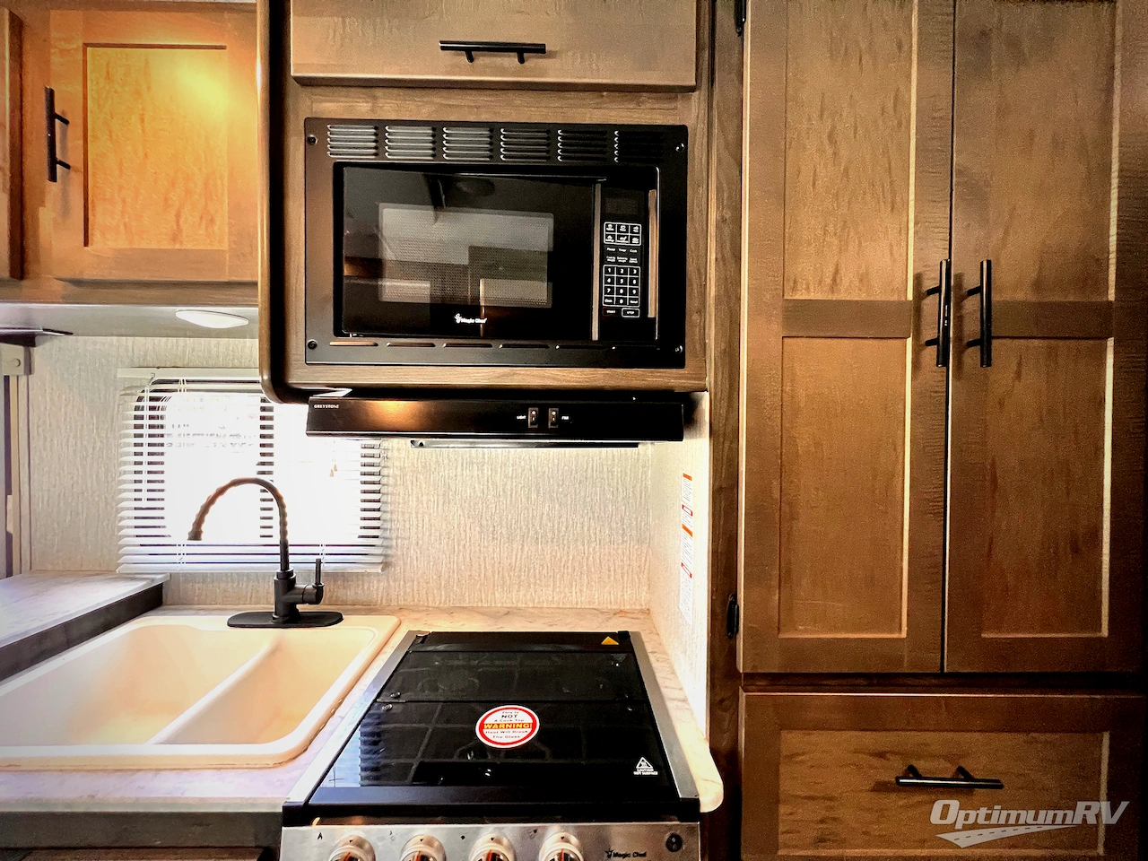 With each Leprechaun Class C gas motorhome by Coachmen you will enjoy "better" interior appointments, like the premium hardwood cabinet doors and drawer fronts, the one-piece thermofoil countertops, and the premium vinyl flooring. You will sleep soundly each night on the upgraded mattress, and staying clean will be easy with the premium showerhead and faucet in the bath. These models include reclining cockpit seats, cruise control, and a rear backup camera so you can easily get in and out of the campground. The Leprechaun is constructed with Azdel composite sidewalls, CrossFlex PVC, polyester reinforced roof material, and vacu-bond laminated walls, roof, and floor for a durable motorhome made to last.