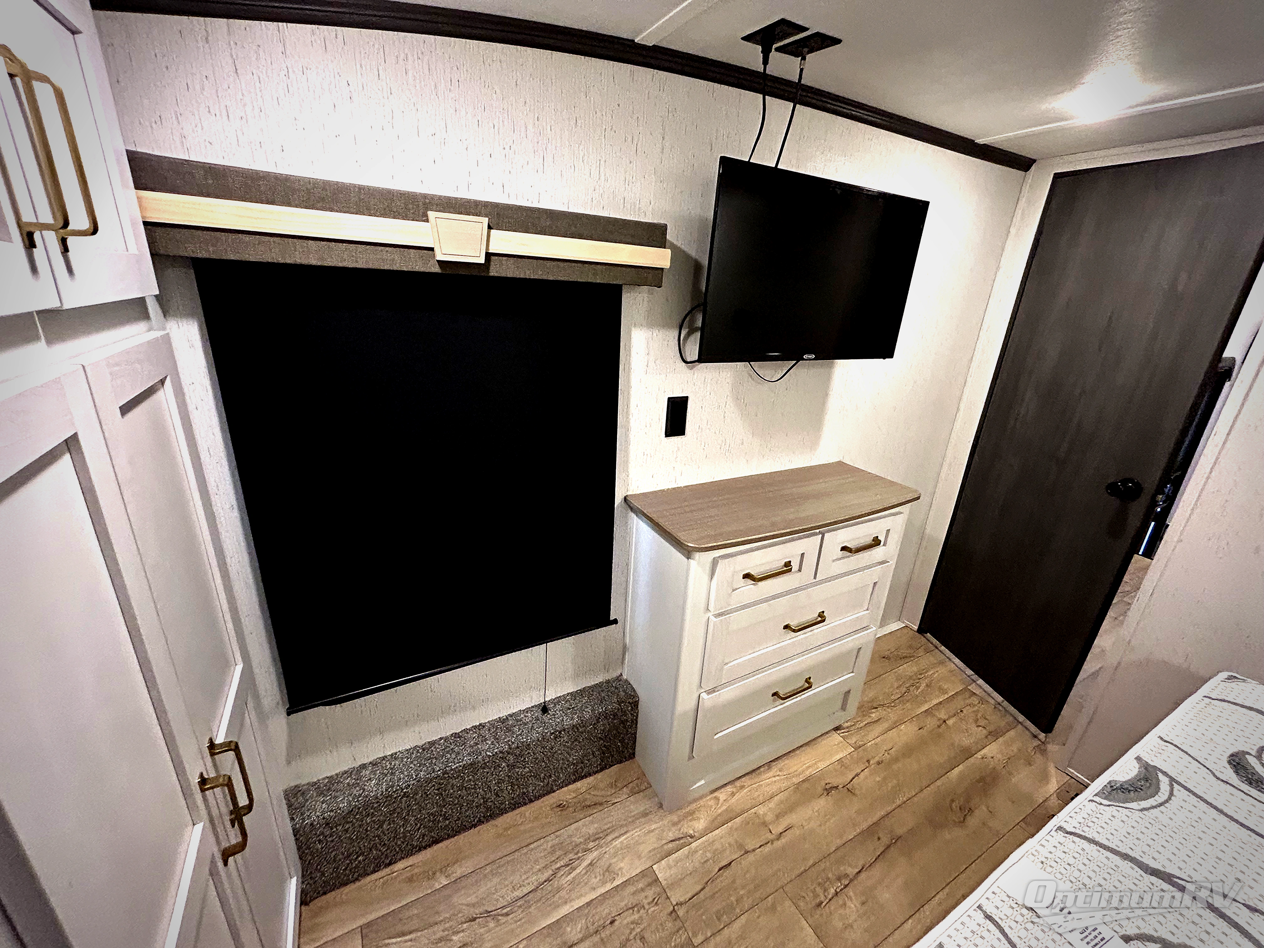 Each one of these Dutchmen RV Astoria fifth wheels and travel trailers offer highly visible, value-driven standard features and a sturdy construction with a fiberglass exterior! Dark-tinted safety glass windows offer privacy and a sleek design. You can store your outdoor gear in the pass-through storage areas and the slam latch baggage doors on the fifth wheels offer even more security while you travel. Their modern interior décor includes acrylic backsplash and stainless steel appliances which will be easy to clean. HyperDeck flooring will also be easy to clean, as well as hold up through each and every adventure. Don't waste anymore time, come find your perfect model today!