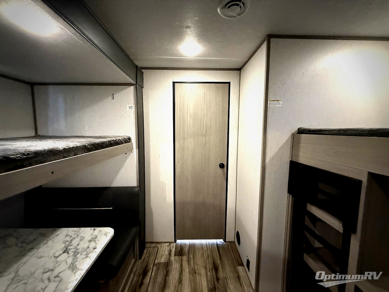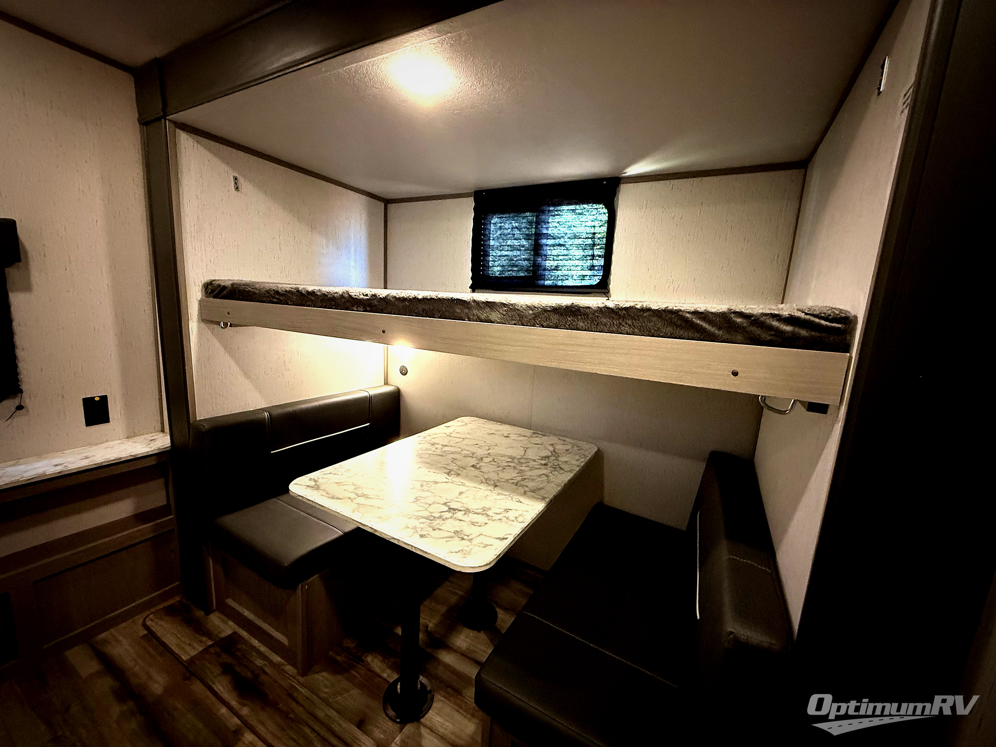 Looking for a spacious bunkhouse trailer with residential appliances inside to feed everyone and the ability to cook outdoors on an outside kitchen? Well, you have found it! Everyone can relax inside on the reclining sofa and at the conventional U-shaped dinette while the cook prepares meals at the kitchen island with a farm style sink with high rise faucet, and uses the appliances including the 10 cu. ft. refrigerator within the slide out giving the kitchen area more floor space. When you all are ready for bed, three can claim the two bunks and the dinette in the private bunkhouse, two can enjoy privacy in the bedroom up front on a queen bed, and some will enjoy staying in the main area to sleep on the furniture. There are many more features to enjoy such as the power tongue jack, the outside shower, the USB ports, and more!
