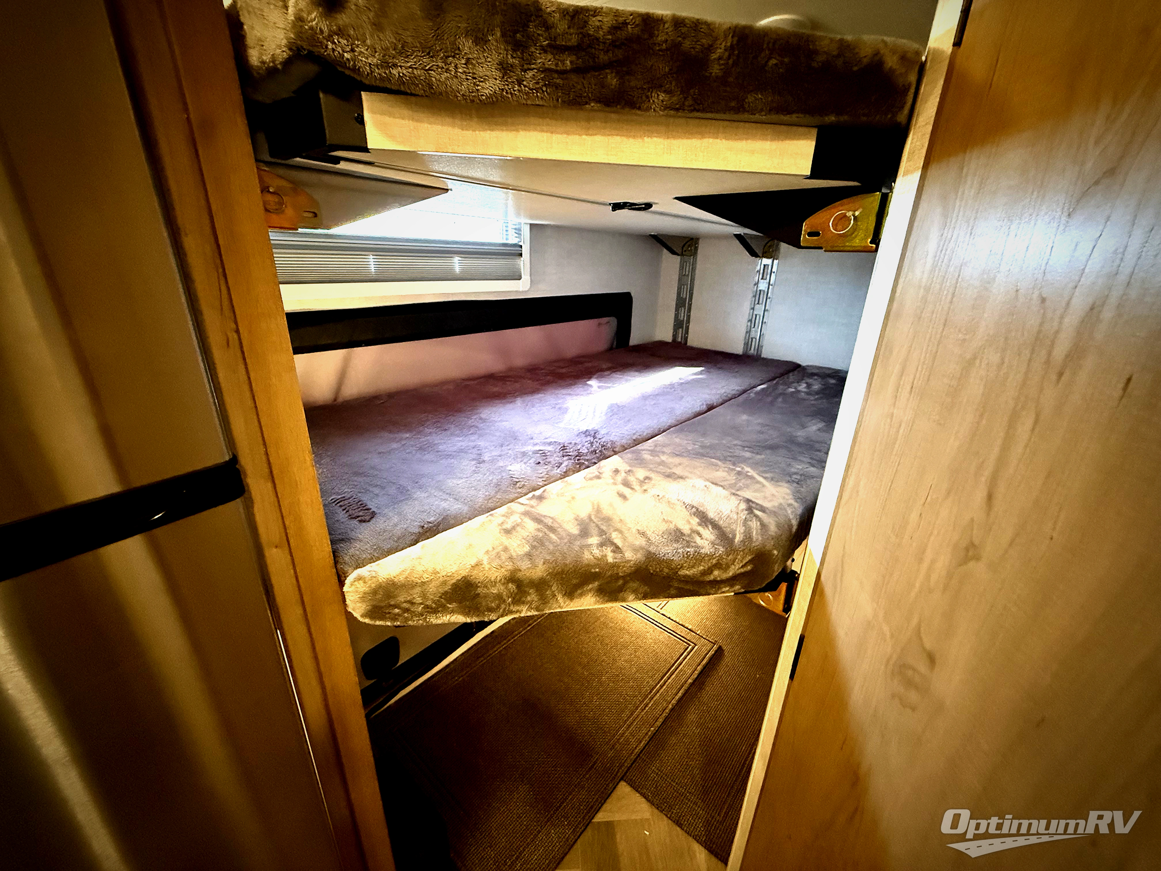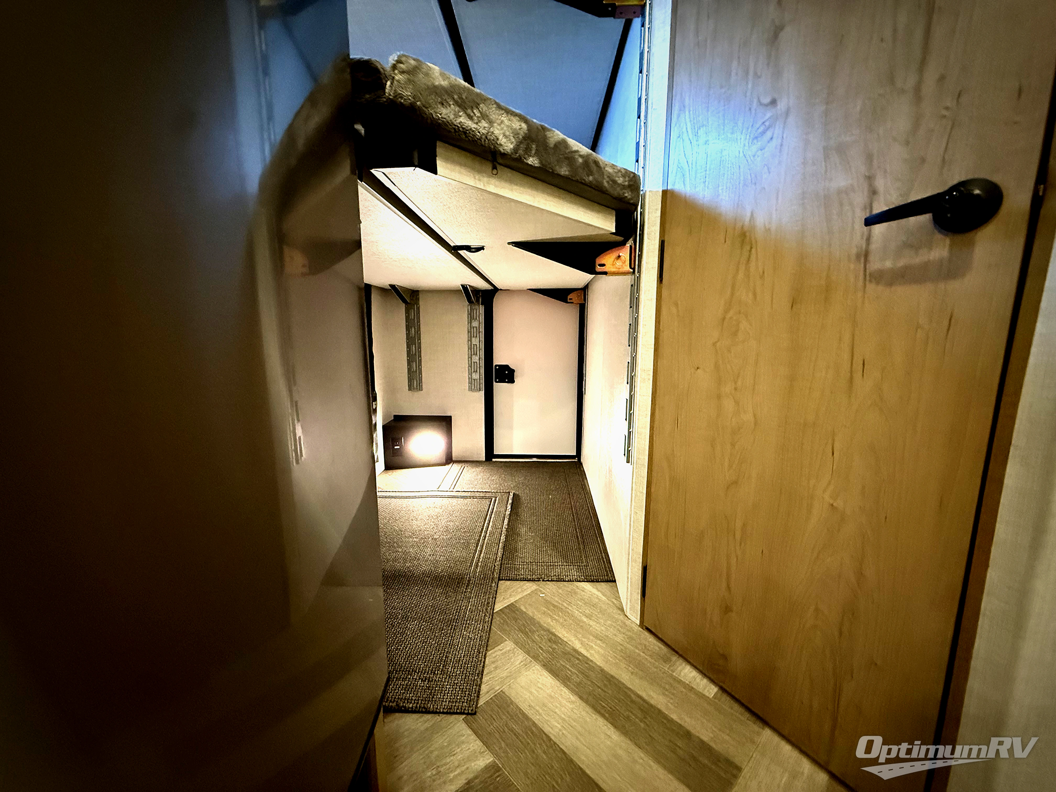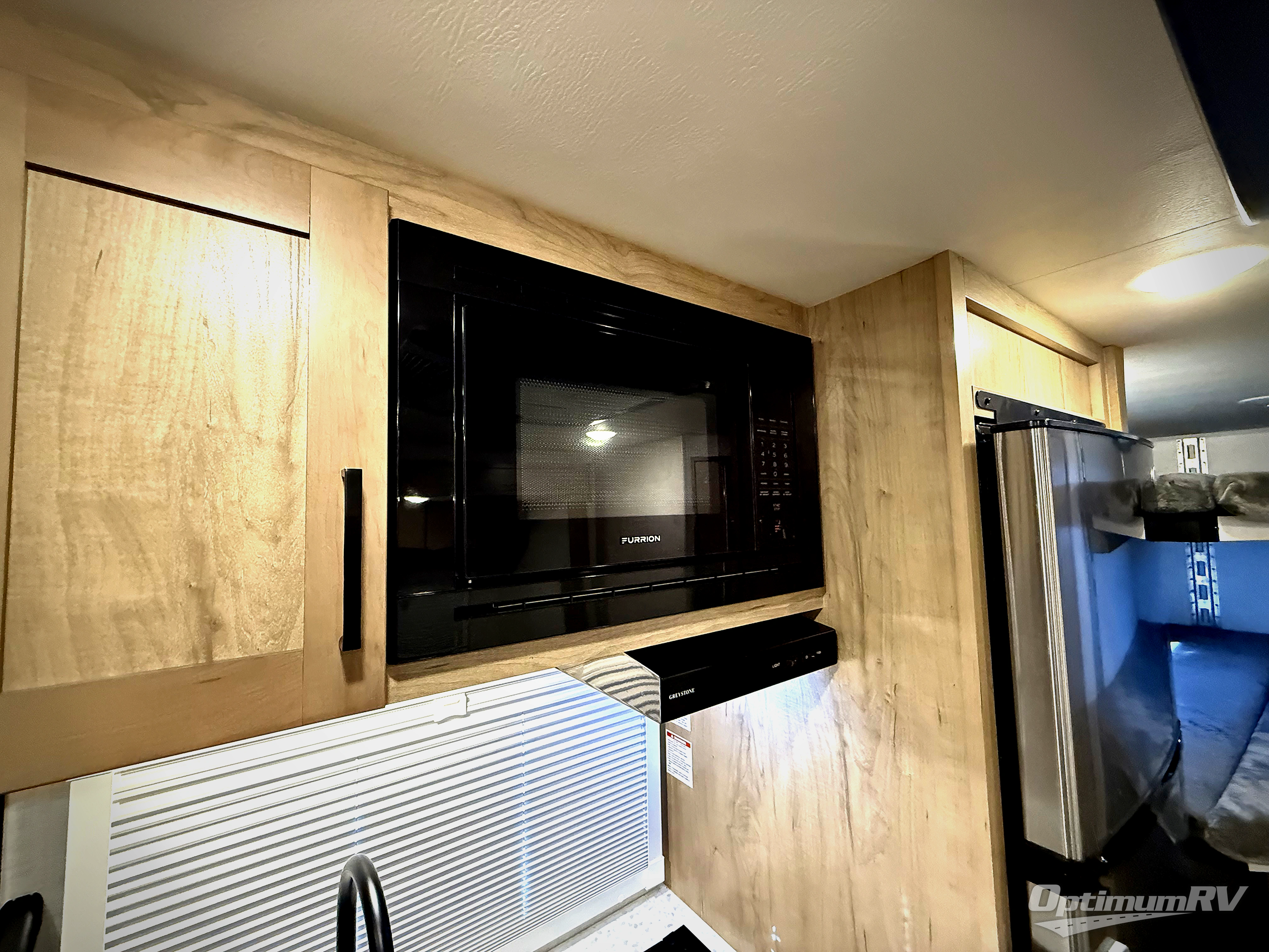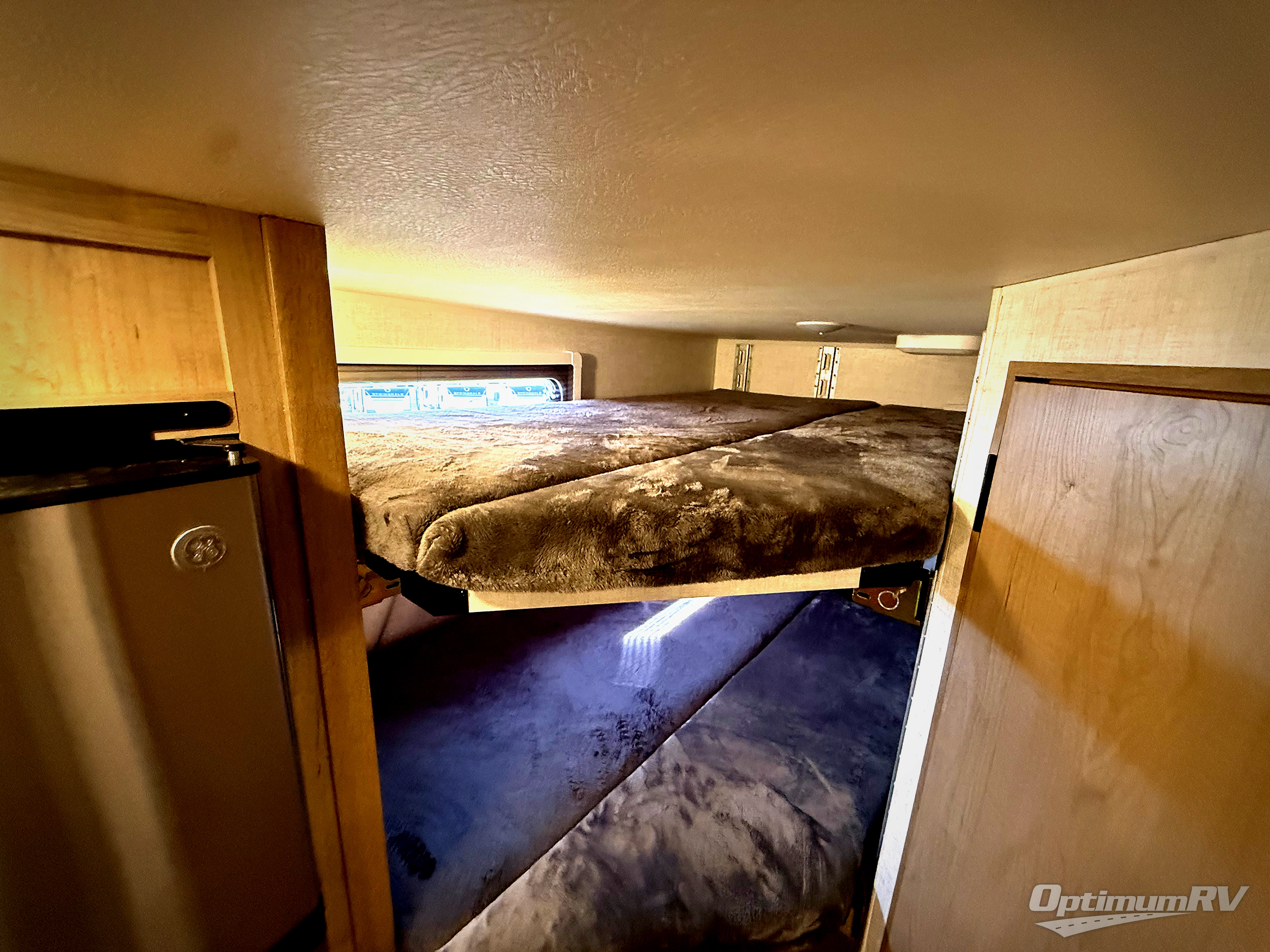 This unique travel trailer offers versatile living! Starting with the front Murphy bed that has a 60" x 80" queen bed to lay your head on at night and can convert into a sofa for seating during the day with a nightstand and a 12V HDTV/AV system to watch your favorite movies in bed. Create your best home cooked meals with the two burner cooktop and 12V refrigerator then enjoy them at the jackknife sofa slide with a removable table. Behind the sofa are dual storage cubbies and it can also convert into an extra sleeping space. The repositionable Embertack E-track bunk/storage system has a 74" x 46" cargo space for your items and a storage locker door to access them from the exterior. You can enjoy twin bunks or convert them to double-size bunks to sleep two to four. The exterior also has a kayak/bike storage door, front pass-through storage area, and a 2" accessory receiver!