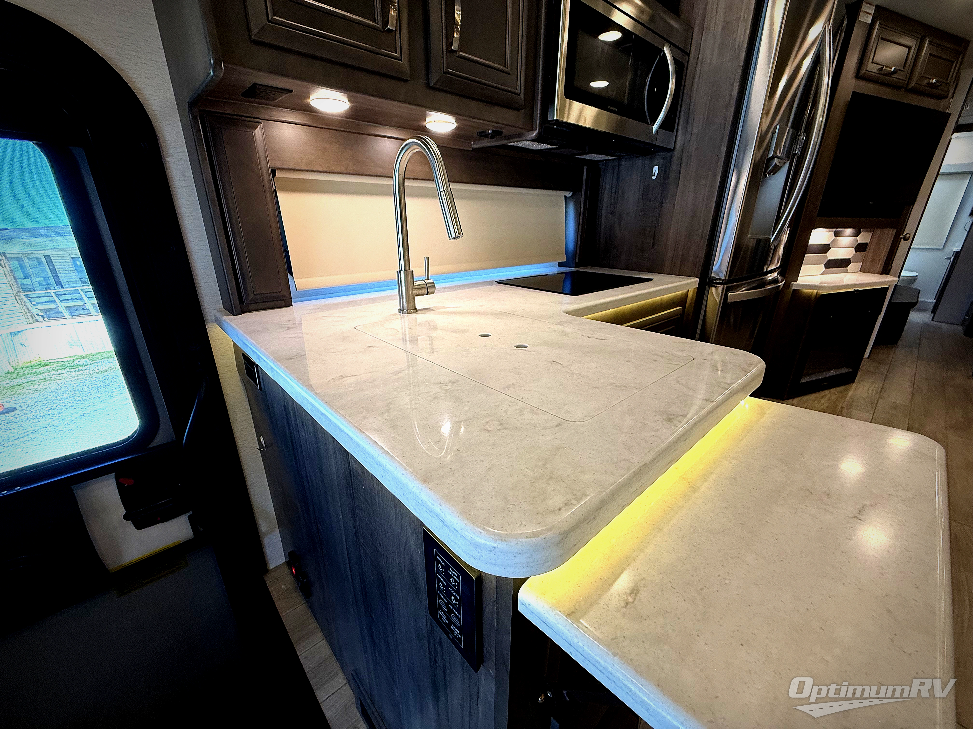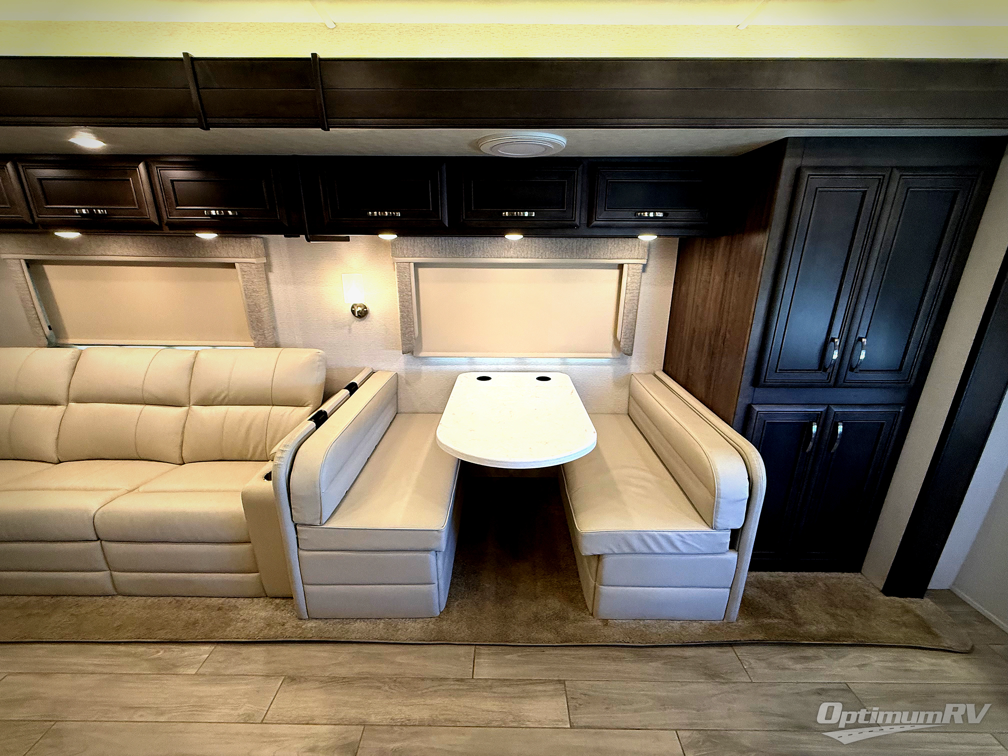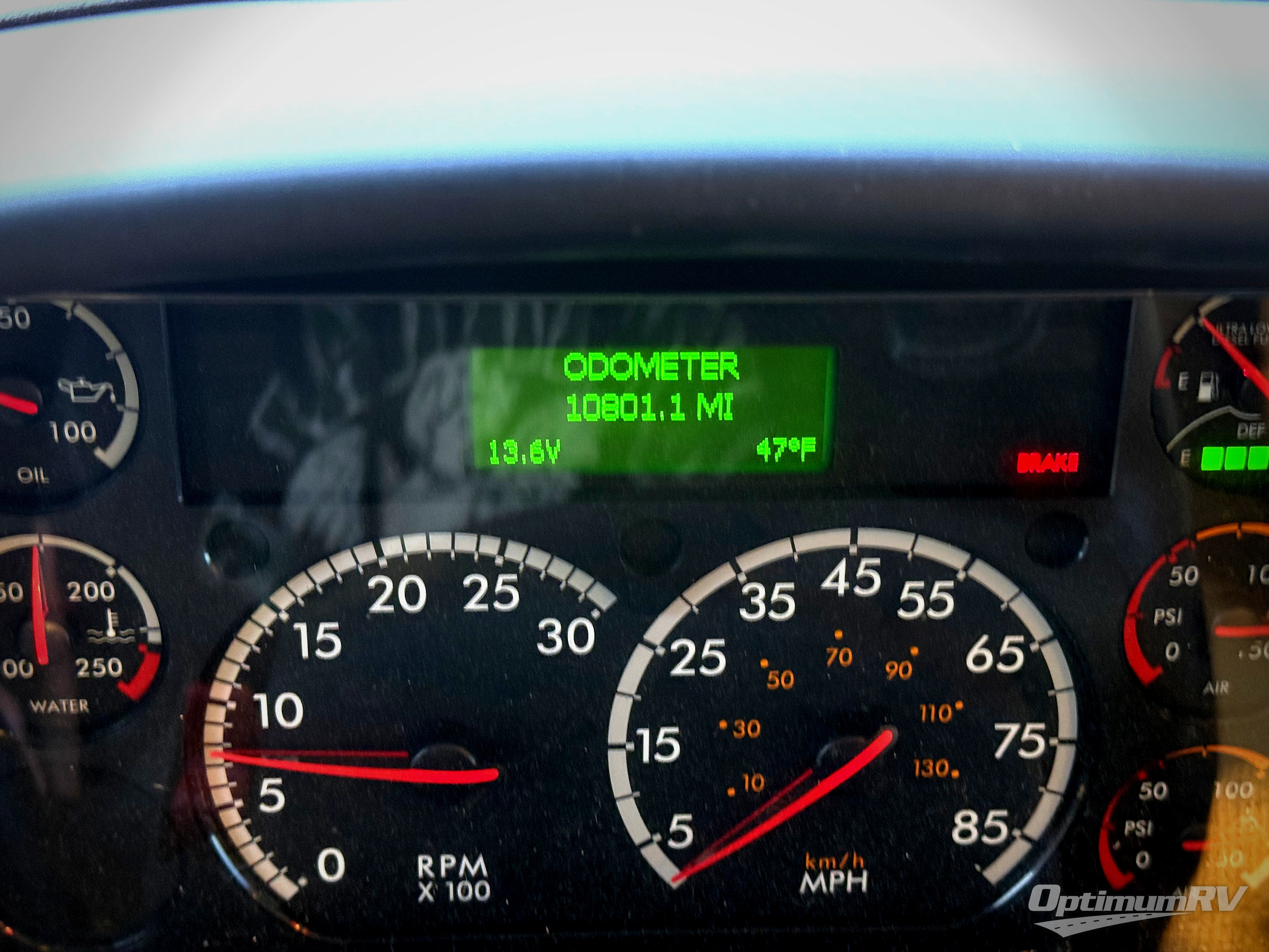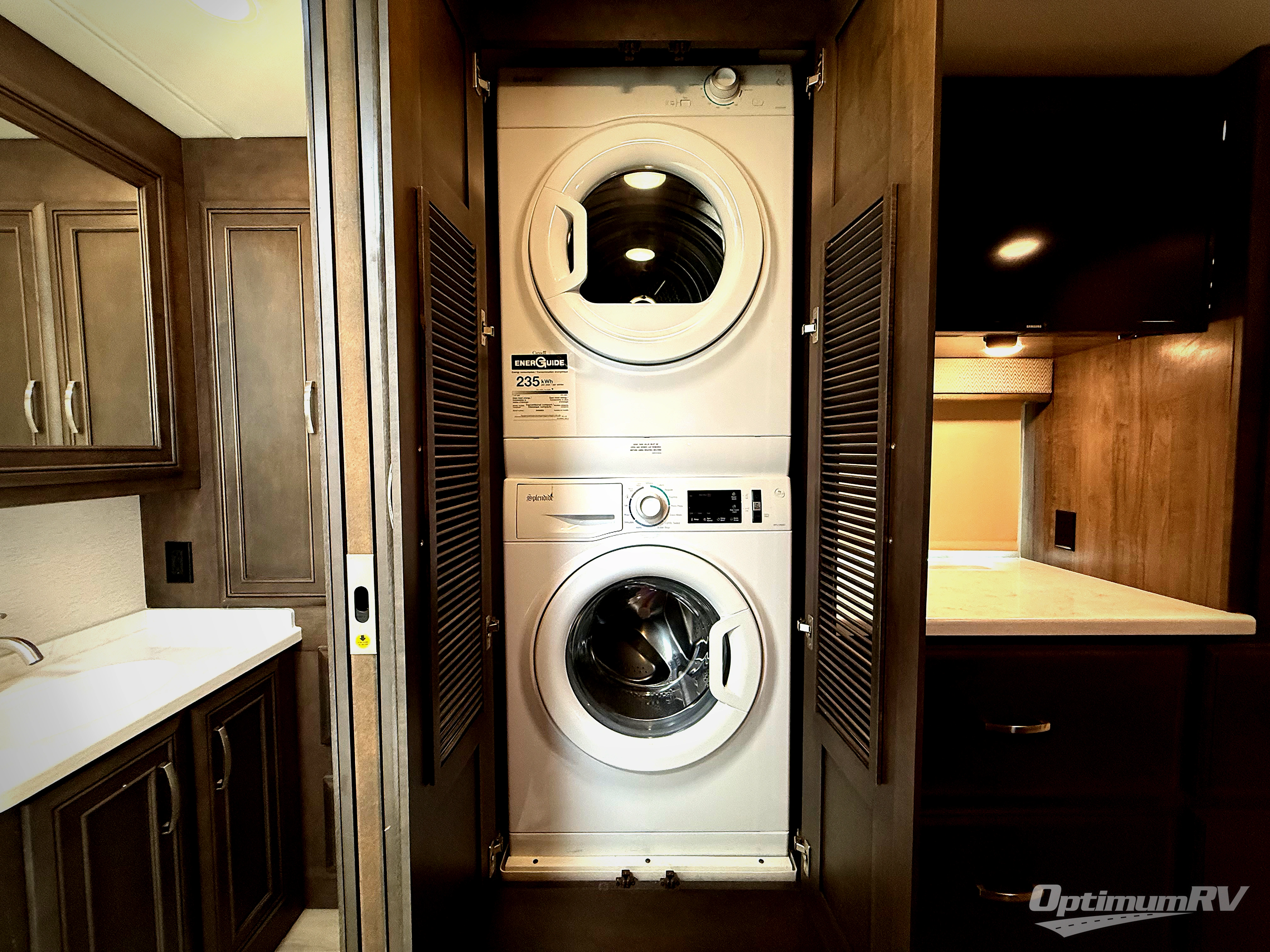 You will appreciate all of the conveniences throughout this motorhome starting with the carpeted, full pass-through storage compartment with lockable slam latch doors! The cockpit has a Sony infotainment center with Apple CarPlay and Android Auto to play your favorite tunes, and a panoramic window with a power shade so you can look out at your beautiful scenery driving down the road then enjoy privacy at night. Once you have reached your destination, you can either relax on the 93" reclining sofa or enjoy a meal at the booth dinette after preparing it with the two burner induction cooktop with LED display. A private bedroom welcomes you to enjoy a good night's rest on the king bed after showering in the 30" x 36" shower in the full rear bathroom. The bathroom also has an area prepped to add an optional washer and dryer!