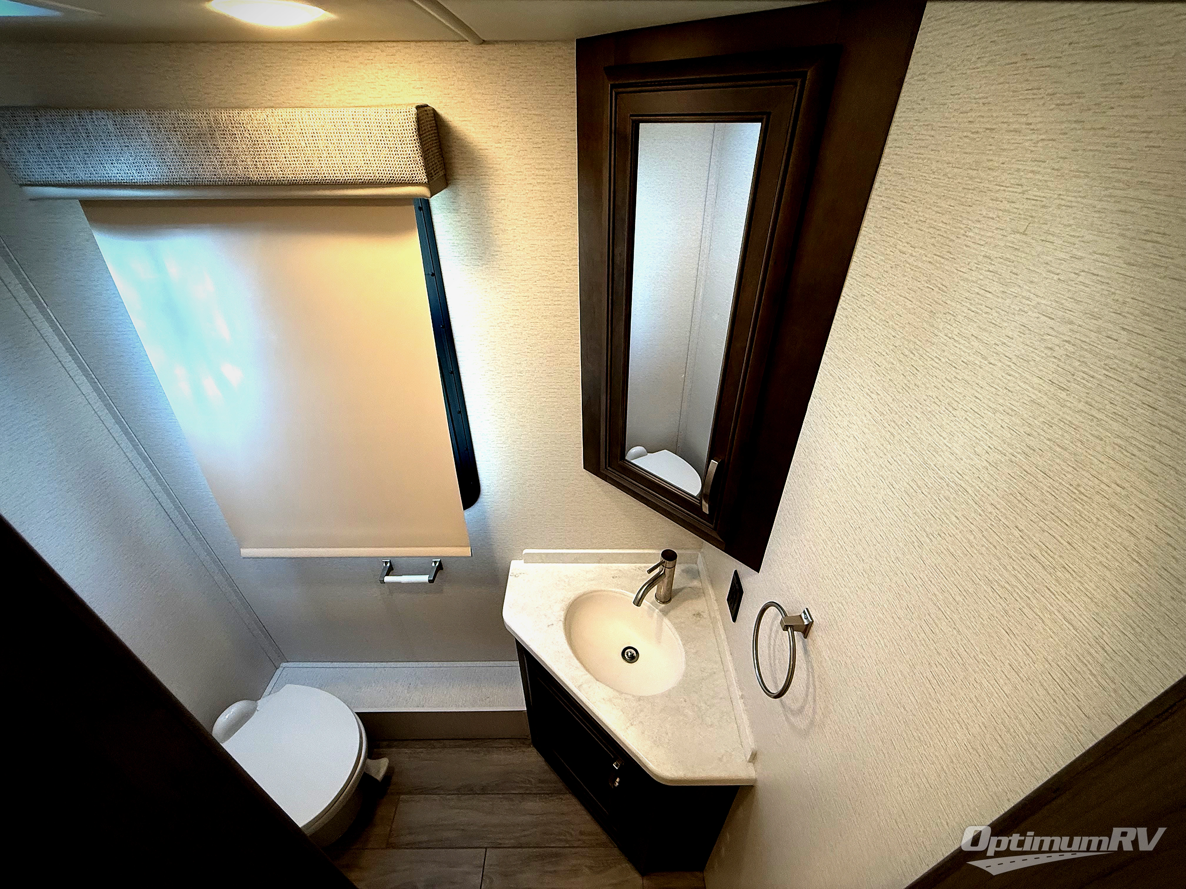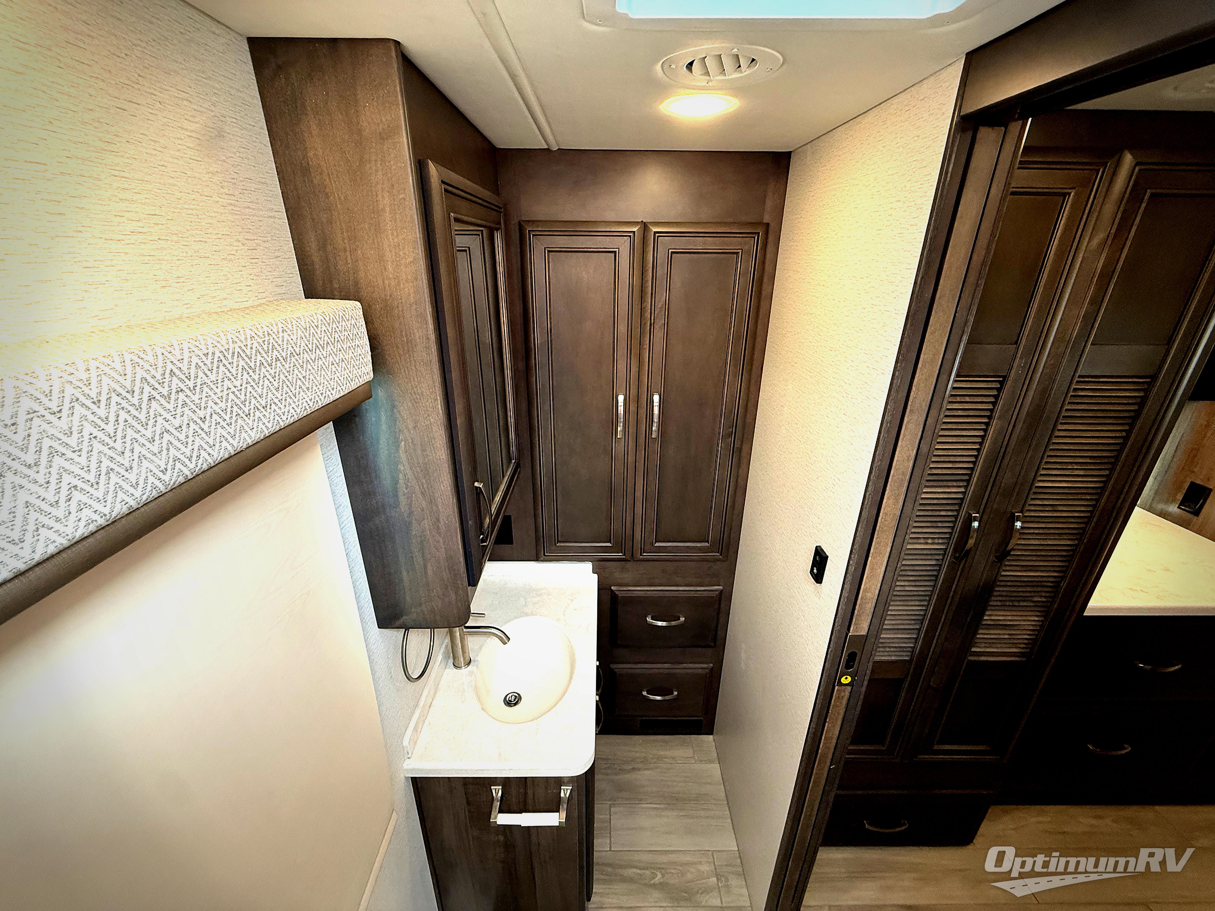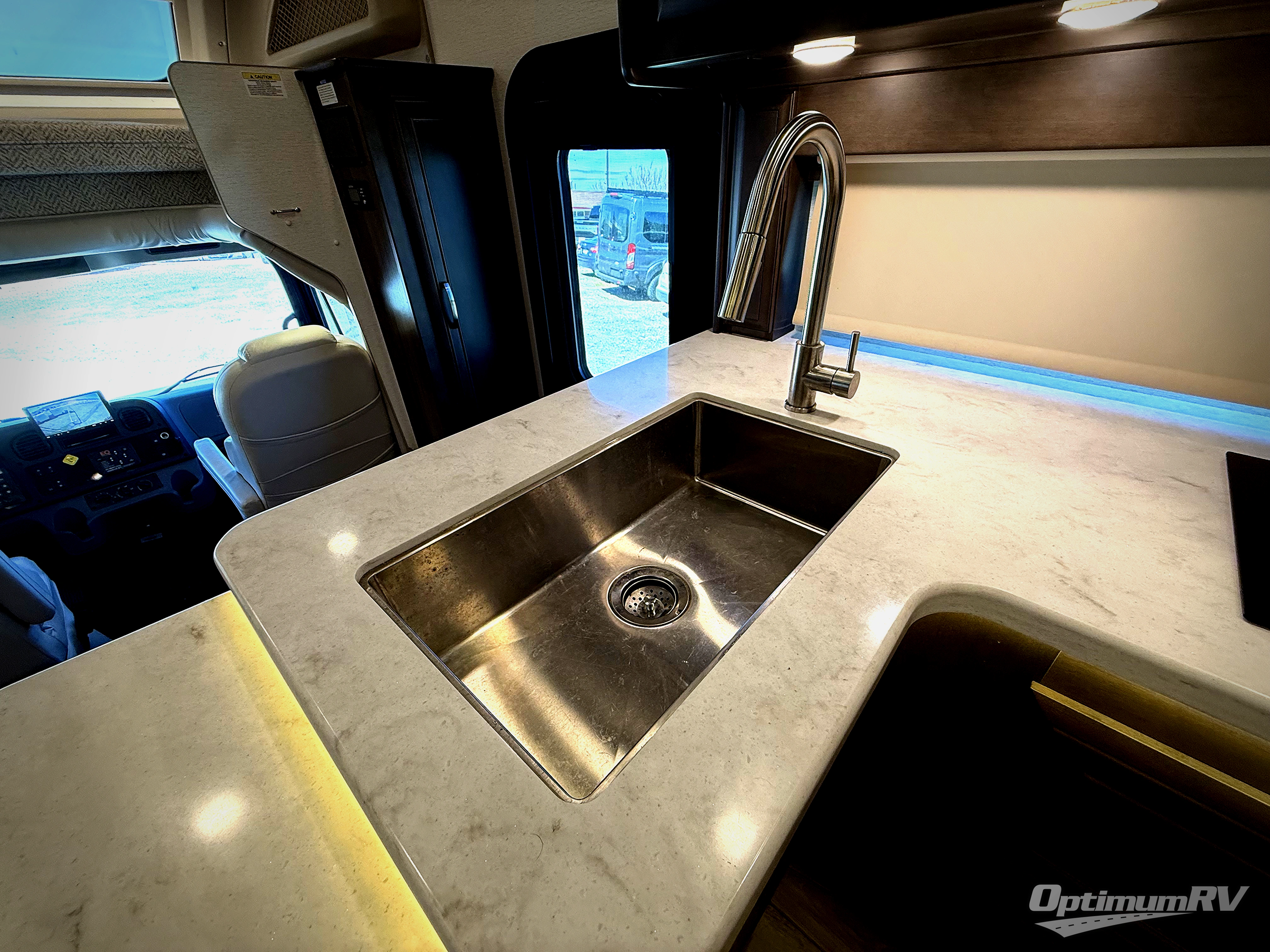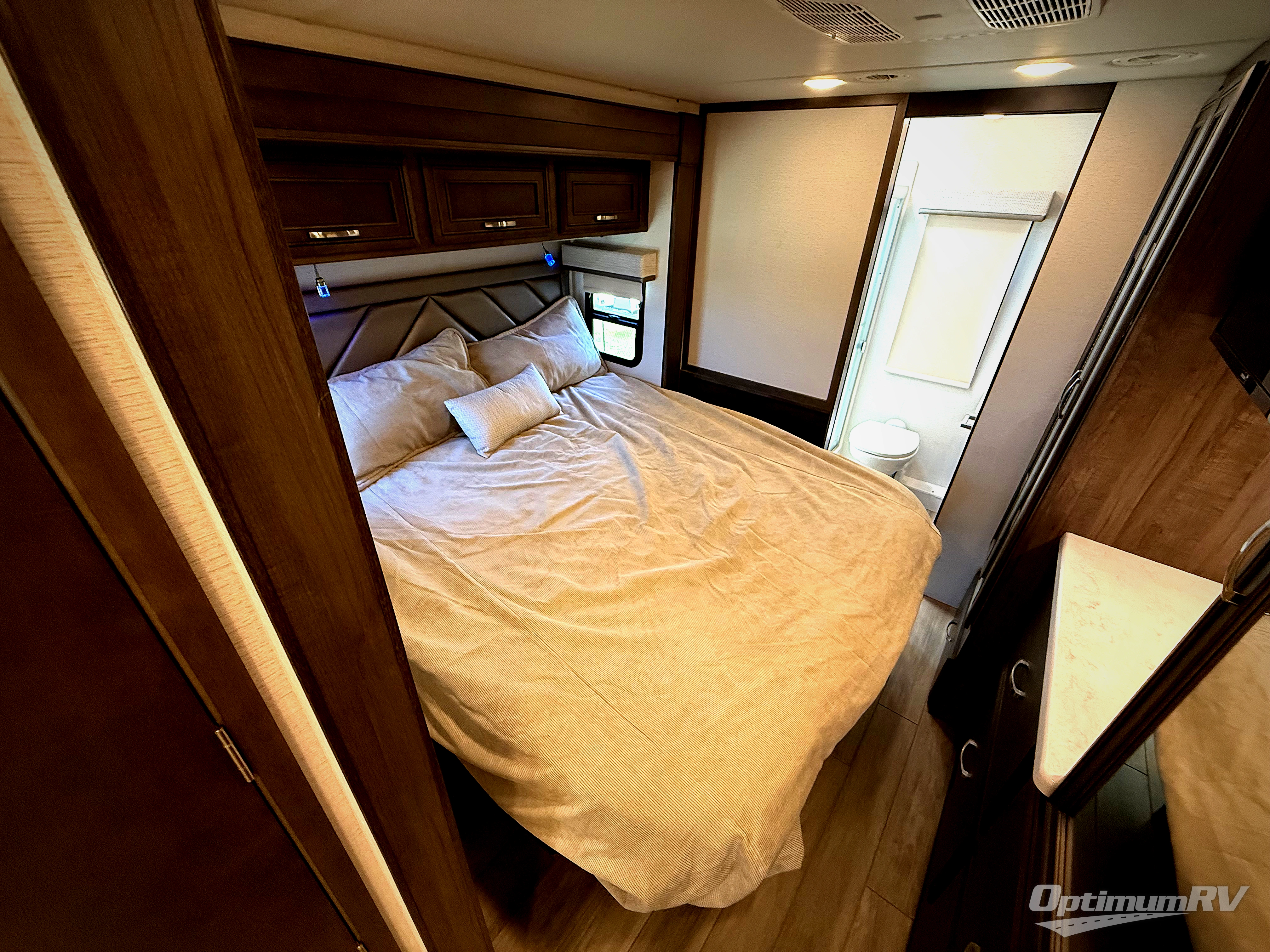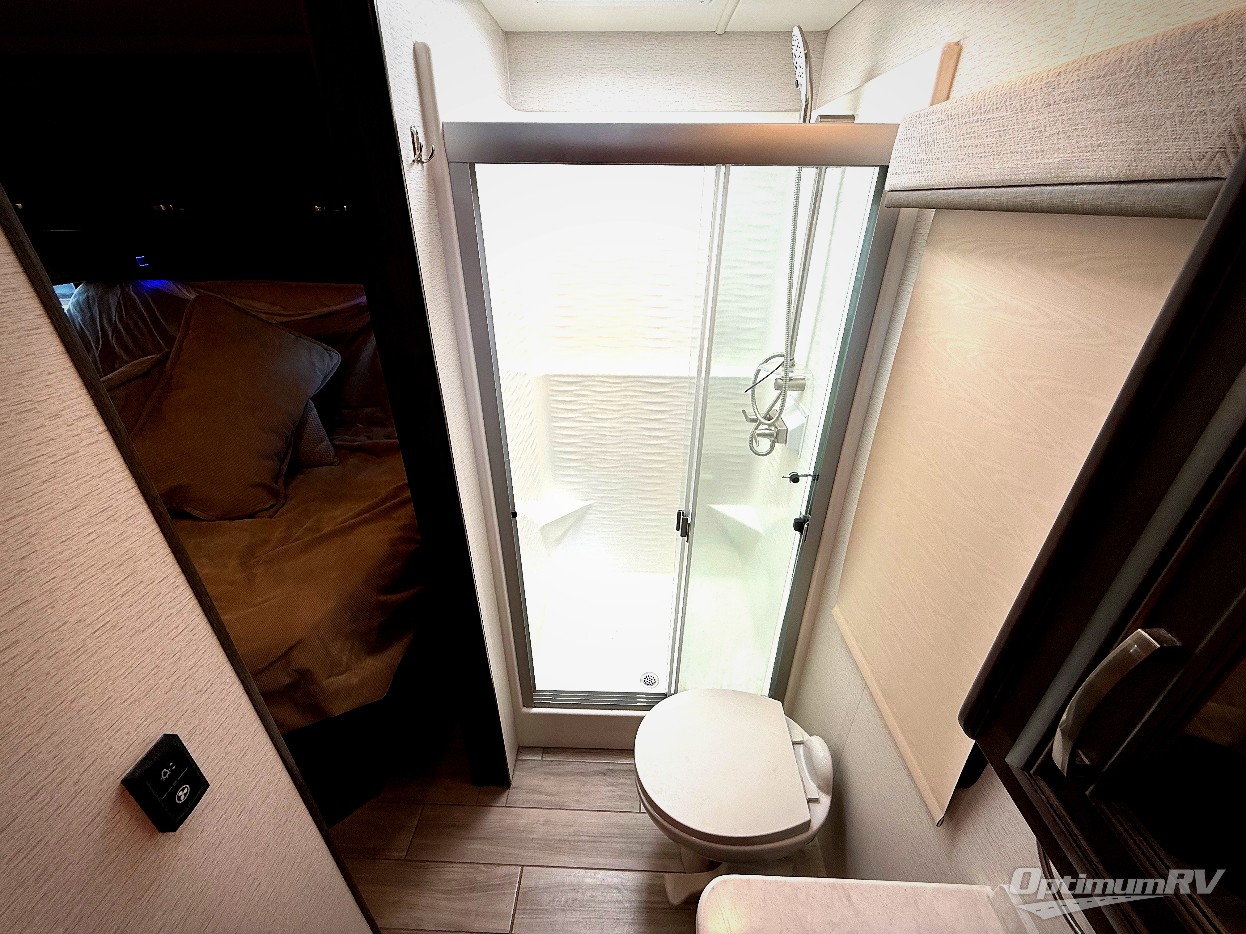 You will appreciate all of the conveniences throughout this motorhome starting with the carpeted, full pass-through storage compartment with lockable slam latch doors! The cockpit has a Sony infotainment center with Apple CarPlay and Android Auto to play your favorite tunes, and a panoramic window with a power shade so you can look out at your beautiful scenery driving down the road then enjoy privacy at night. Once you have reached your destination, you can either relax on the 93" reclining sofa or enjoy a meal at the booth dinette after preparing it with the two burner induction cooktop with LED display. A private bedroom welcomes you to enjoy a good night's rest on the king bed after showering in the 30" x 36" shower in the full rear bathroom. The bathroom also has an area prepped to add an optional washer and dryer!