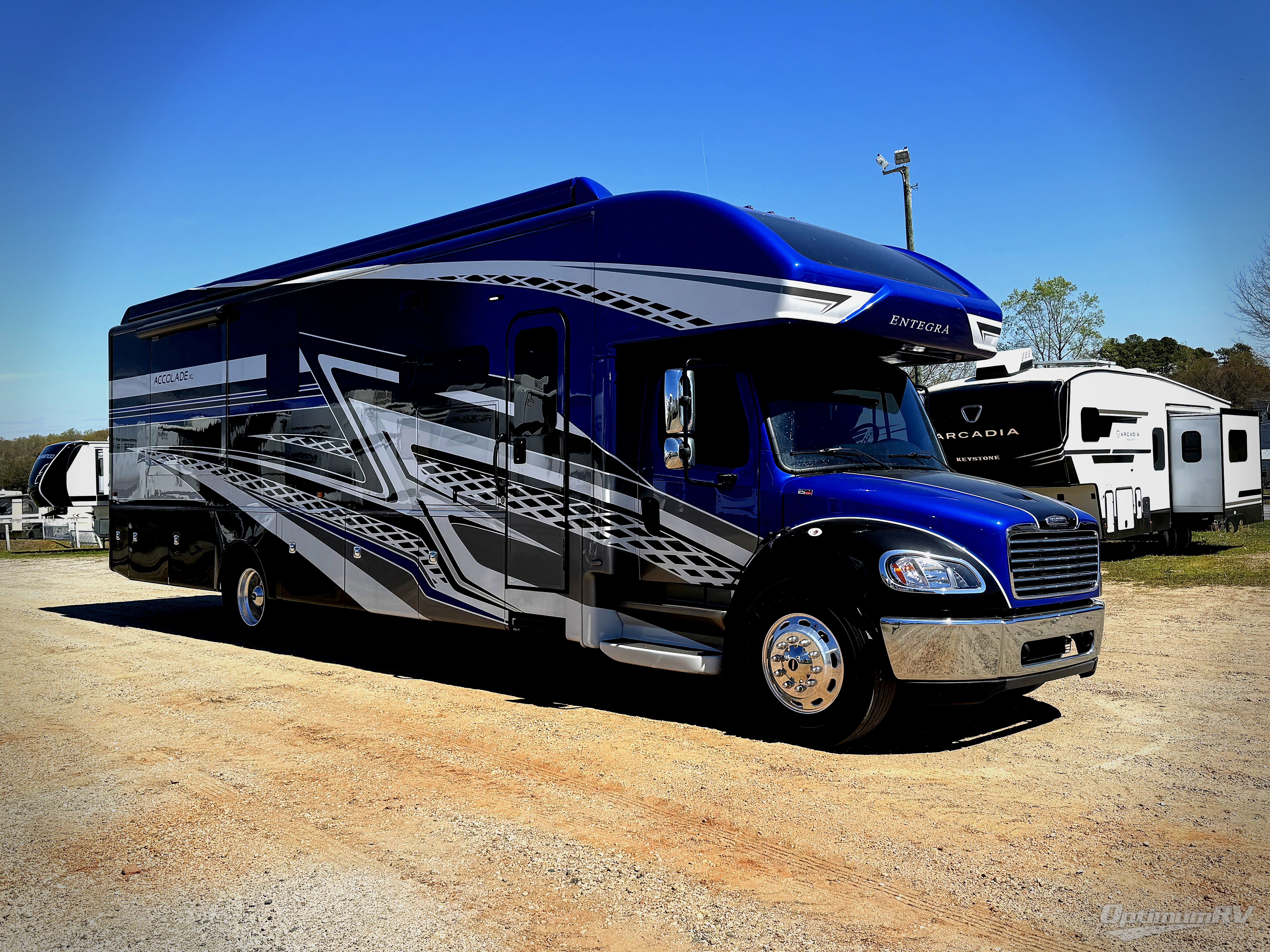 Each one of these luxurious and innovative Entegra Coach Accolade XL Super C diesel motorhomes are built with a Freightliner S2RV chassis! An E-Z Drive Premier package creates a superior ride and handling experience for smooth sailing down the highway. These units are held together by TuffShell vacuum-bond laminated sidewalls and floor, a one-piece, crowned fiberglass roof, and four slick full-body paint options. Dual 15,000 BTU A/C units will keep you cool in the summer, and a 35,000 BTU auto-ignition furnace will keep you warm in the winter. An exterior utility center, outside shower, and exterior entertainment center makes life a little more comfortable at the campsite too. Come choose your favorite model today!