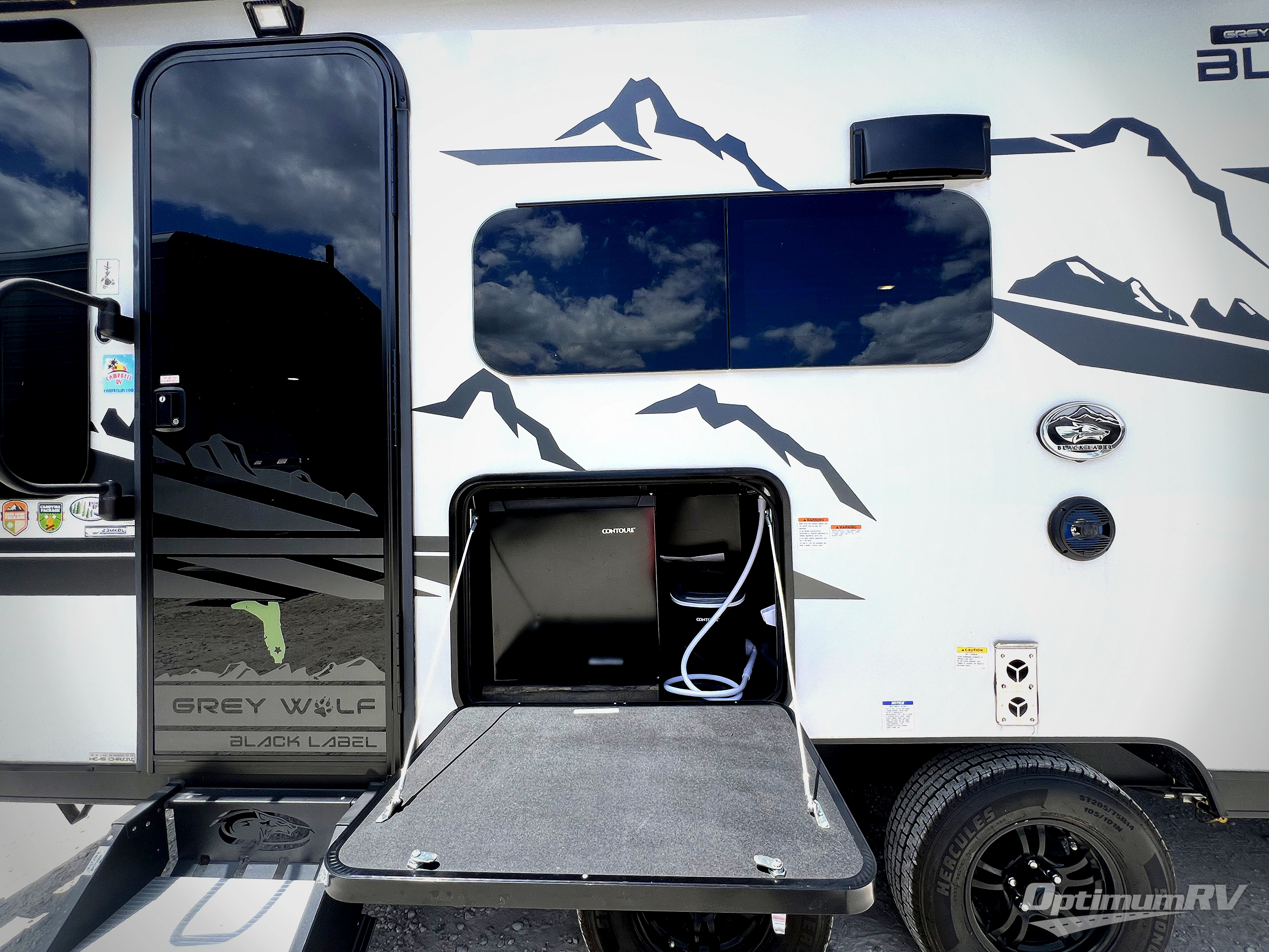 The Forest River Cherokee Grey Wolf Black Label travel trailers and toy haulers are attractive, enticing, and absolutely eye-catching! The Black Label comes with some features that are specifically unique to its name tag, like the hung fiberglass sided walls, solid surface countertops, designer cushion fabric, and a frameless window package. You can travel in confidence with the premium wheel package, seamless roofing membrane with heat reflectivity, Power Gear frame technology with space-saver rail design, and Cherokee back-up camera system. The Cherokee Grey Wolf's interior is highly attractive with its black stainless steel kitchen suite package, premium bedding ensemble and comforter, and 8" ceiling-mounted subwoofer with accent lighting. You will also find a black waste tank flush-out kit, an outside shower with hot and cold water, an armored underbelly tank enclosure, an on demand tankless water heater, and an RV grill quick connect.