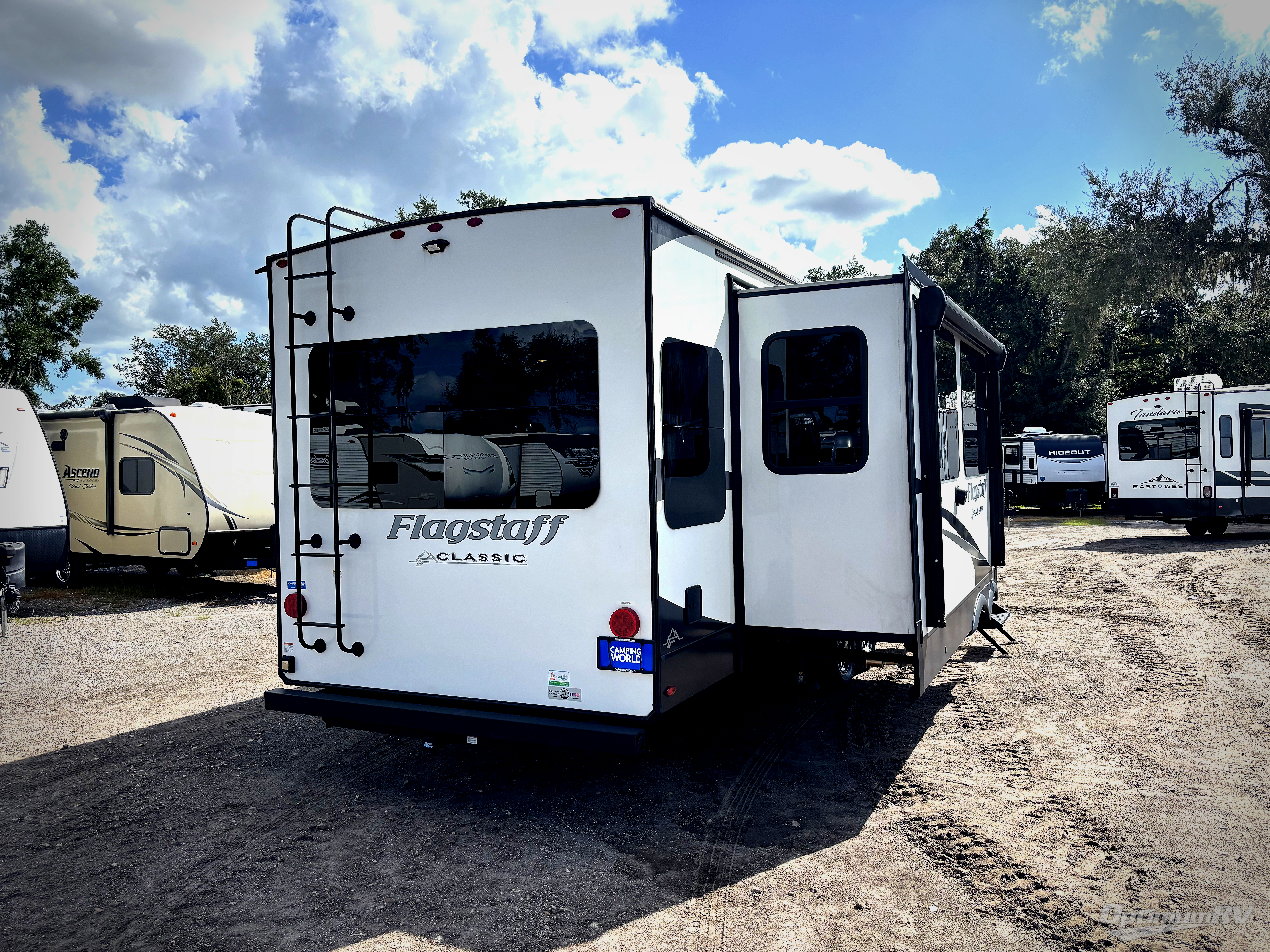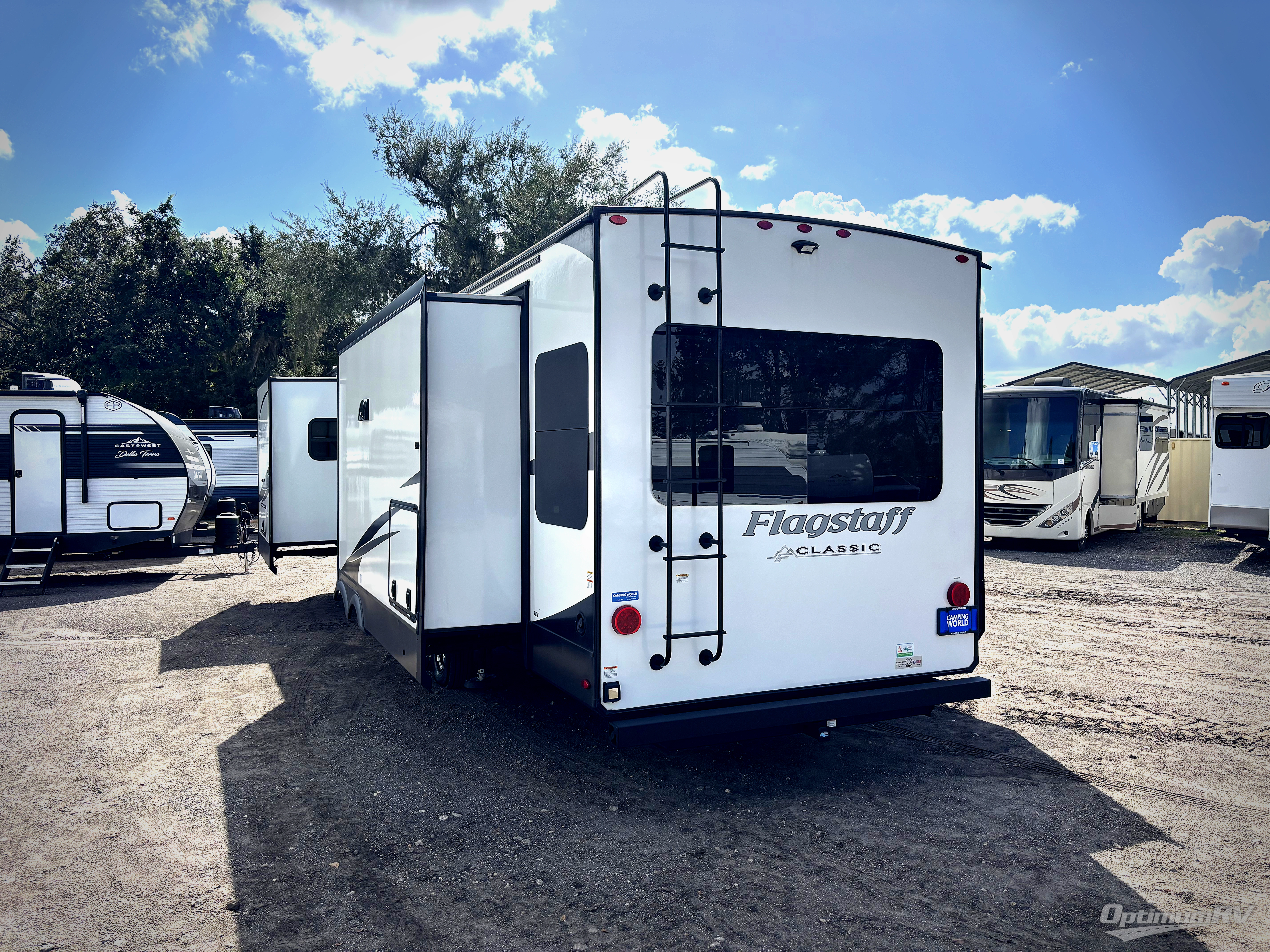 Each one of these Forest River Flagstaff Classic fifth wheels or travel trailers will be your home on wheels! Their quality craftsmanship and attention to detail shines through the surface-coated steel I-beam frame on fifth wheels, the enclosed underbelly, the radius roof with vaulted interior ceilings, and six-sided fully aluminum-framed floor, walls, and roof. Towing your unit will be easy with the torsion axle, Rubber-Ryde suspension, power tongue jack, and nitrogen-filled Goodyear Endurance tires. You will even reduce your use of water with the Showermiser water saving system in the bathroom. A few other convenient features you will enjoy include a control panel with WeRV app control, an upgraded backlit headboard, and an outside shower with hot and cold water. Come choose your favorite one today!