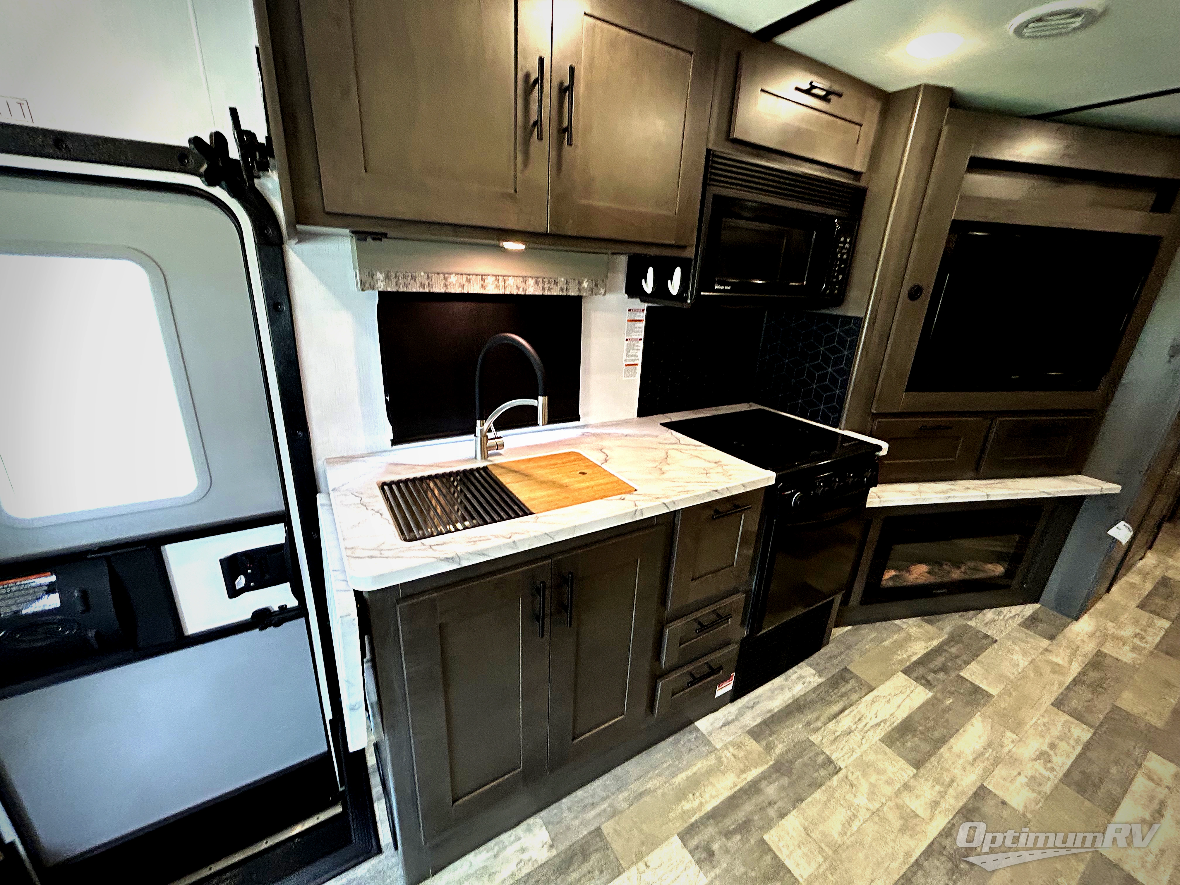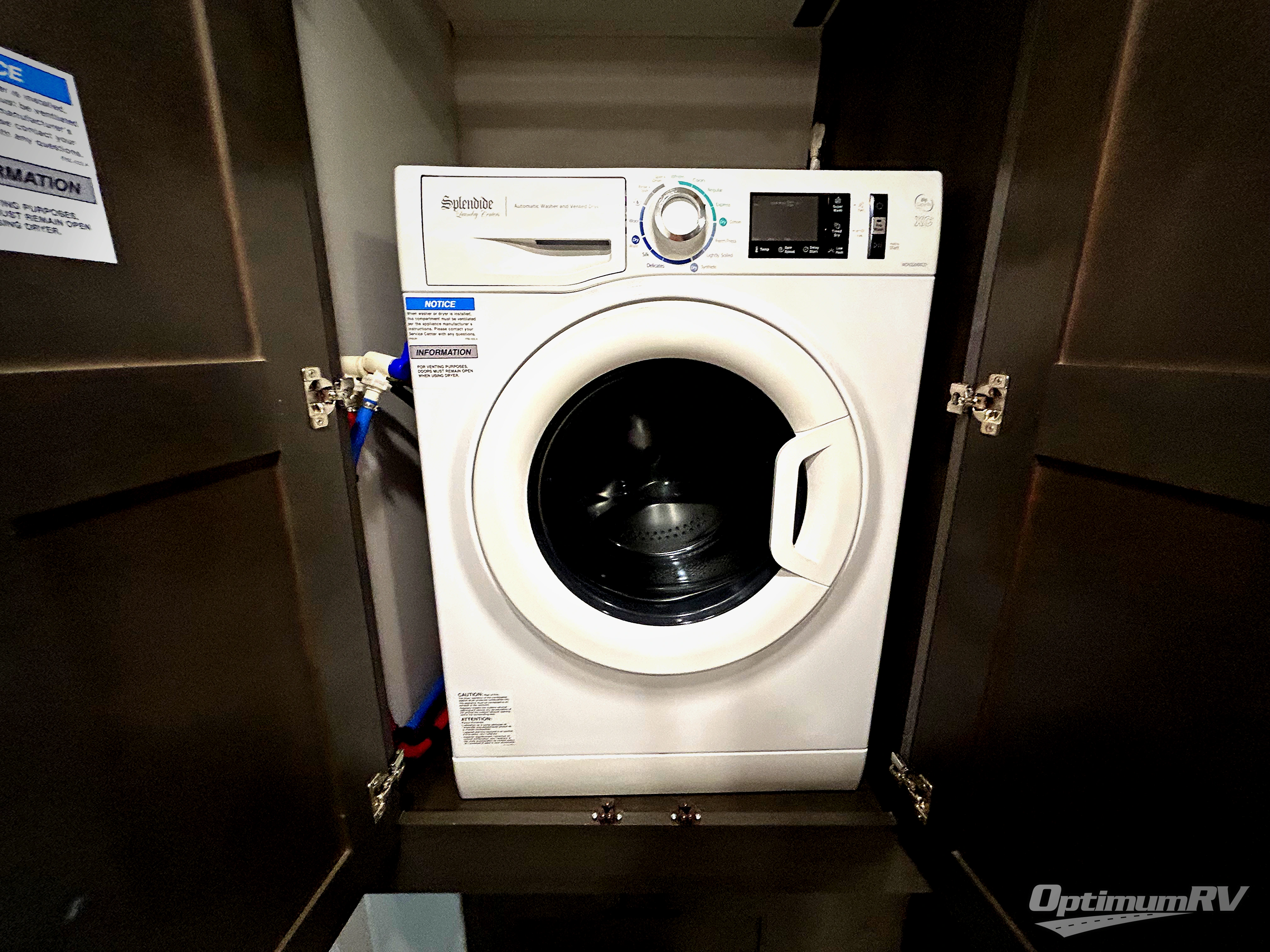 Spacious and inviting for couples or families, this FR3 Class A gas motorhome offers convenience throughout including a half bath for the kids and guests and a full rear bathroom for the owners. This full bathroom is located within the rear master suite where you will also find a king-size bed for relaxing. Once at your destination, you can quickly set up the power awning to relax outside while watching the exterior TV and visiting with other RVers. You might have decided to add the washer and dryer option in the bedroom, so a load of laundry might even get done. Once you are ready to fill your tummy, the full kitchen offers everything you need plus a residential microwave. You might even decide to relax on one of the theater seats after dinner as you watch the big game on the 40" LED 12V TV with a fireplace below.