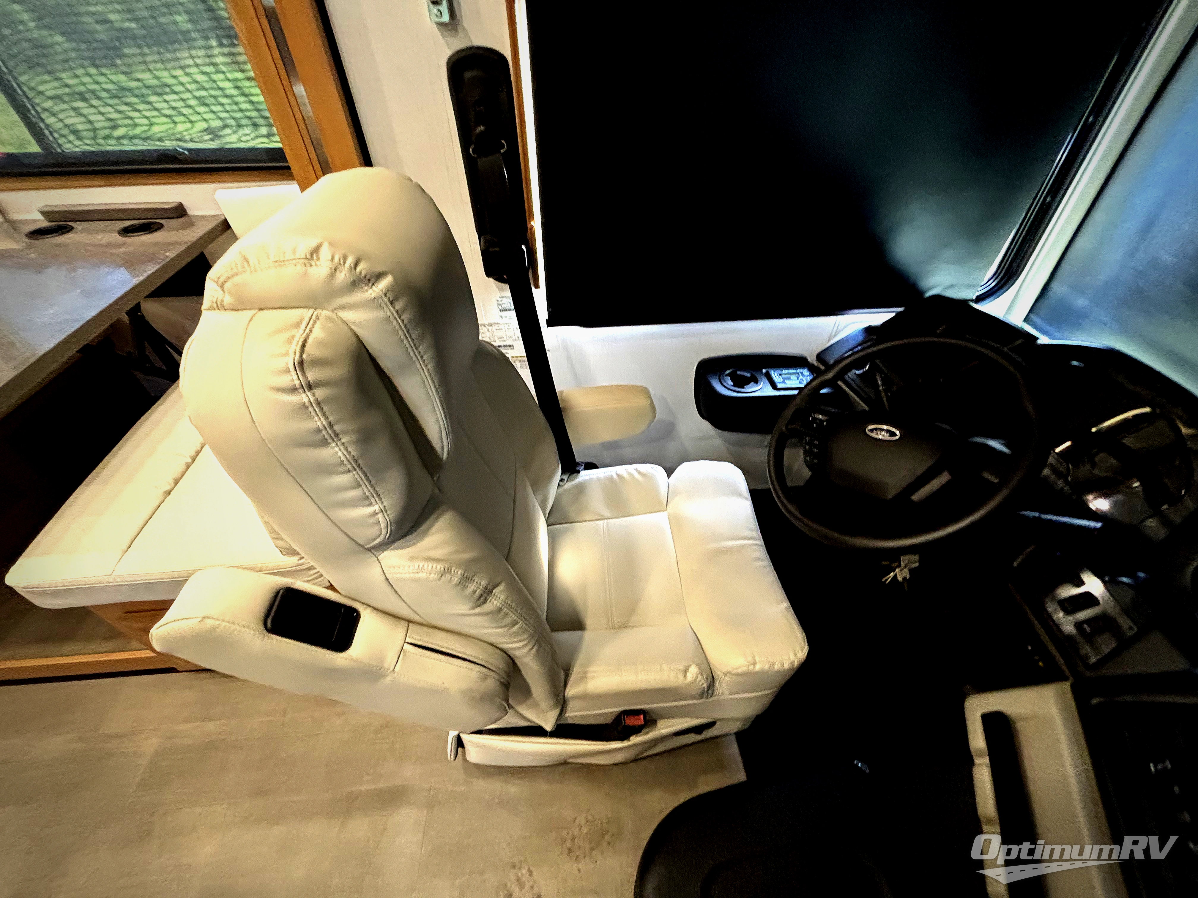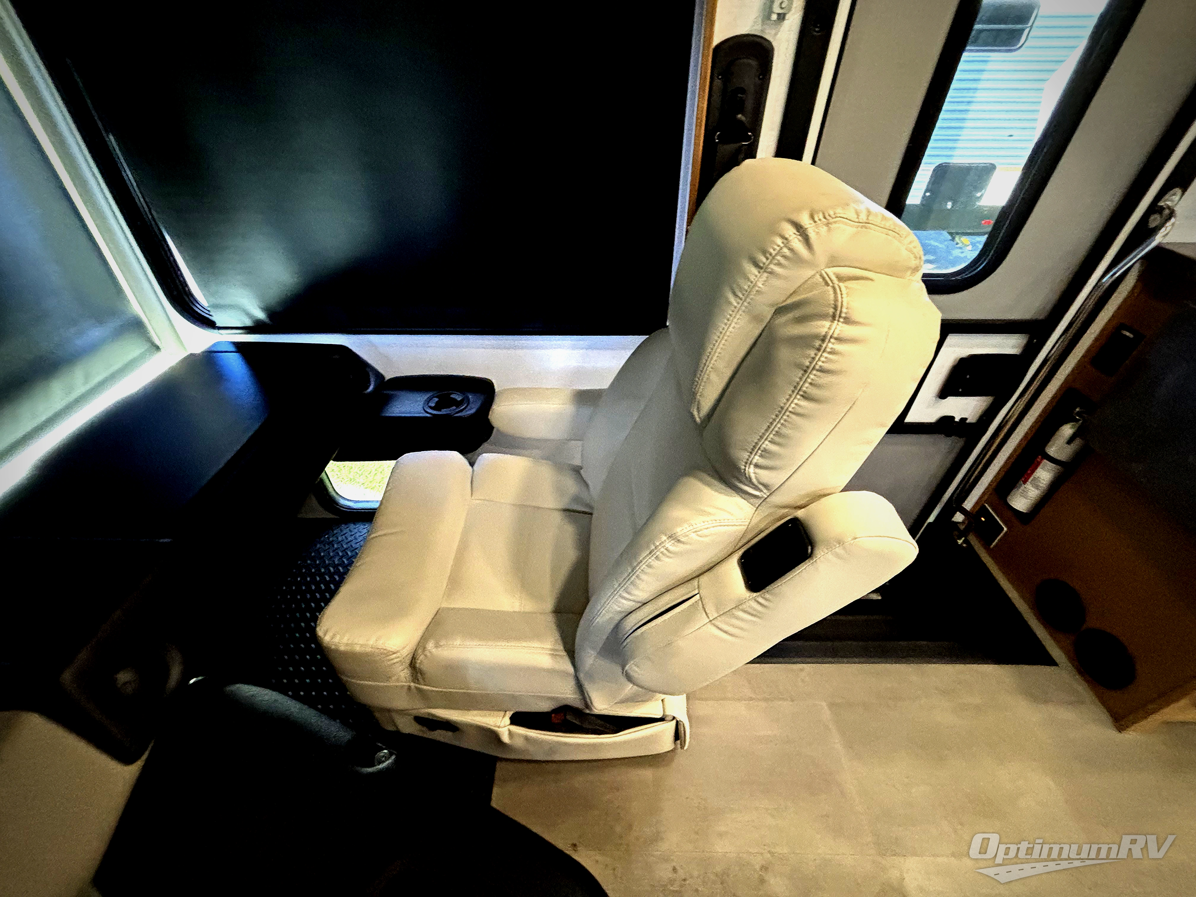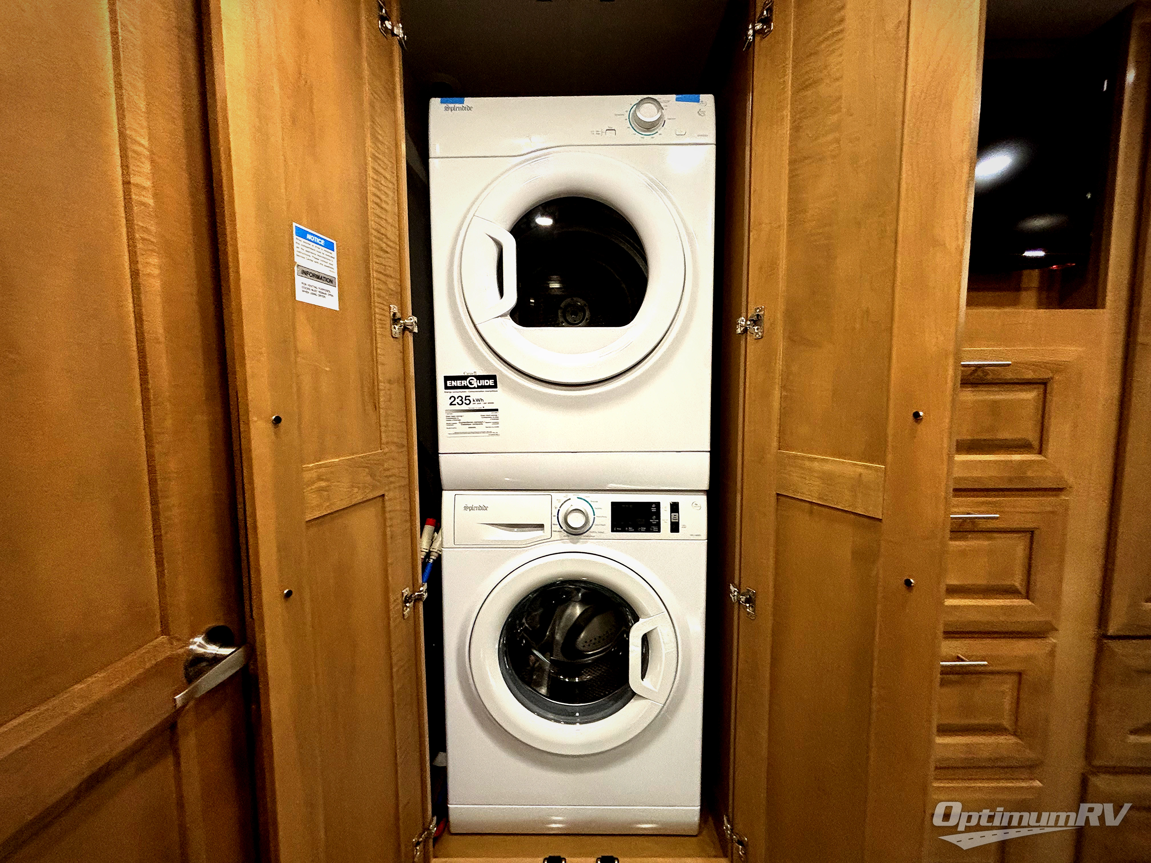 Comfort and convenience is found all throughout this motorhome! Starting with the full rear master bath that has a 42" x 30" shower with a seat and a dual sink vanity, plus it leads into the private bedroom. Inside the bedroom is a 72" x 80" king bed slide with overhead cabinets across from a dresser with overhead cabinets and a 32" LED TV, a wardrobe, and another wardrobe that is prepped to add an optional stackable washer and dryer. The half bathroom is conveniently near the fully equipped kitchen so you can get back to creating your best home cooked meals fast. Relax in true comfort each night by either playing games at the booth dinette or on the theater seating that comes with power recline, heat, and massage!