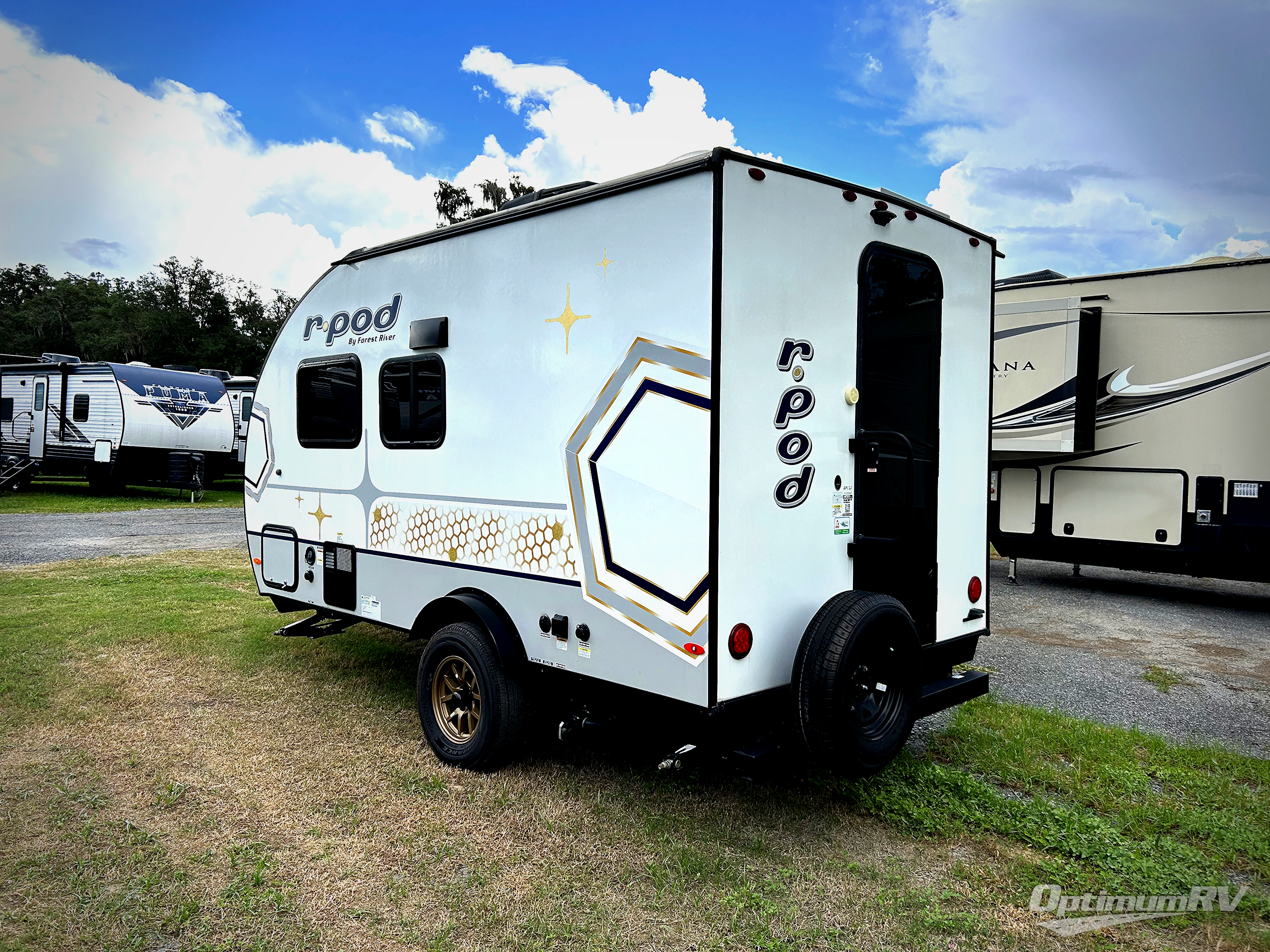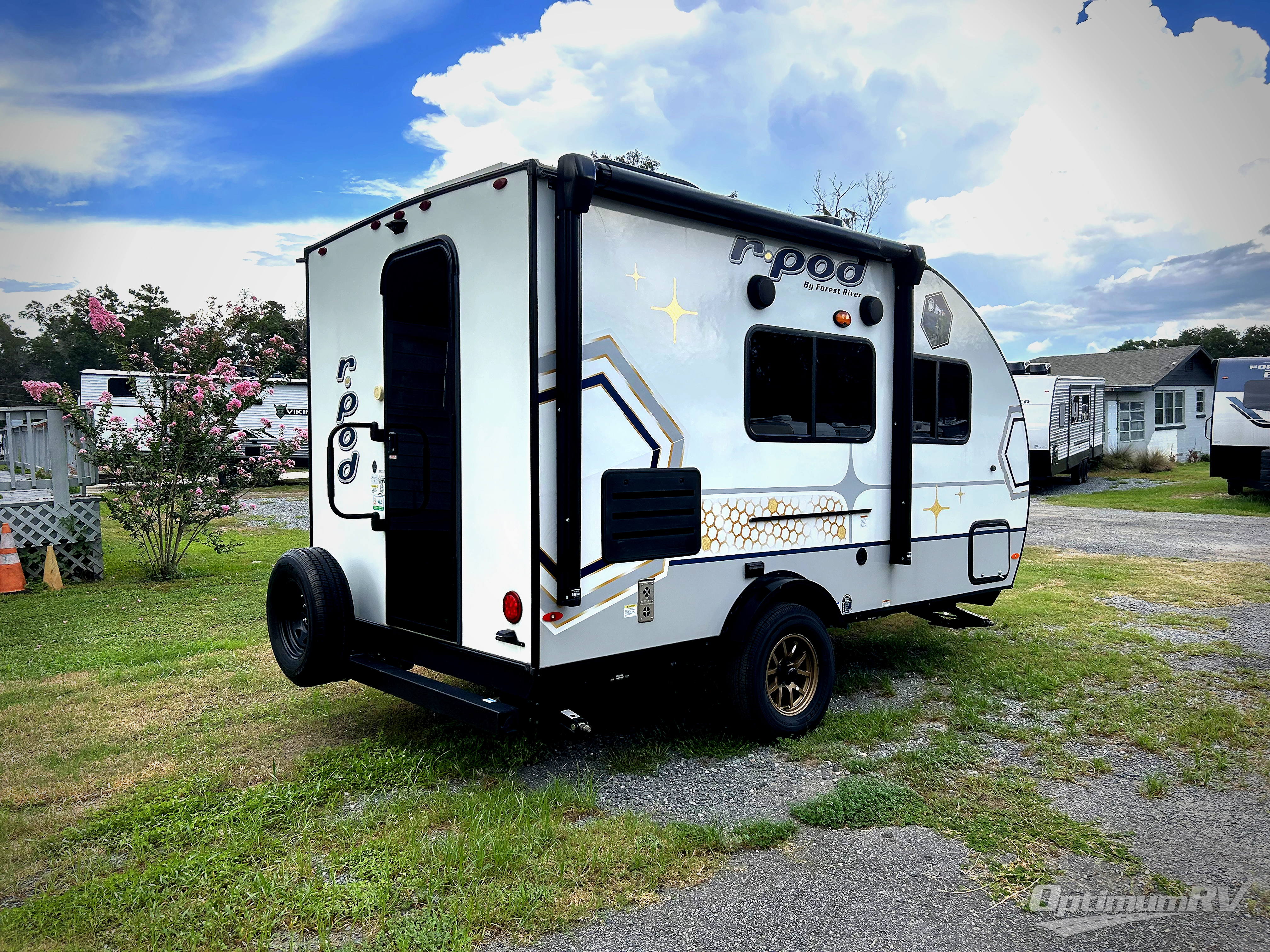 The Forest River R-Pod travel trailer is an excellent choice for lightweight towing! With convenient features like the Azdel composite panels that will completely withstand water damage and designer Carefree flooring that will make it easy to clean up messes, this is a great choice for easy living. The R-Pod has LED exterior lights, outside speakers, and self-adjusting brakes for convenience. Step inside to find decorative window treatments, shaker style cabinetry, seamless kitchen countertops, and a 6' 6" interior height to provide ample room to relax.