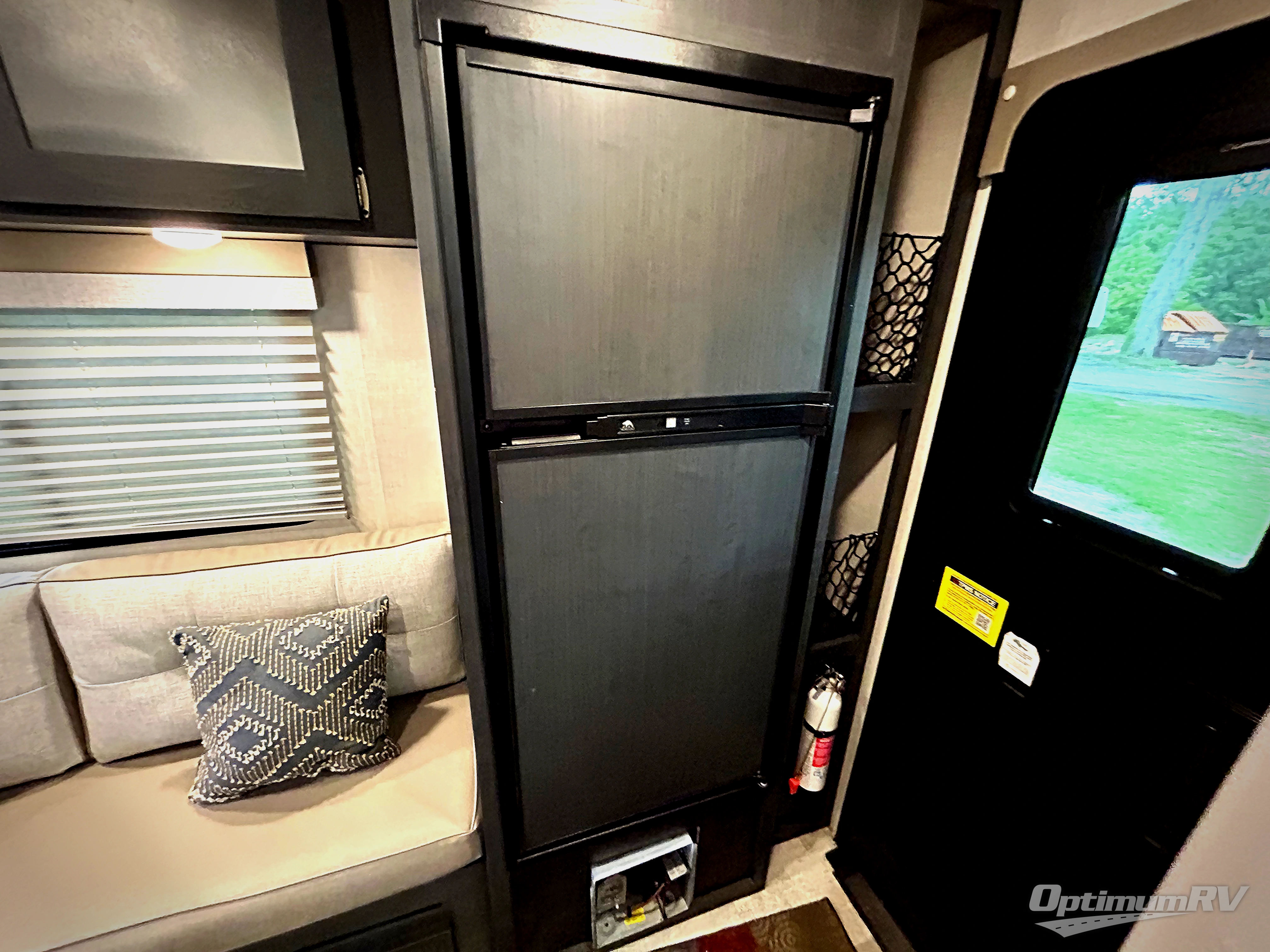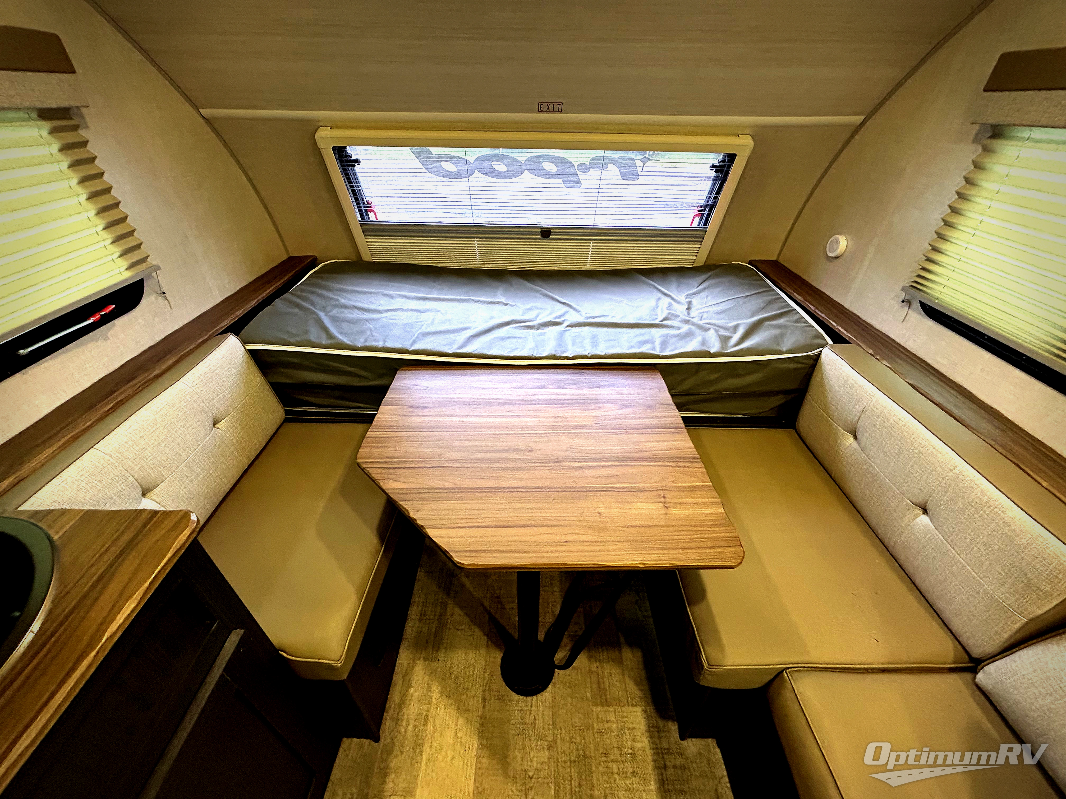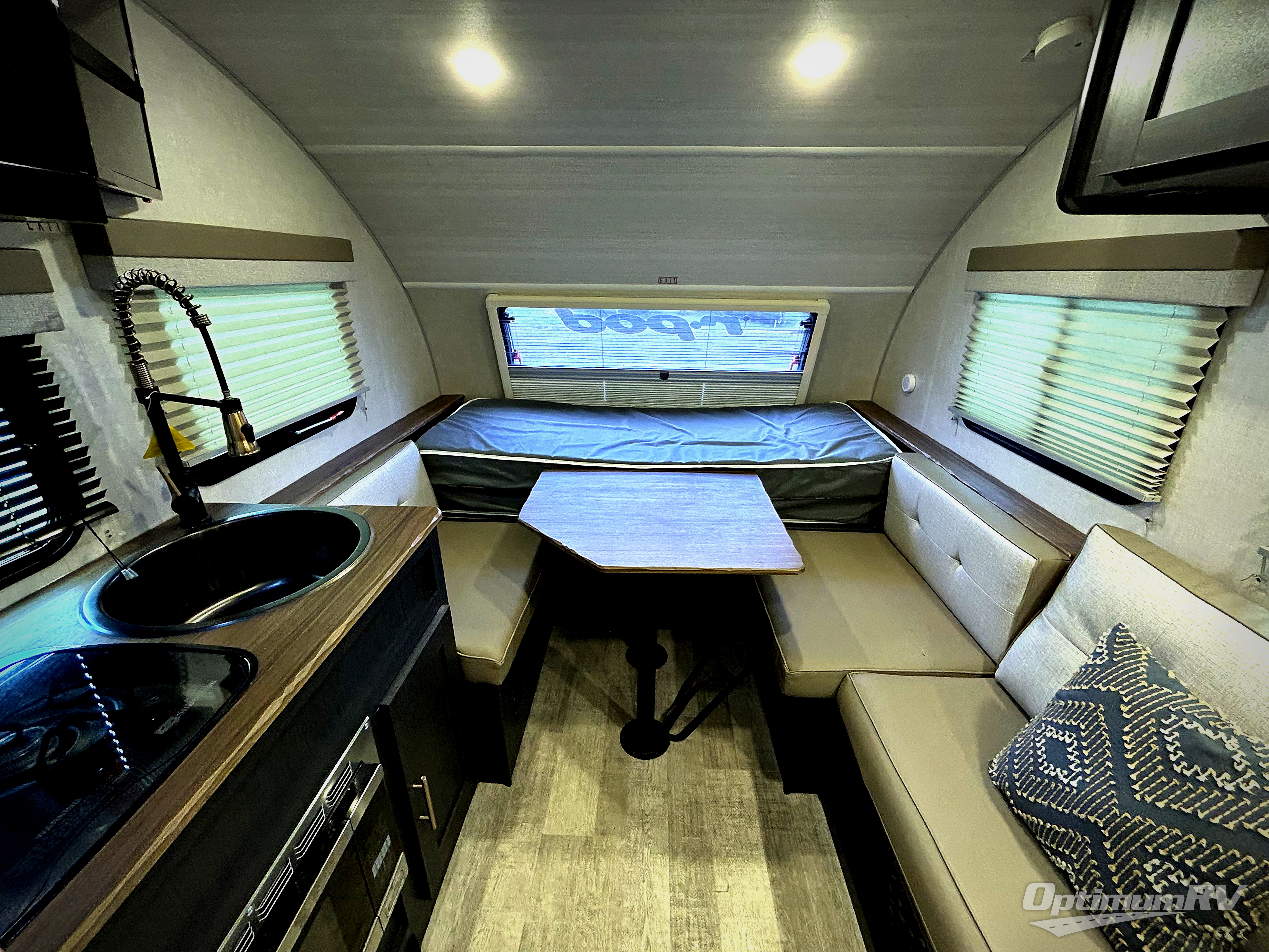 Weekends at the lake just got sweeter in this cozy R-Pod travel trailer. You can prepare your meals each day on the two burner recessed cooktop, or in the convection microwave. There is a sofa to relax on with a good book, plus a booth dinette up front that features a Murphy bed you can fold down at night. This model also includes a refrigerator to keep your perishables fresh, and a pantry to store snacks and dry goods.