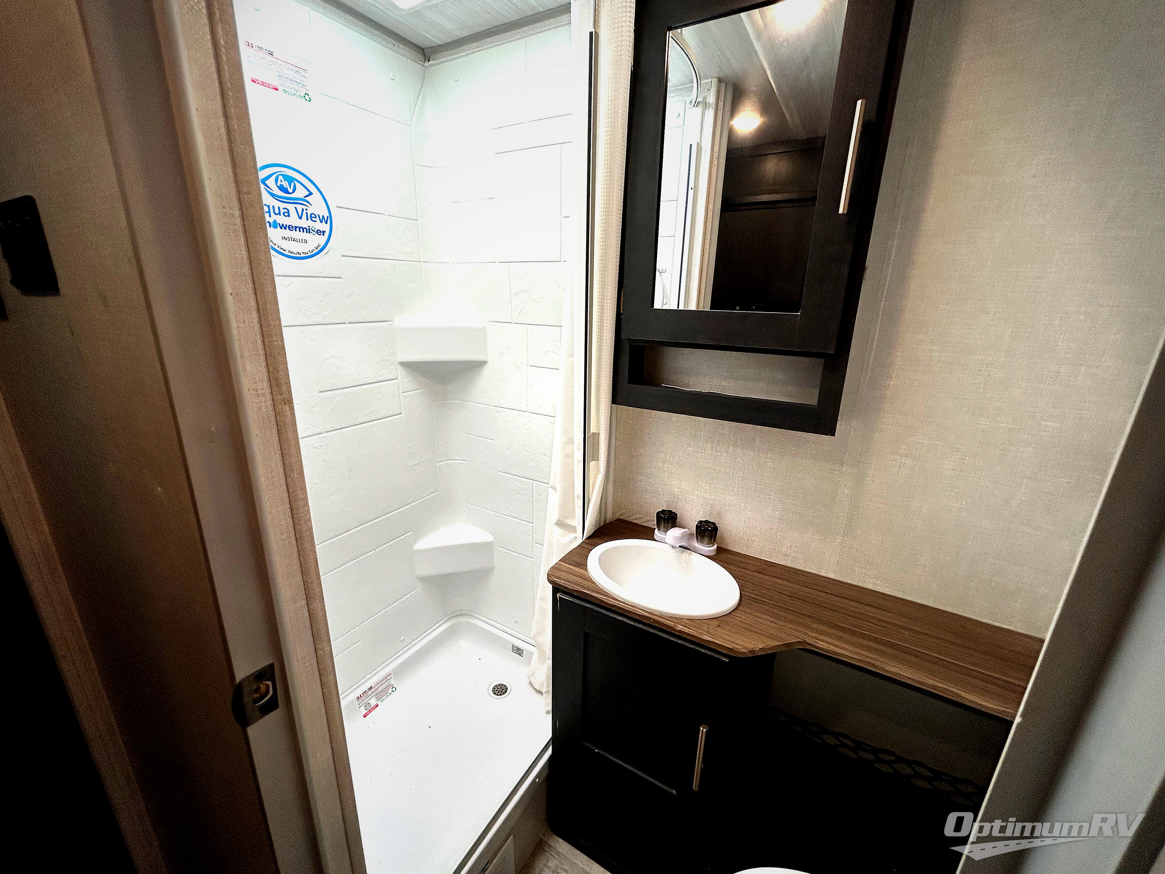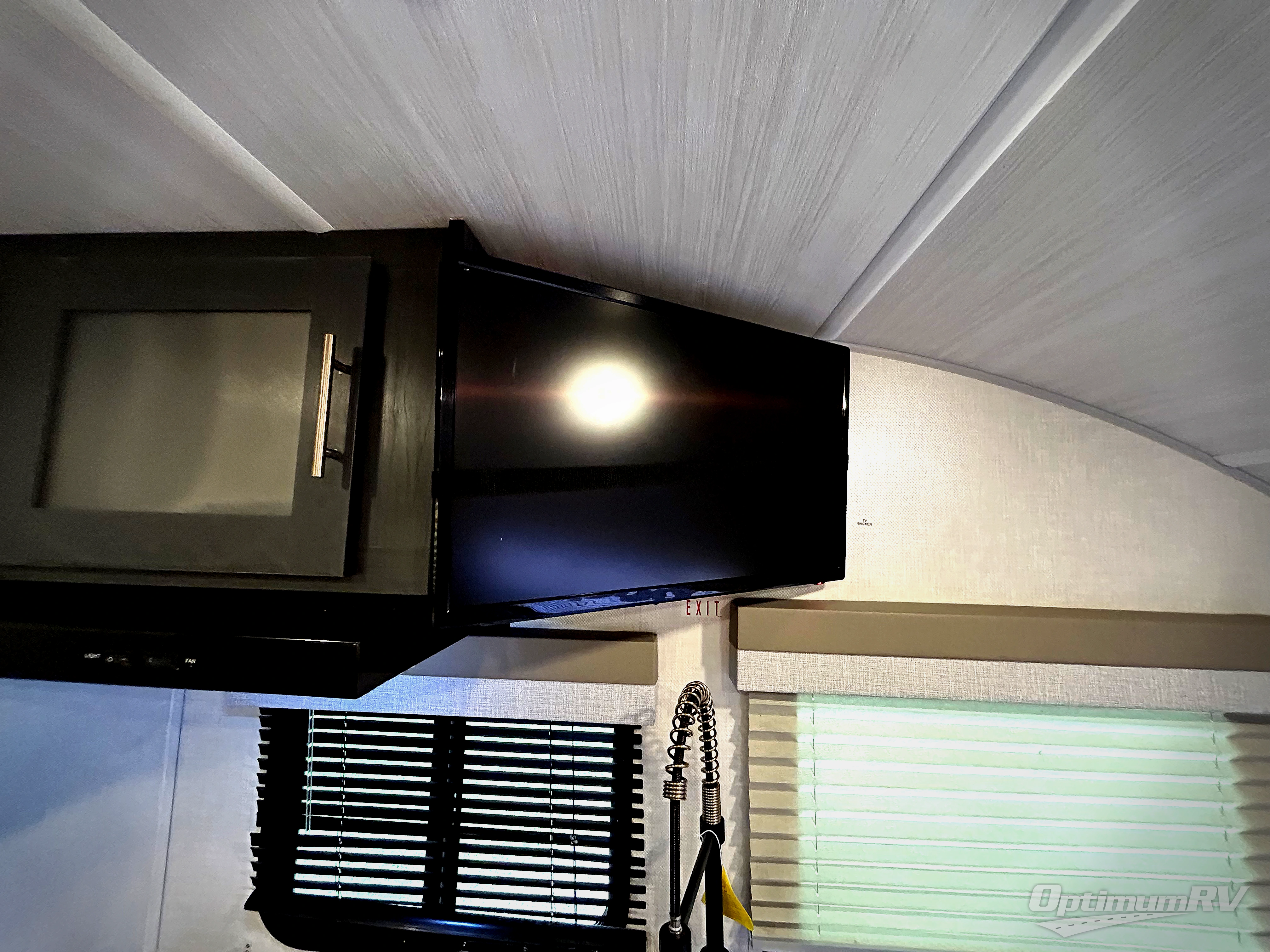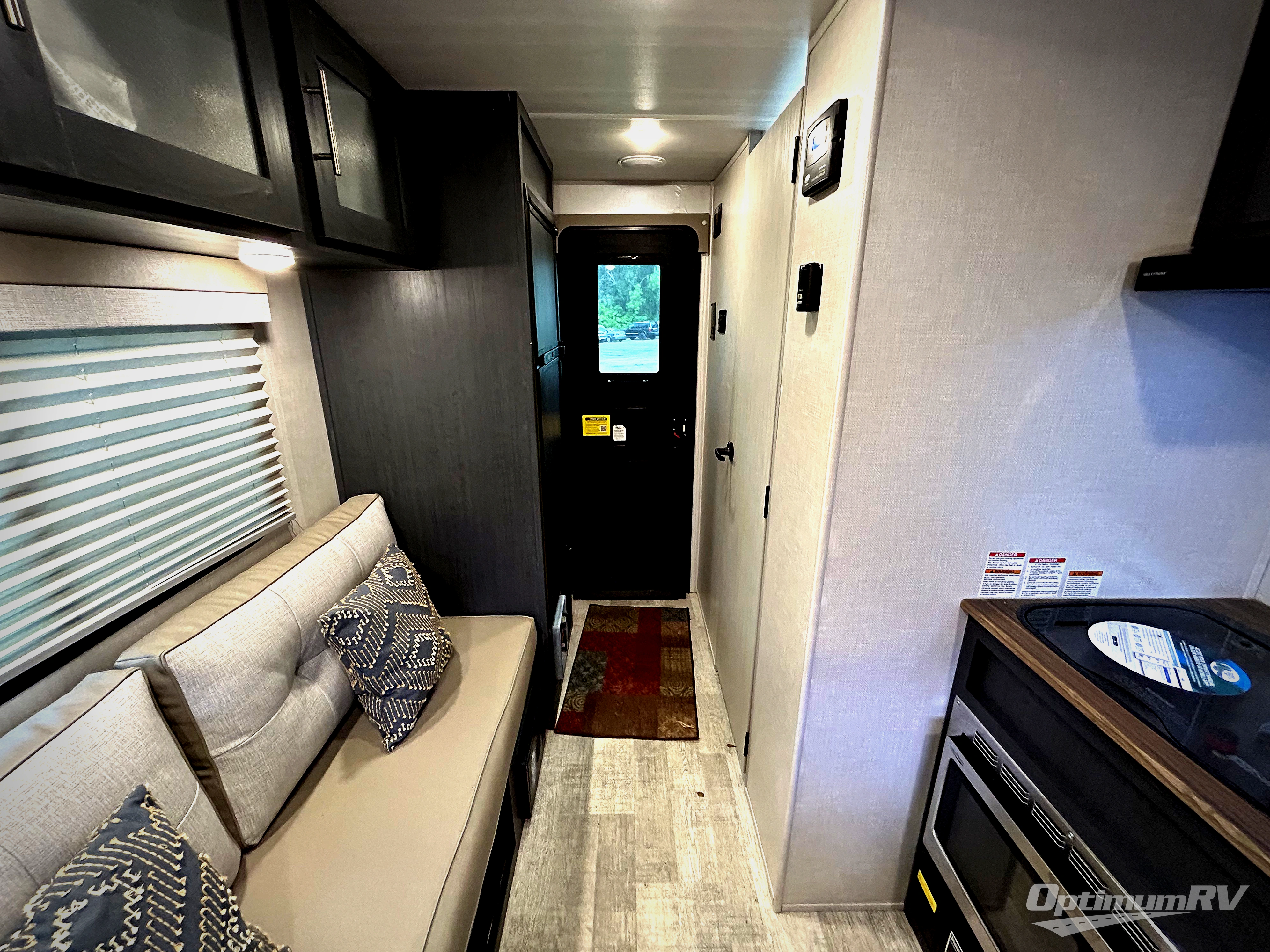 Weekends at the lake just got sweeter in this cozy R-Pod travel trailer. You can prepare your meals each day on the two burner recessed cooktop, or in the convection microwave. There is a sofa to relax on with a good book, plus a booth dinette up front that features a Murphy bed you can fold down at night. This model also includes a refrigerator to keep your perishables fresh, and a pantry to store snacks and dry goods.