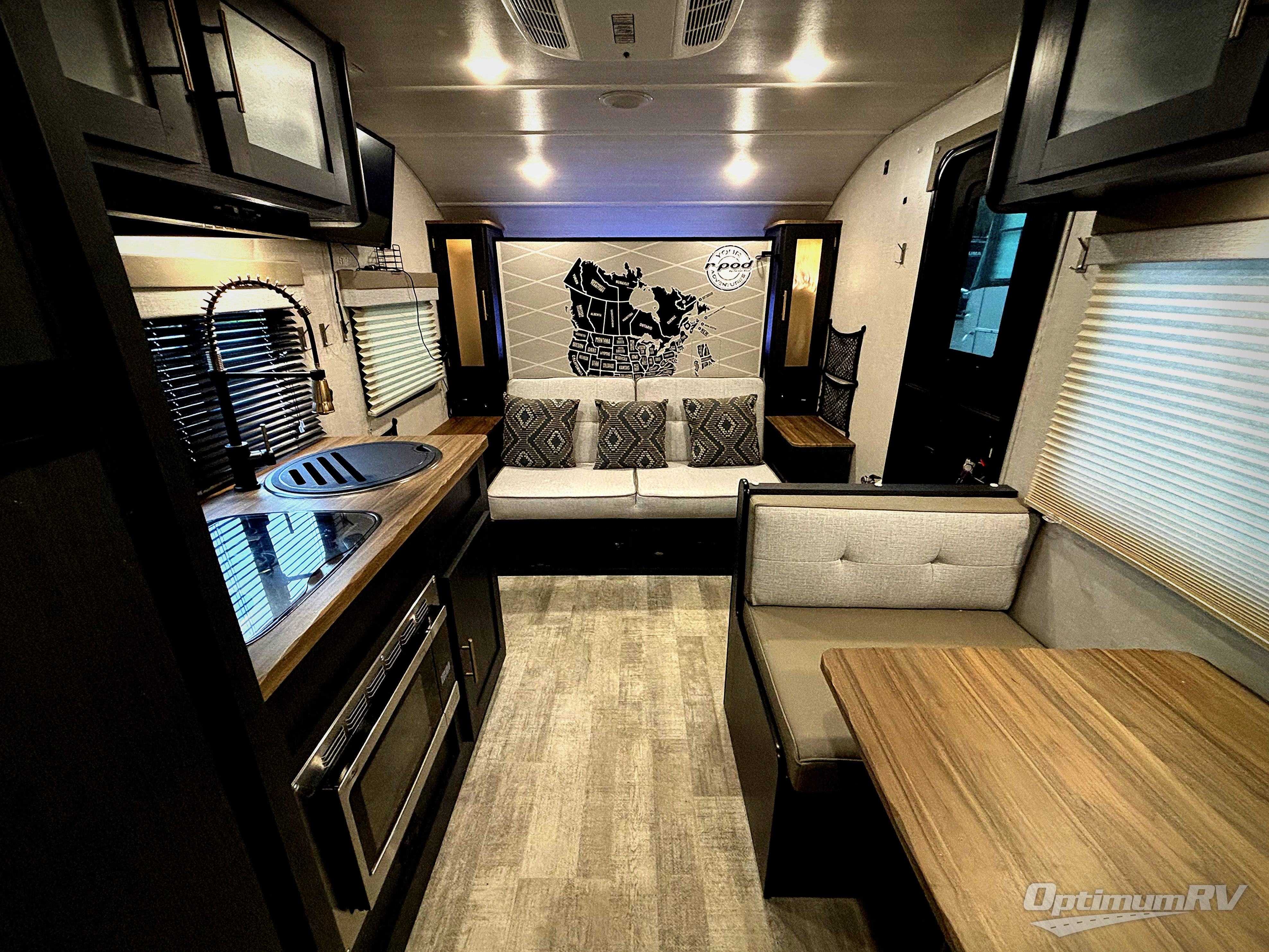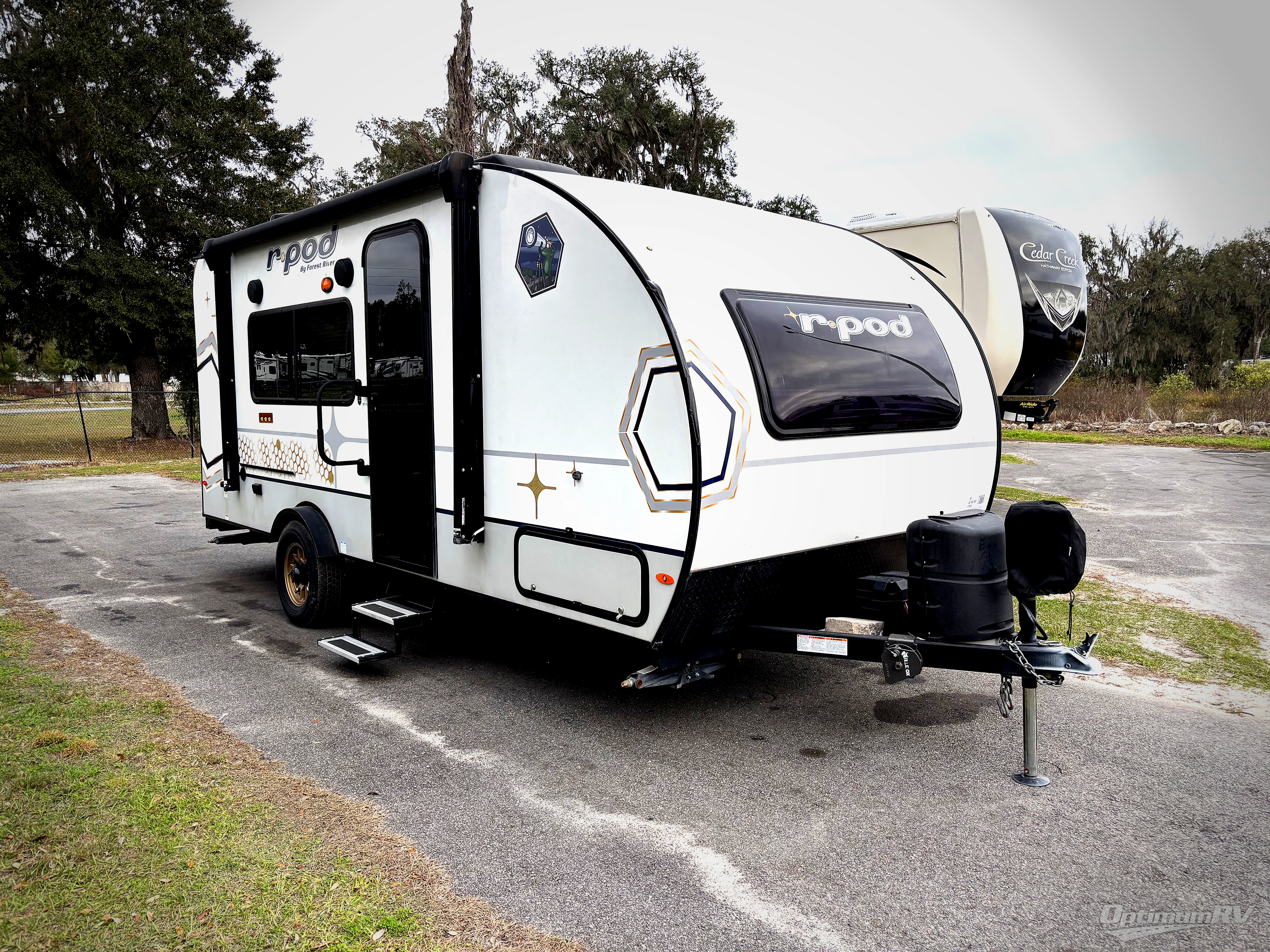 The Forest River R-Pod travel trailer is an excellent choice for lightweight towing! With convenient features like the Azdel composite panels that will completely withstand water damage and designer Carefree flooring that will make it easy to clean up messes, this is a great choice for easy living. The R-Pod has LED exterior lights, outside speakers, and self-adjusting brakes for convenience. Step inside to find decorative window treatments, shaker style cabinetry, seamless kitchen countertops, and a 6' 6" interior height to provide ample room to relax.