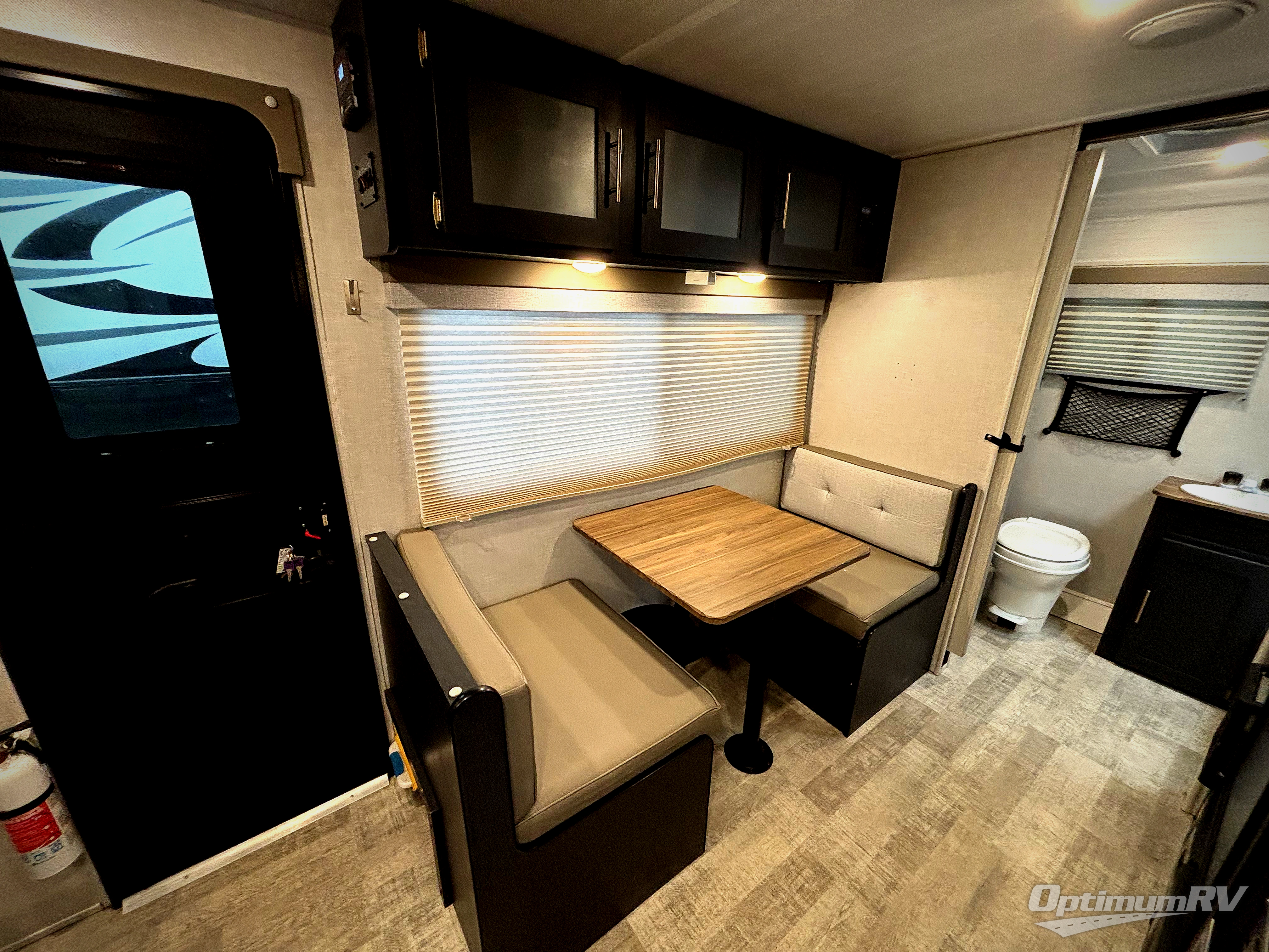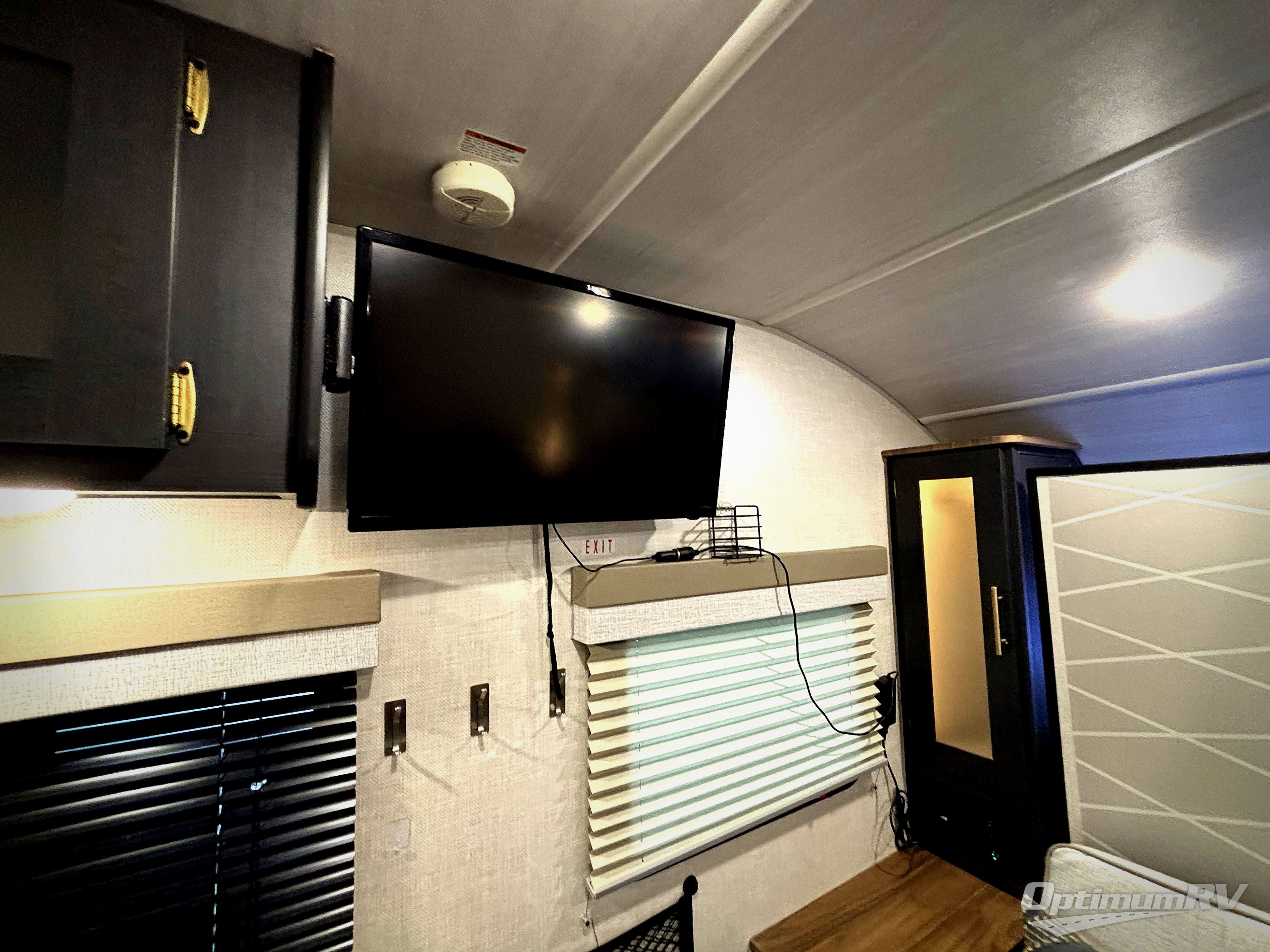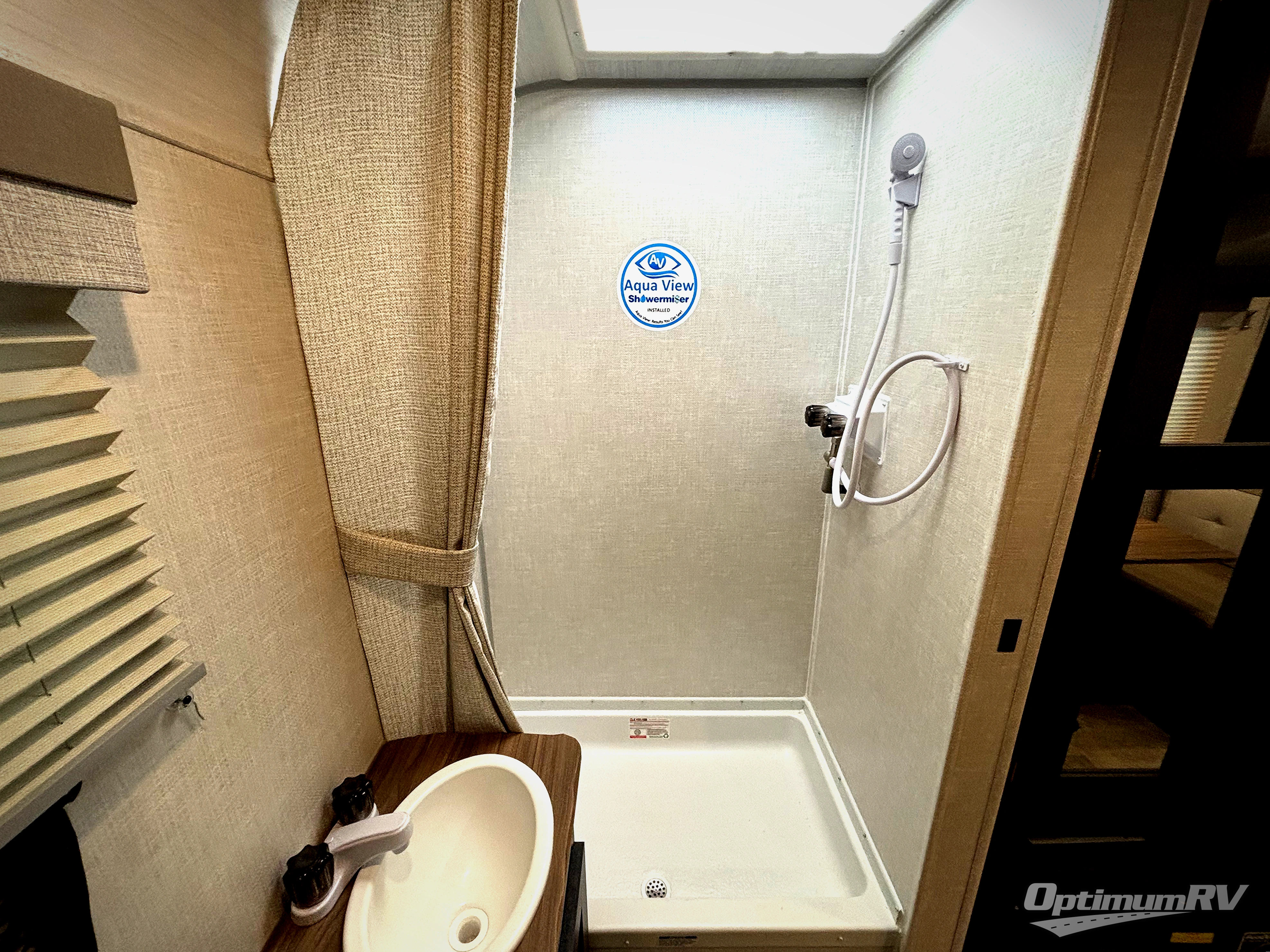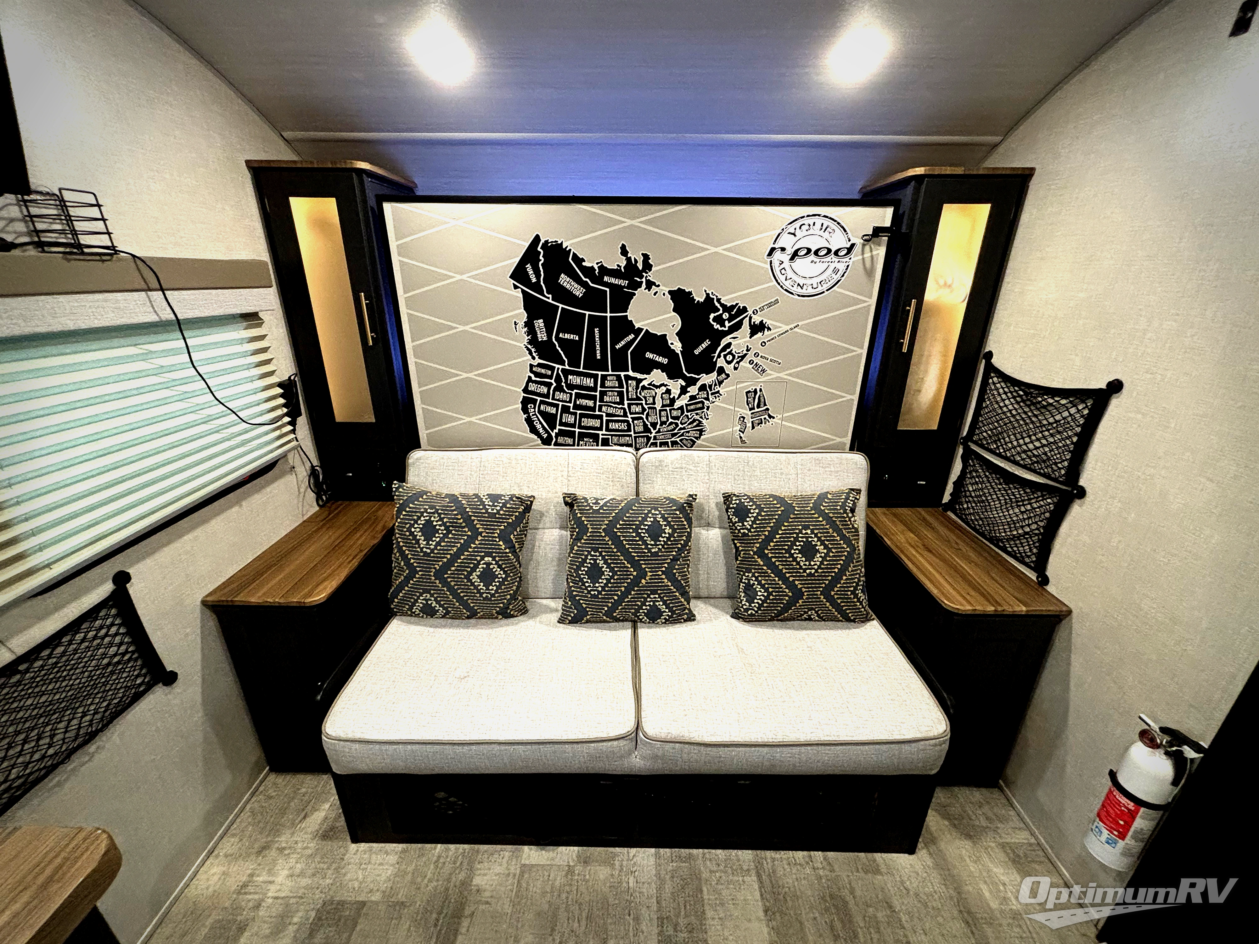 You're going to love all of the conveniences and versatility of this R-Pod travel trailer! The front Murphy bed can fold away to reveal a sofa which gives you a comfortable place to sit during the day and to sleep at night too. The rear full bath features everything you will need to get squeaky clean each morning, as well as a large wardrobe for you to store your linens. After you have whipped up your best meal with the two-burner cooktop or convection microwave, you can head to the 30" x 75" booth dinette and enjoy eating it there comfortably. There is plenty of storage space inside, but if you need more space, then you can use the exterior pass-through storage!
