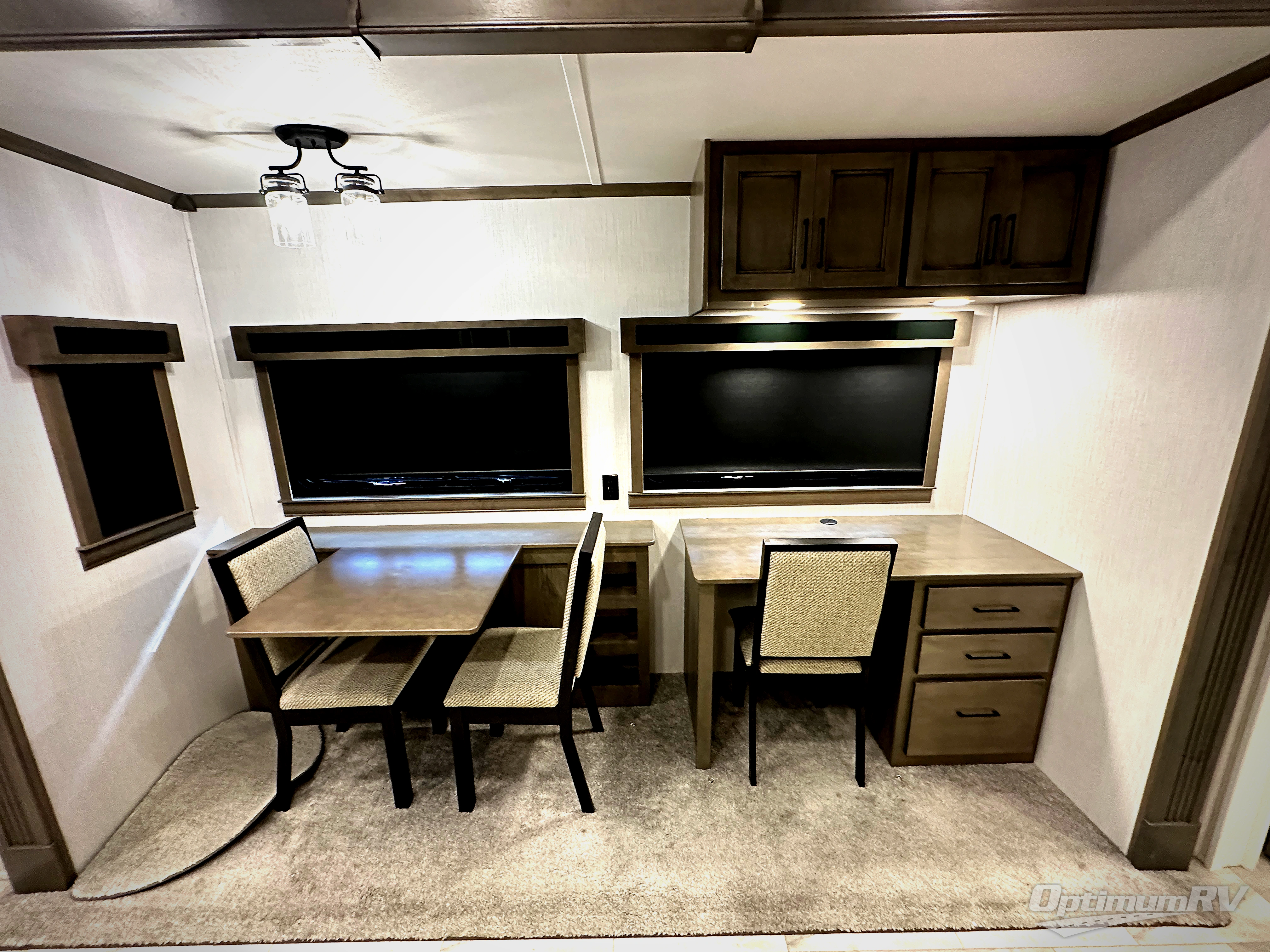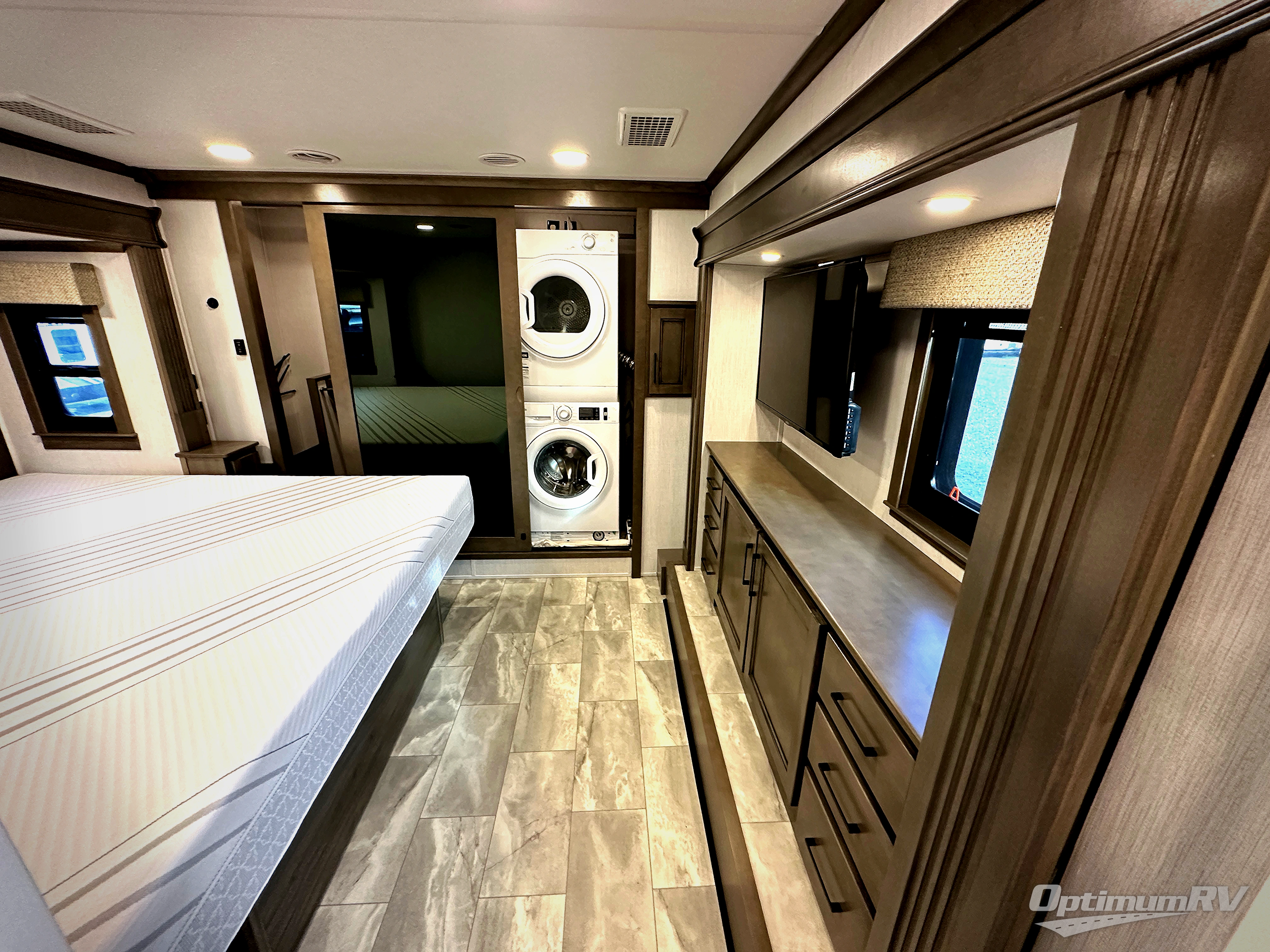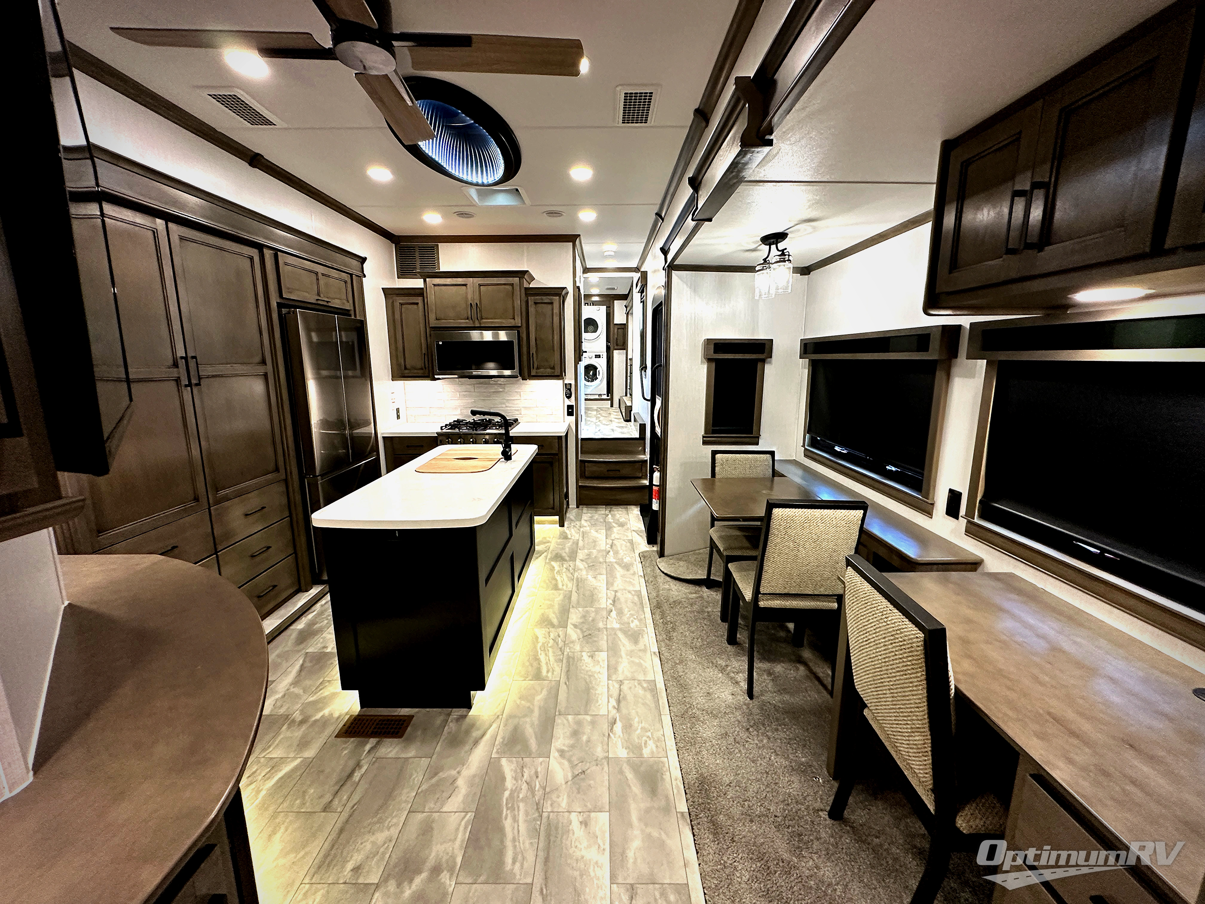 The Forest River RiverStone fifth wheels and toy haulers are luxurious units that have it all! You'll find an automatic six-point hydraulic level-up system to keep your unit in place, and there is preparation for a four-camera observation system. The King Wi-Fi Max router and omni-directional Wi-Fi antenna/extender will help you stay connected to the outside world, and you'll never have to overpack again since the Splendid “Astral” stackable washer and dryer will let you clean the small amount of clothes you've brought with you. Another high luxury is the Fischer Paykal dishwasher which will allow you to spend more time enjoying your camp life and less time cleaning up. Each unit is built with a Trail-Aire Road Armour suspension system, dual-pane frameless windows, a full docking station, a 190W solar panel, and a Firefly integrated touch control system.