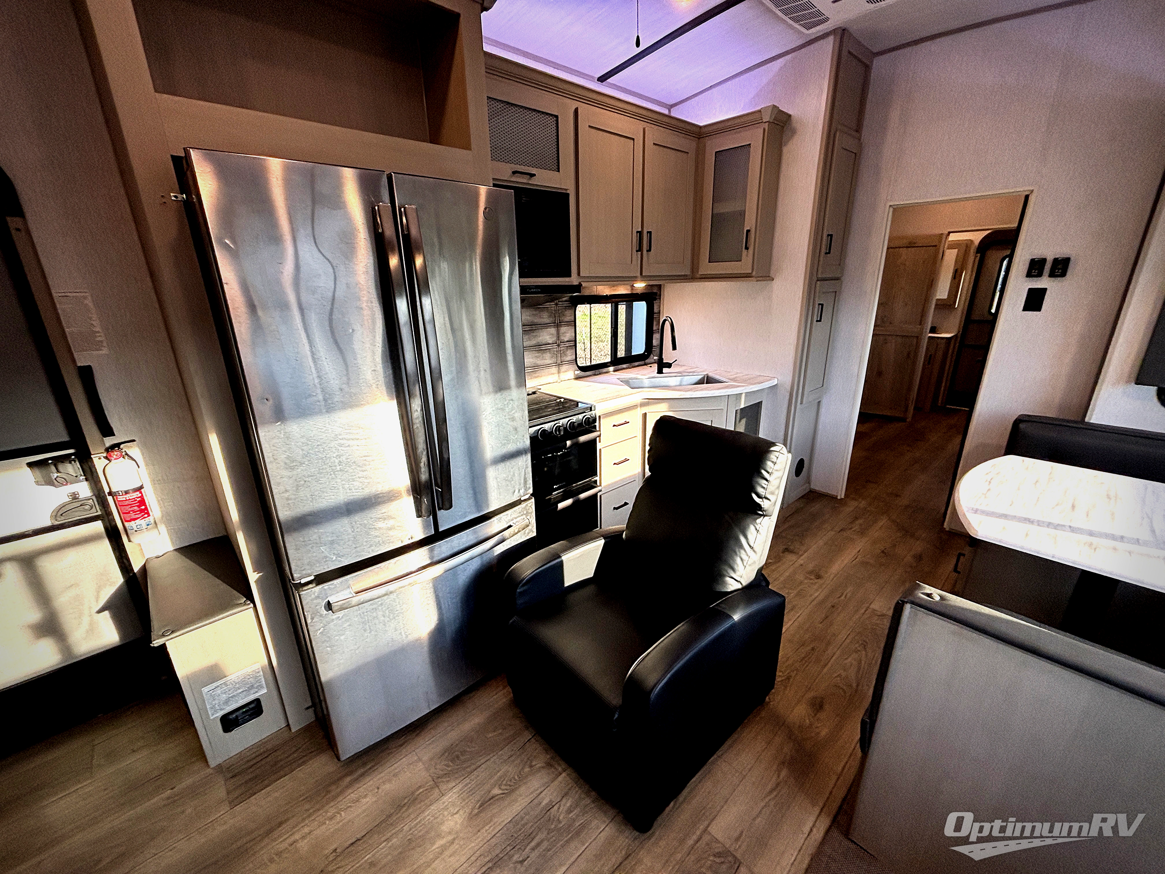 With two full bathrooms, everyone will stay clean in this fifth wheel! The double entry doors makes for a smooth flow of traffic and the unique rear entrance leads directly into the rear full bathroom. The private bunkhouse features not only one bunk above a Versa queen convertible bed/sofa, but also a second bunk above with storage. The U-shaped dinette is the perfect place for you to enjoy your meals at, play some card games and even transform into an extra sleeping space. The exterior has plenty of features you will love too like the outside kitchen/bar so you can have a good time cooking outdoors and a coax/TV hookup that you can add your own outside TV, plus an extra large pass-through storage area for your outdoor gear. When you're ready for bed, the custom king bed slide out will be waiting for you in the front private bedroom!