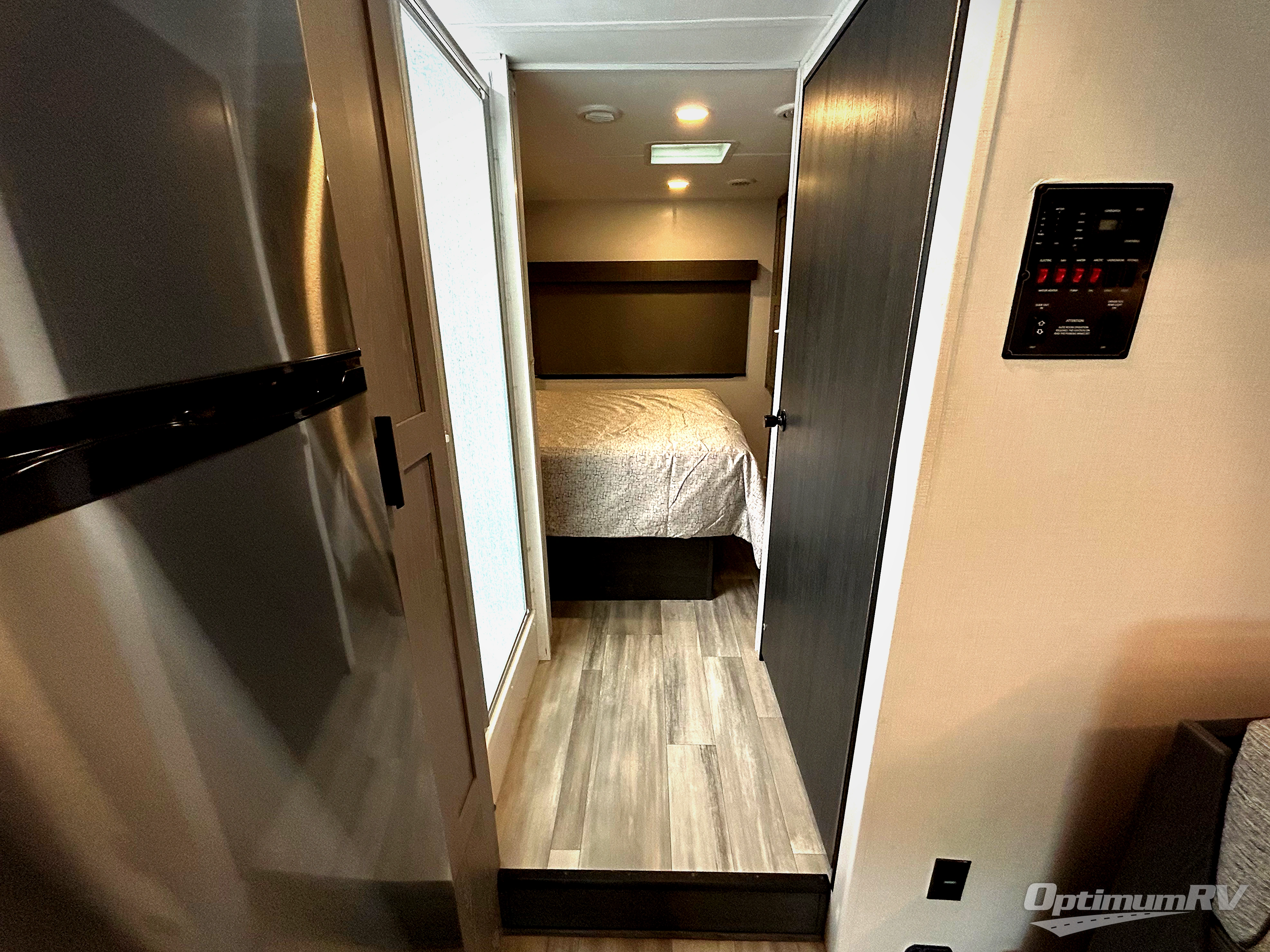 Pack your bags and pick your favorite destination then head out in this motorhome! The rear private bedroom has a 60" x 74" queen bed slide for more interior space, and a linen closet with wardrobes on either side of it. There is also a split-style bath with a private toilet and sink, and the shower is right across the hall. Prepare your best home cooked meals using the three burner cooktop, enjoy dining at the U-shaped dinette, and store any leftovers in the 10 cu. ft. 12V refrigerator. You will also appreciate a bit of flip-up countertop for more meal prepping space. Relax each evening on the 66" sofa, or you can replace it for the optional power theater seating. There is even a 60" x 80" bunk over the cab for extra sleeping or storage space!