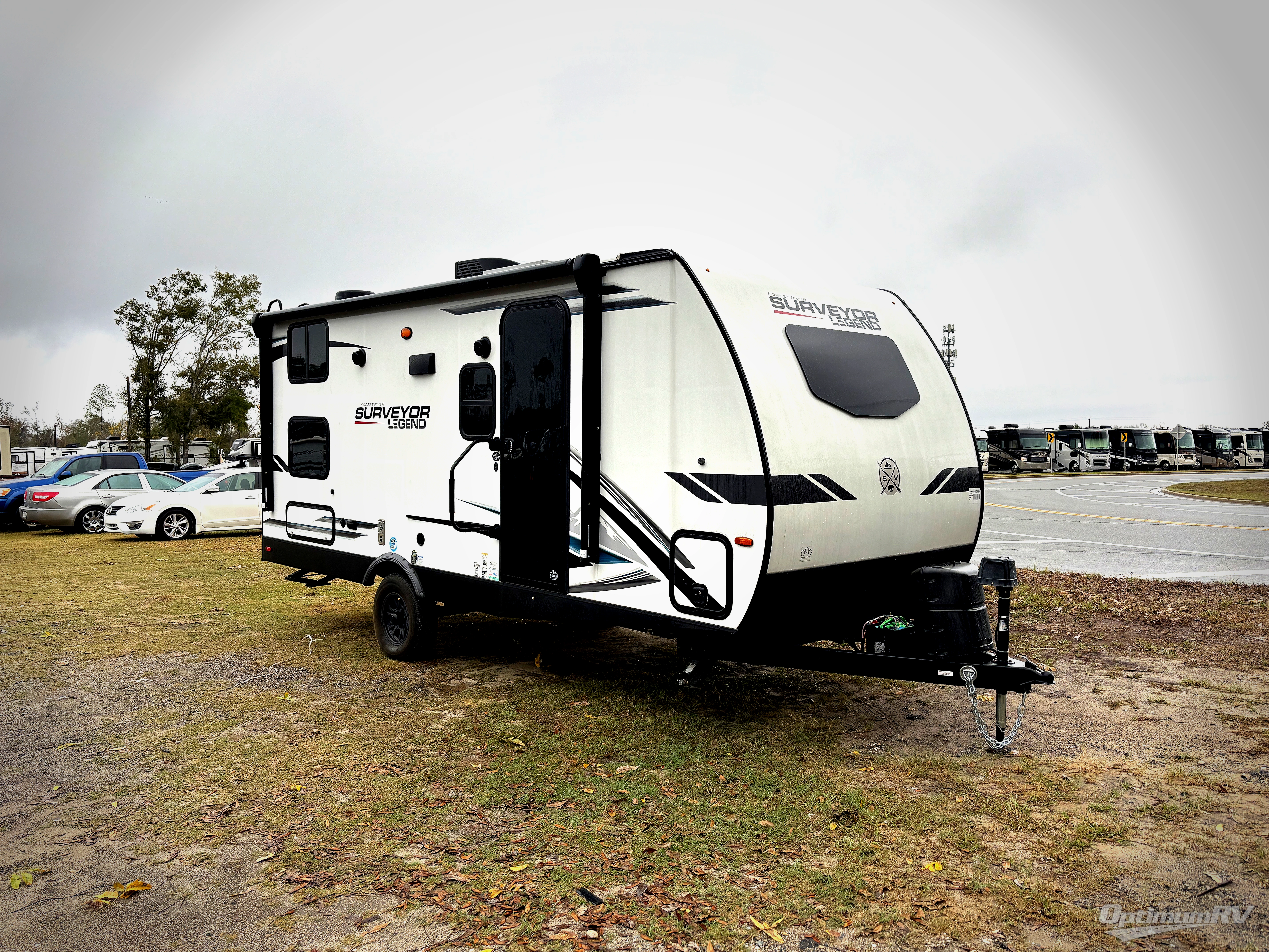 With any Surveyor Legend travel trailer by Forest River you will enjoy quality craftsmanship, convenient amenities, and at-home comforts. The Azdel composite panels provide a longer-lasting trailer, and the power tongue jack will get you back on the road in no-time. Each model includes the Surveyor Legend Package that comes standard with pleated night shades, an automotive style tinted front windshield, a multi-zone Bluetooth stereo, and more. You'll enjoy the one-touch electric awning with LED lights outdoors, plus rooftop solar prep and rear camera prep to make parking easier than ever. The inside will have you feeling right at home with Surf(x) seamless countertops, Congoleum designer carefree linoleum, residential faucets in the bath and kitchen, plus many more essentials you won't want to camp without.