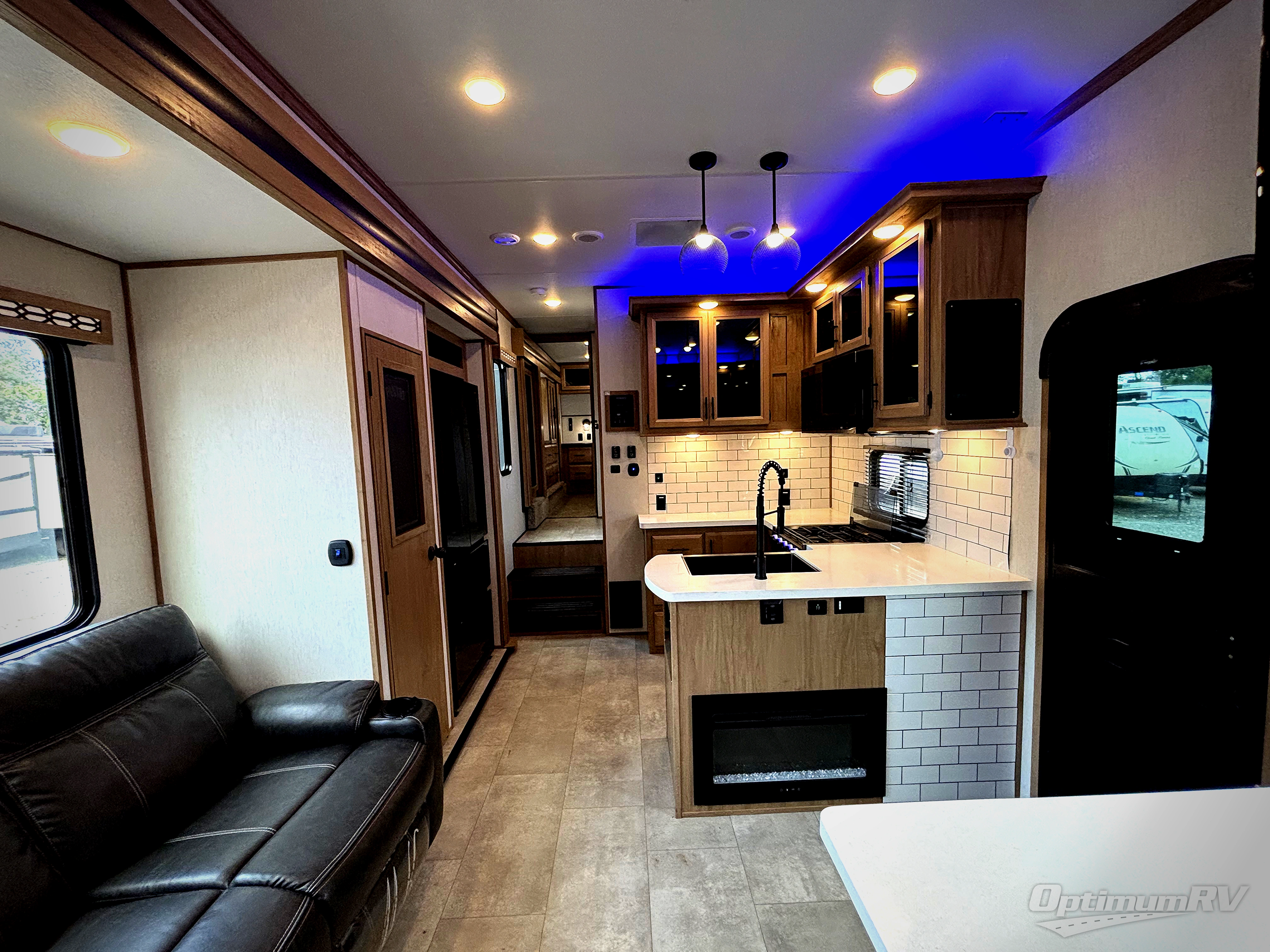 The whole gang can join in on the fun with this fifth wheel toy hauler! Everyone will have a comfortable place to sleep between the king bed in the front private bedroom, the raised queen bed above the flip-up sofas as well as loft space in the garage area, plus you can even use the sofa in the living area if needed. The large kitchen pantry is big enough to hold your favorite snacks and the dinette with bench seat is another place to enjoy your meals comfortably. You are sure to appreciate that this unit features two entry/exit doors as well as the rear ramp making it easy to load and unload, and when needing access to the garage space with all of your gear you don't have to come through the main living area. Two awnings offer you plenty of protected outdoor space so you can enjoy the fresh air as much as you like, even if the weather isn't perfect.