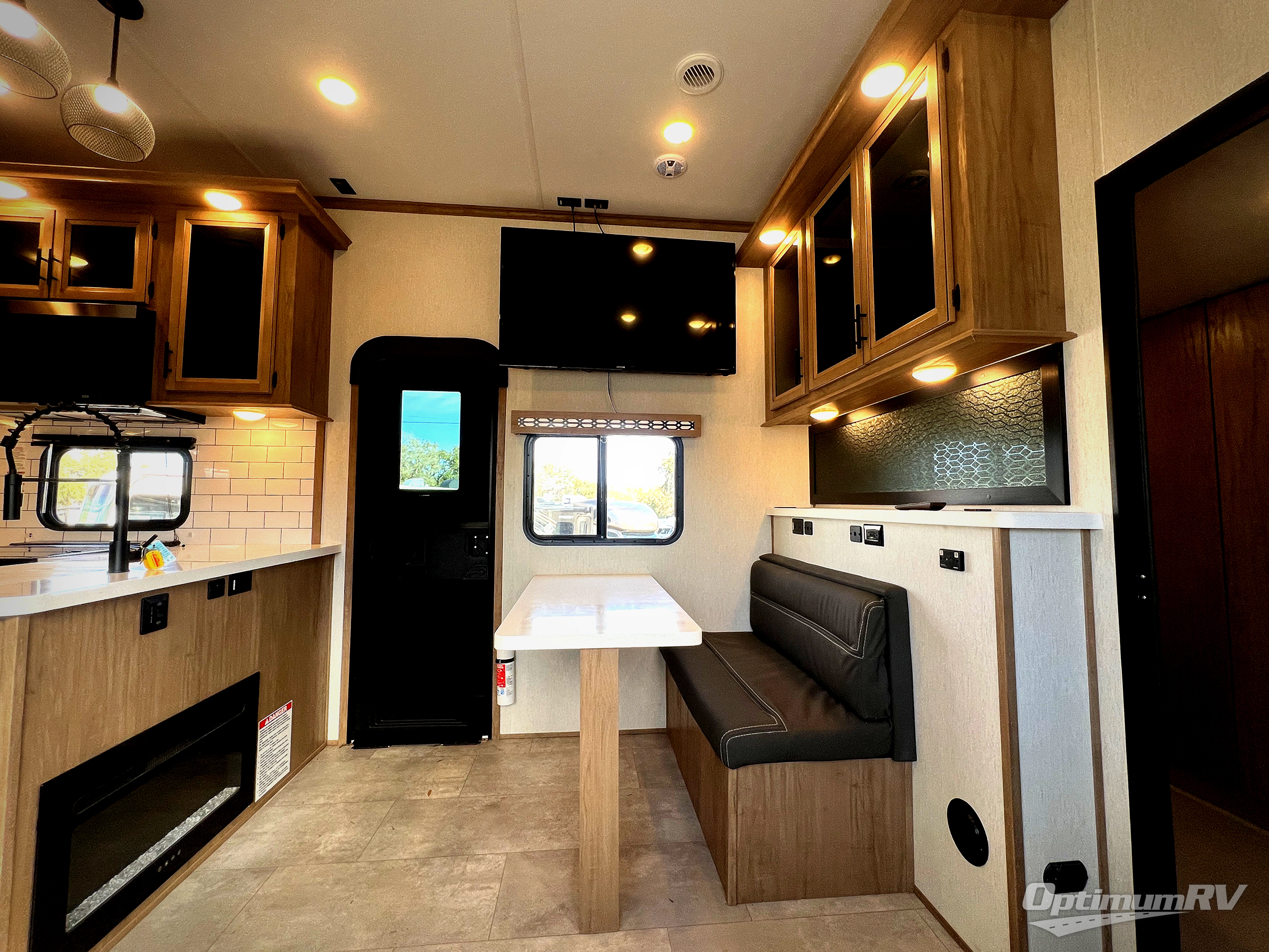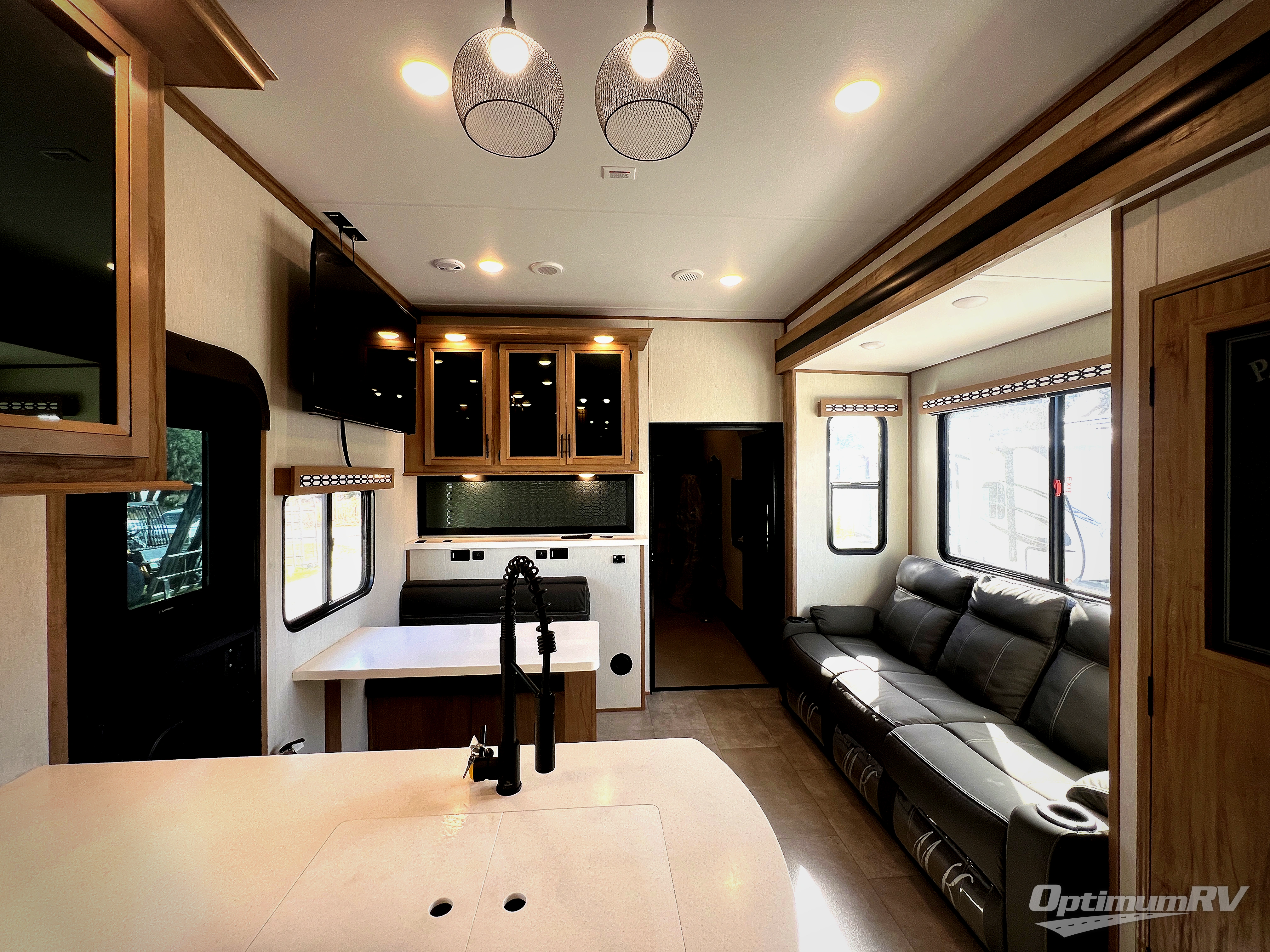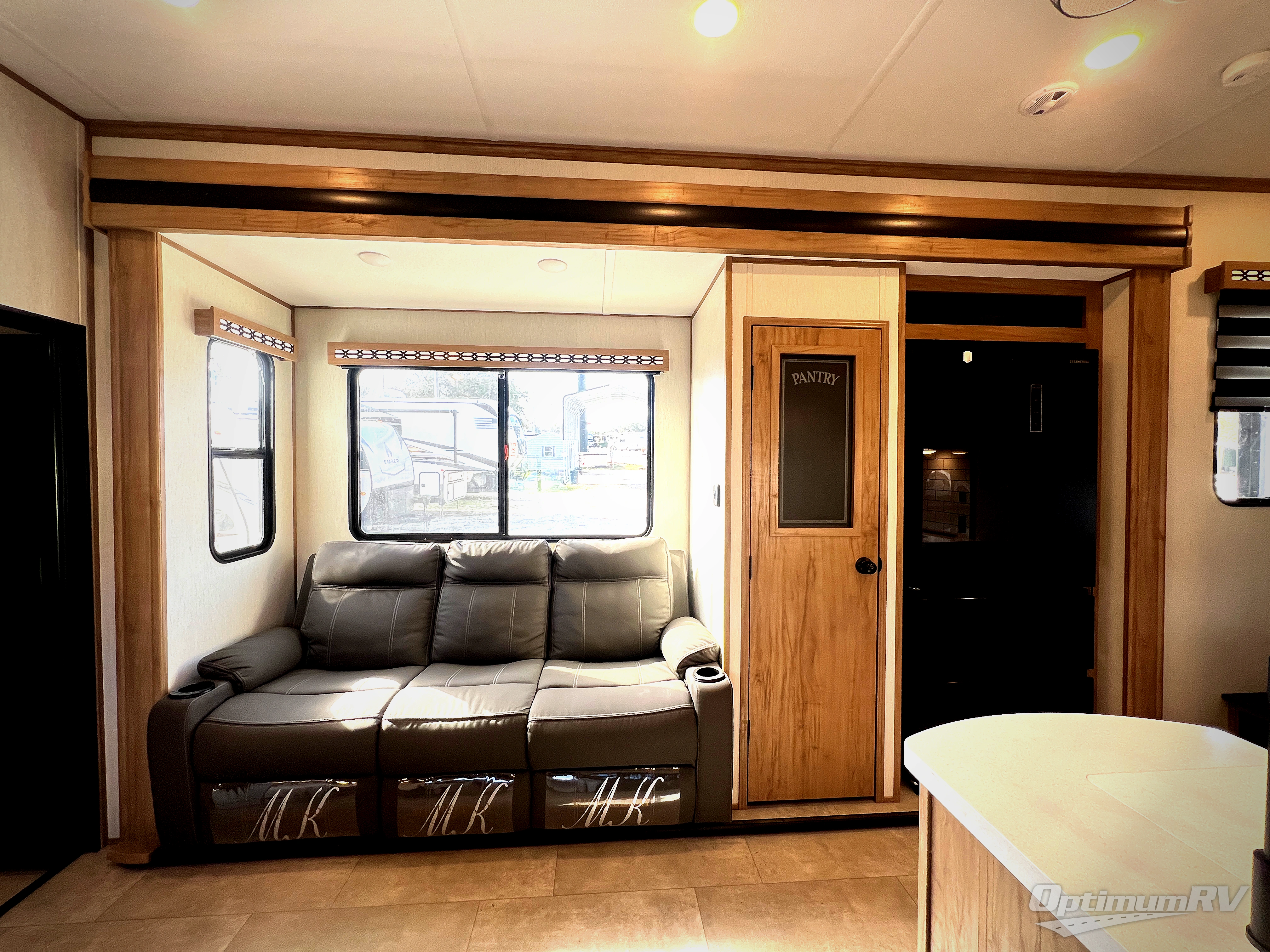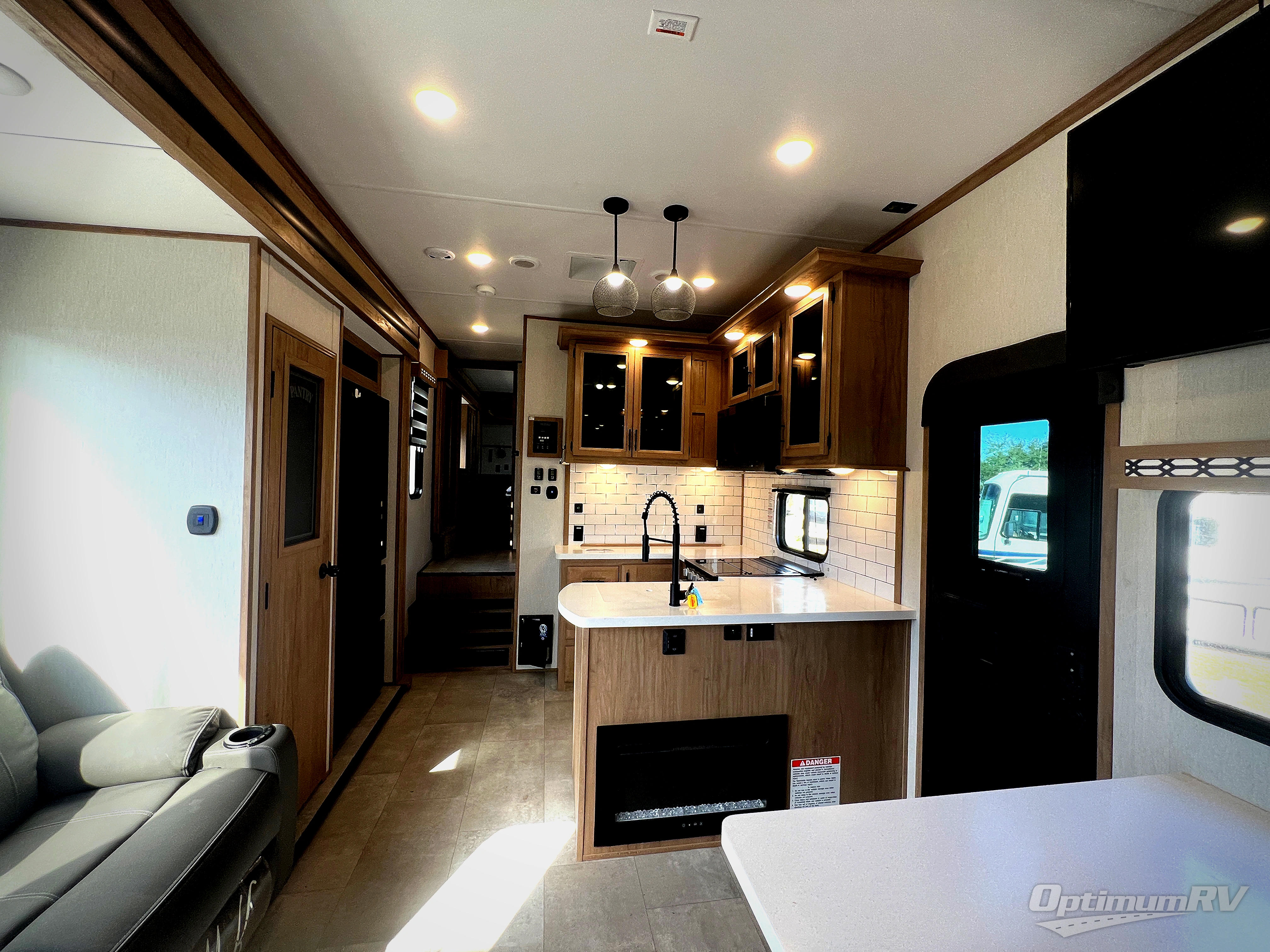 The whole gang can join in on the fun with this fifth wheel toy hauler! Everyone will have a comfortable place to sleep between the king bed in the front private bedroom, the raised queen bed above the flip-up sofas as well as loft space in the garage area, plus you can even use the sofa in the living area if needed. The large kitchen pantry is big enough to hold your favorite snacks and the dinette with bench seat is another place to enjoy your meals comfortably. You are sure to appreciate that this unit features two entry/exit doors as well as the rear ramp making it easy to load and unload, and when needing access to the garage space with all of your gear you don't have to come through the main living area. Two awnings offer you plenty of protected outdoor space so you can enjoy the fresh air as much as you like, even if the weather isn't perfect.