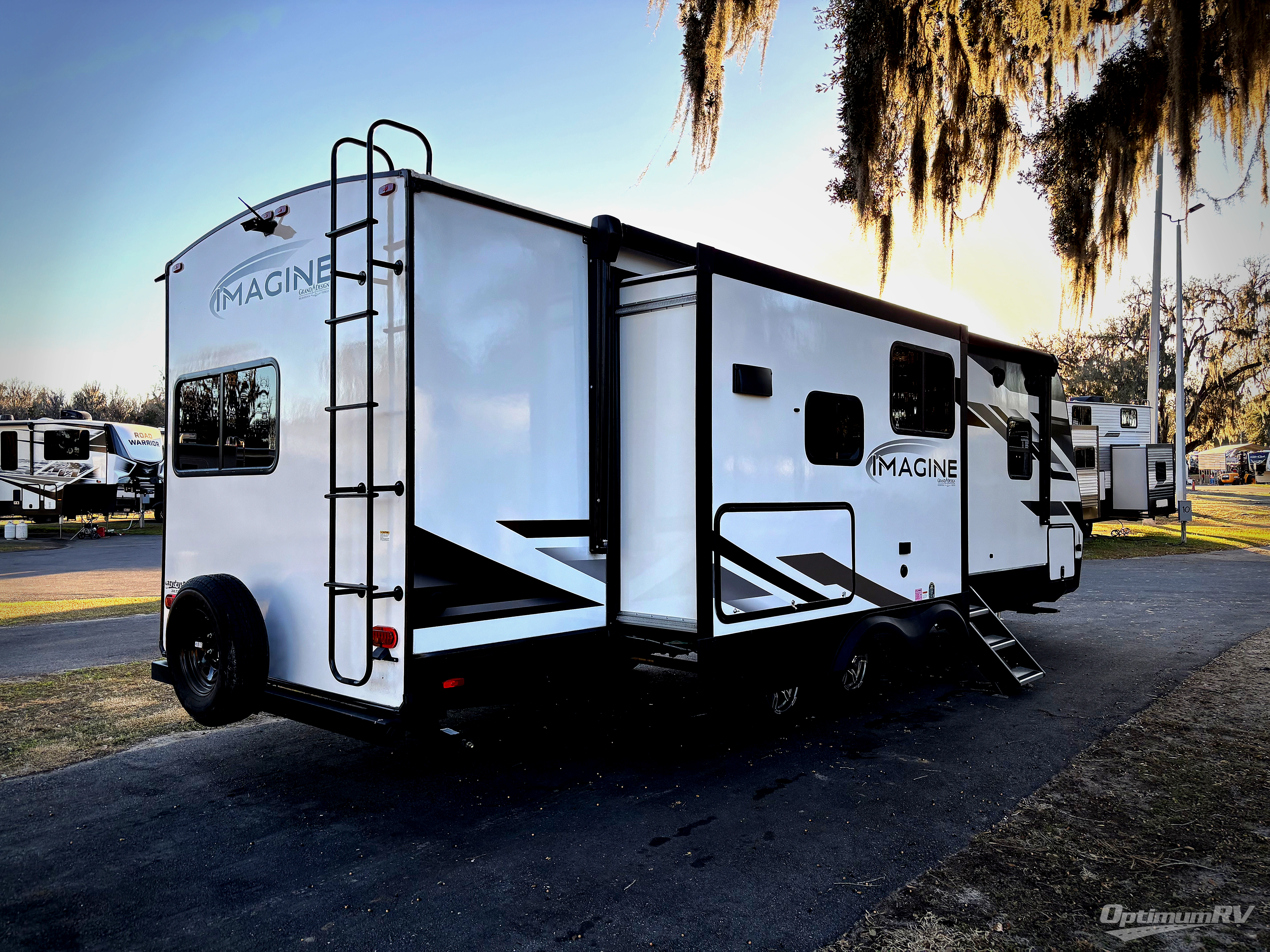 Just imagine leaving the world behind and secluding yourself away with your favorite people in your Grand Design Imagine travel trailer! The Imagine has been designed to enjoy extended season camping and includes a high-capacity furnace, a heated and enclosed underbelly with suspended tanks, a designated heat duct to the subfloor, and a high-density roof insulation with attic vent. You'll have maximum head room on the interior with 81" radius ceilings, and large panoramic windows to let in natural lighting. The exclusive drop-frame pass-through storage compartment is going to allow you to bring along lots of equipment, and the universal docking station is an all-in-one location for utilities and hook-ups. You'll also have industry-leading tank capacities so that you can fill and empty your tanks less often.