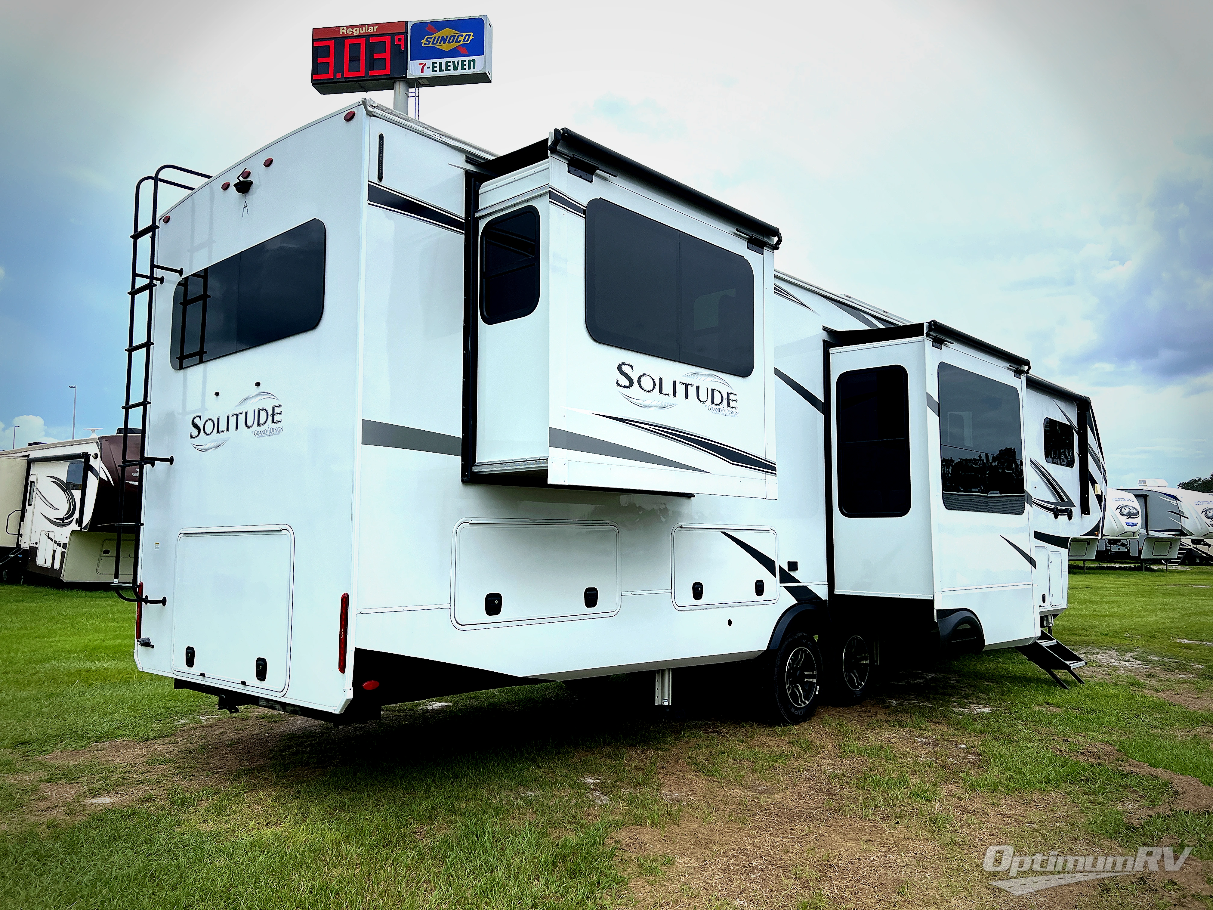 Each Solitude fifth wheel by Grand Design features a 101" wide-body construction, heavy duty 7,000 lb. axles, frameless tinted windows, and high-gloss gel coat sidewalls. You can camp year around thanks to the Weather-Tek Package that includes a 35K BTU high-capacity furnace, an all-in-one enclosed and heated utility center, and a fully enclosed underbelly with heated tanks and storage. Inside, you'll love the premium roller shades, hardwood cabinet doors, solid surface countertops and sinks, plus residential finishes throughout to make you truly feel at home. Each model also includes a MORryde CRE3000 suspension system, self adjusting brakes, and a MORryde pin box that will provide smooth towing from home to campground. Affordable luxury is possible with the Solitude fifth wheels; choose yours today!