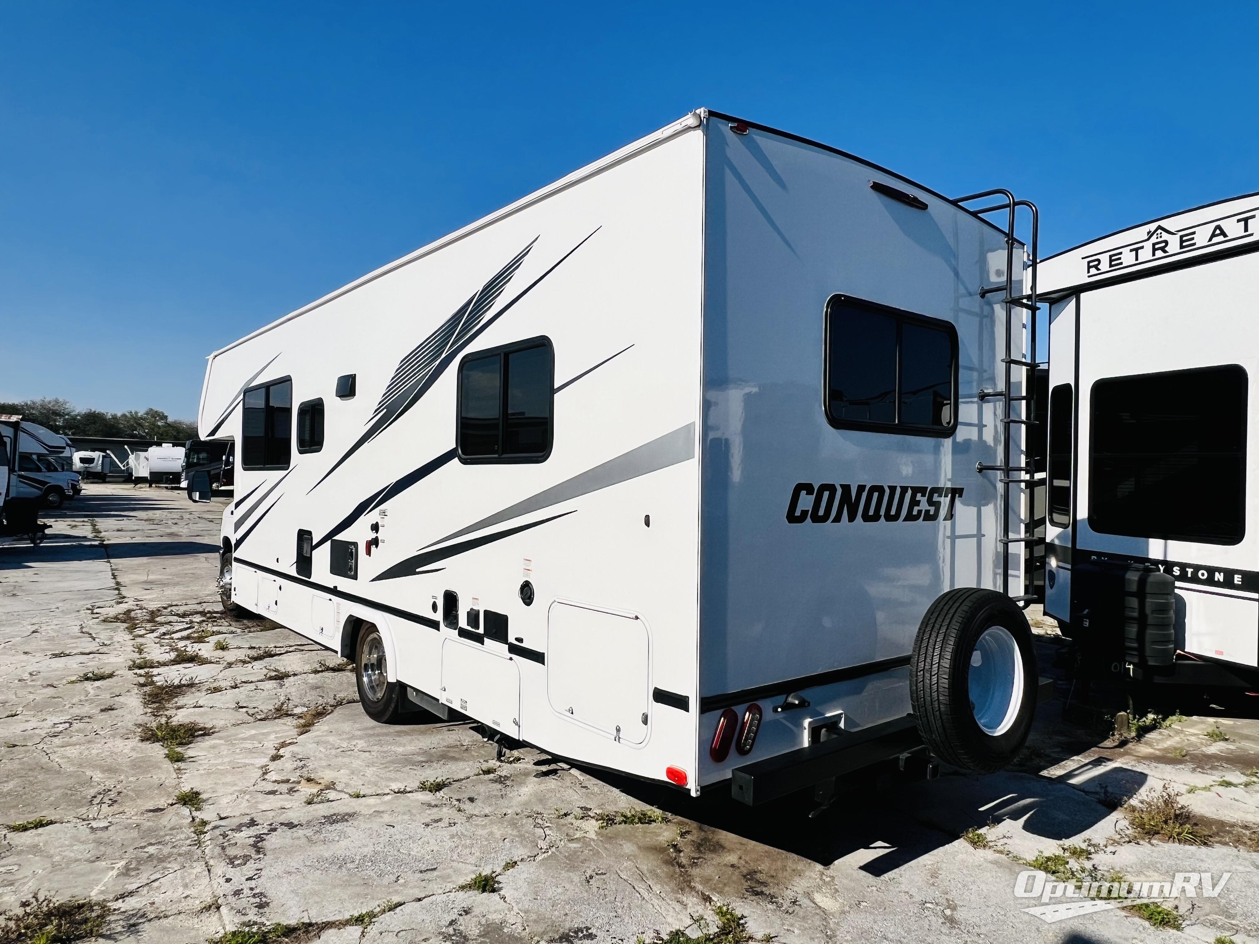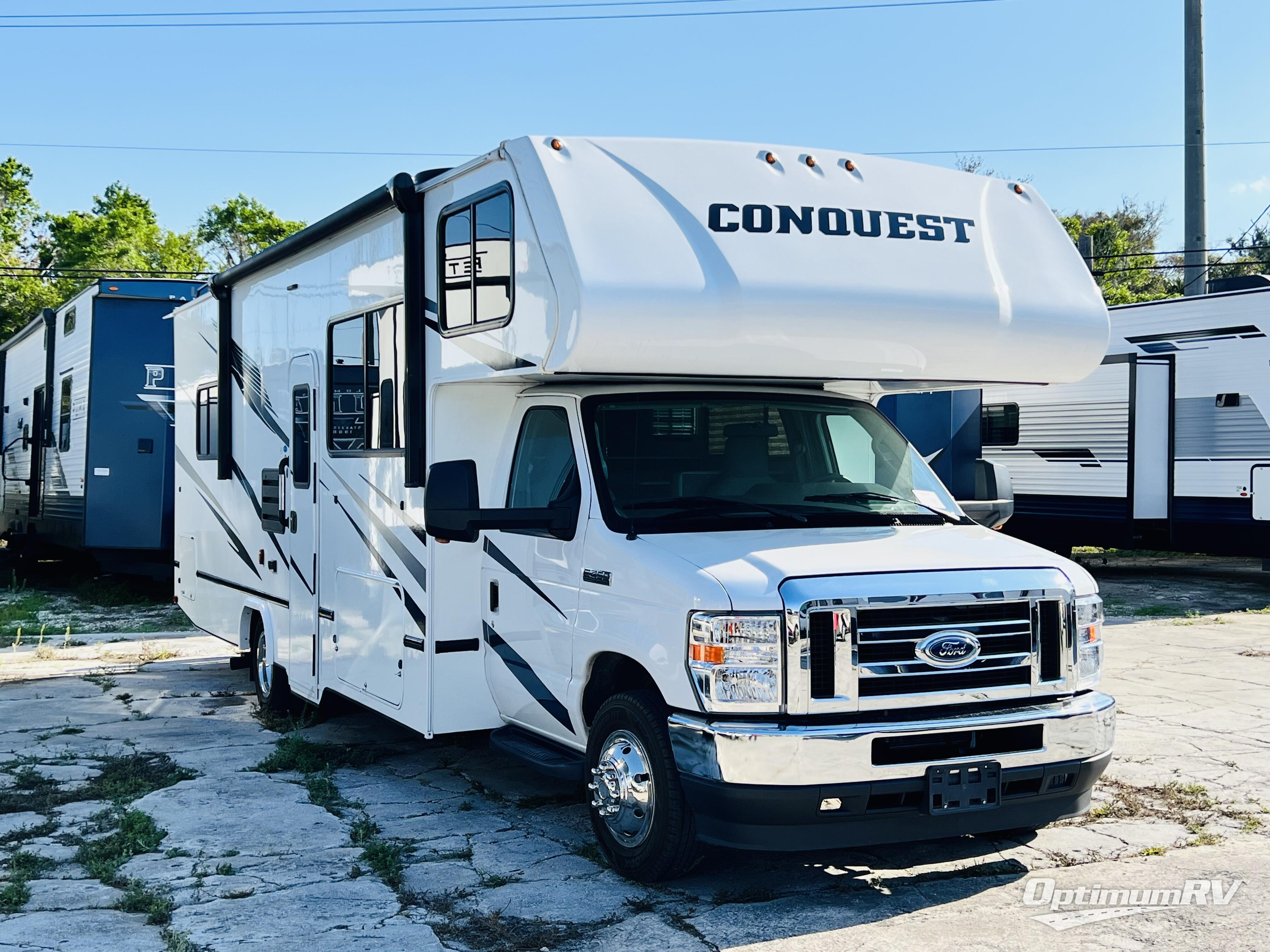 Each one of these Gulf Stream RV Conquest Class C gas motorhomes is built with a Cradle of Strength® on either the Ford E350 or E450 chassis depending on the model! Their construction also consists of a welded aluminum perimeter frame, a seamless EPDM rubber roof, and a high-gloss fiberglass exterior with Azdel synthetic substrate in the walls to prevent rotting. The included Conquest Luxury package comes with high-performance vinyl flooring throughout for an easier clean, all stainless steel appliances, and an AM/FM/CD stereo with built-in monitor and back-up camera. It also adds exterior conveniences like upgraded exterior lighting, upgraded exterior graphics, a friction-hinge entry door, and an electric awning with LED lights to relax under whether day or night!